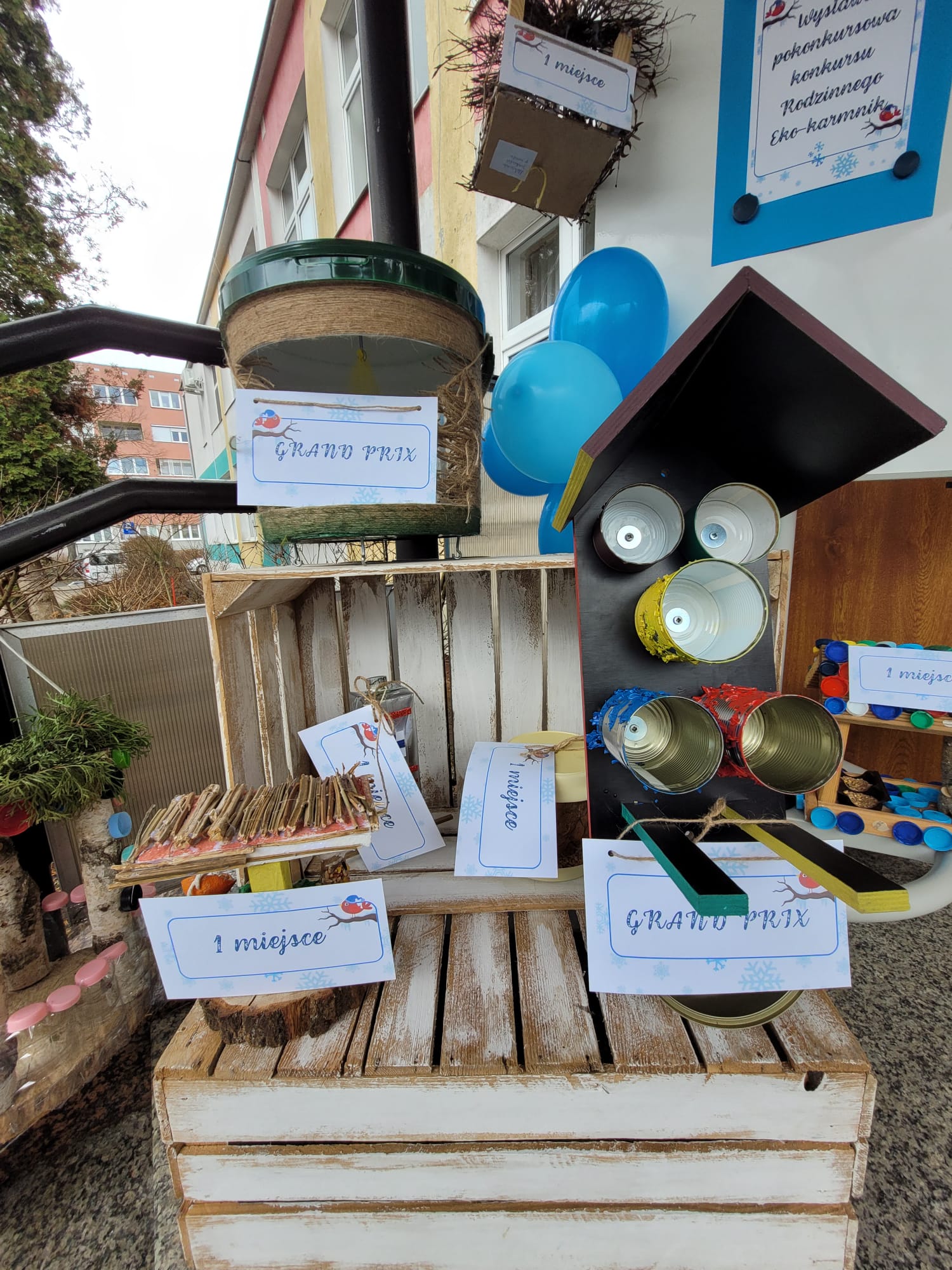 i zdolności manualnych oraz wzmocnienie więzi międzypokoleniowych. W ramach przedszkolnego konkursu dzieci wraz z rodzicami wykonały karmniki z materiałów ekologicznych i wtórnych (np. plastikowe butelki, drewniane łyżki, kartony po mleku, naturalne drewno, gałązki, pnie, itd.). Pomysłowość i oryginalność karmników przeszła najśmielsze oczekiwania jury! Na osiedlu krążą pewne plotki – wszystkie ptaki