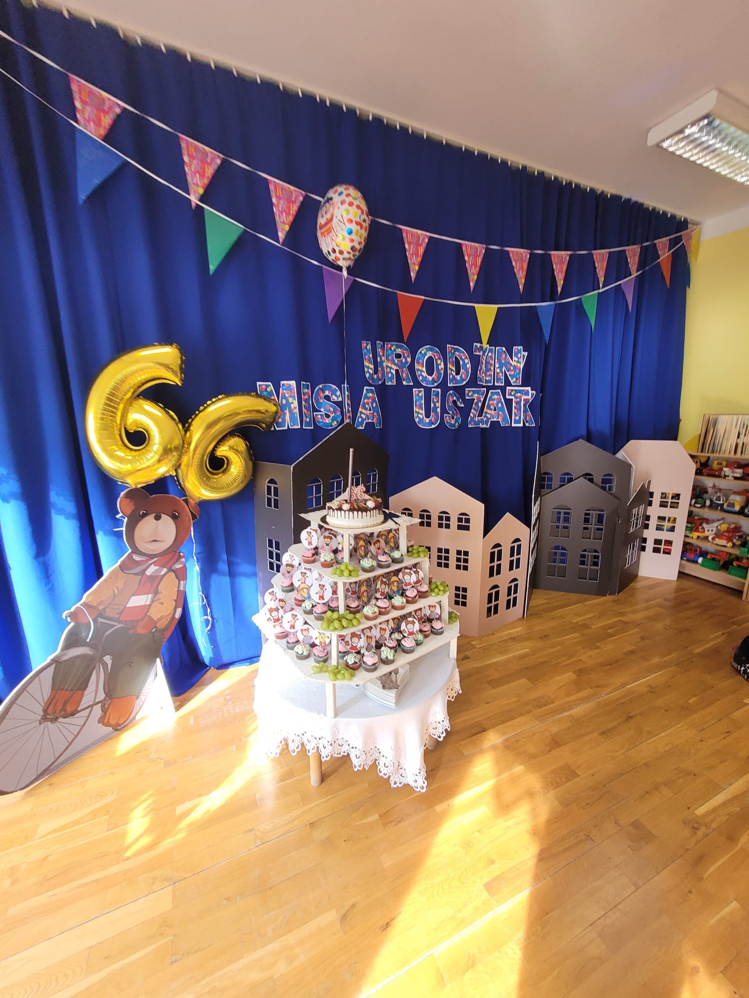 Na zakończenie złożyliśmy bajkowemu misiowi życzenia, zaśpiewaliśmy „Sto Lat” oraz spróbowaliśmy pysznych babeczek .