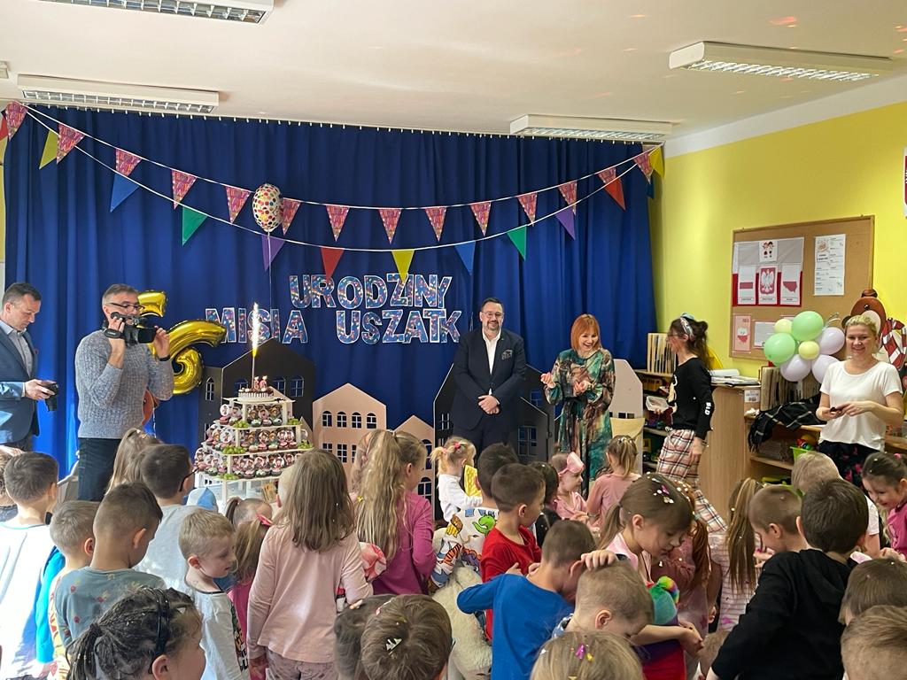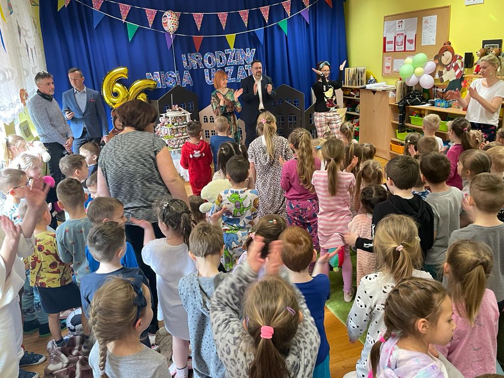 W dniu 06 marca 2023 świętowaliśmy kolejne Urodziny Misia Uszatka - patrona naszego przedszkola. Zabawę urodzinową rozpoczęliśmy od powitania zaproszonych gości, a wśród nich był Burmistrz Polkowic Pan Łukasz Puźniecki, były absolwent naszego przedszkola.