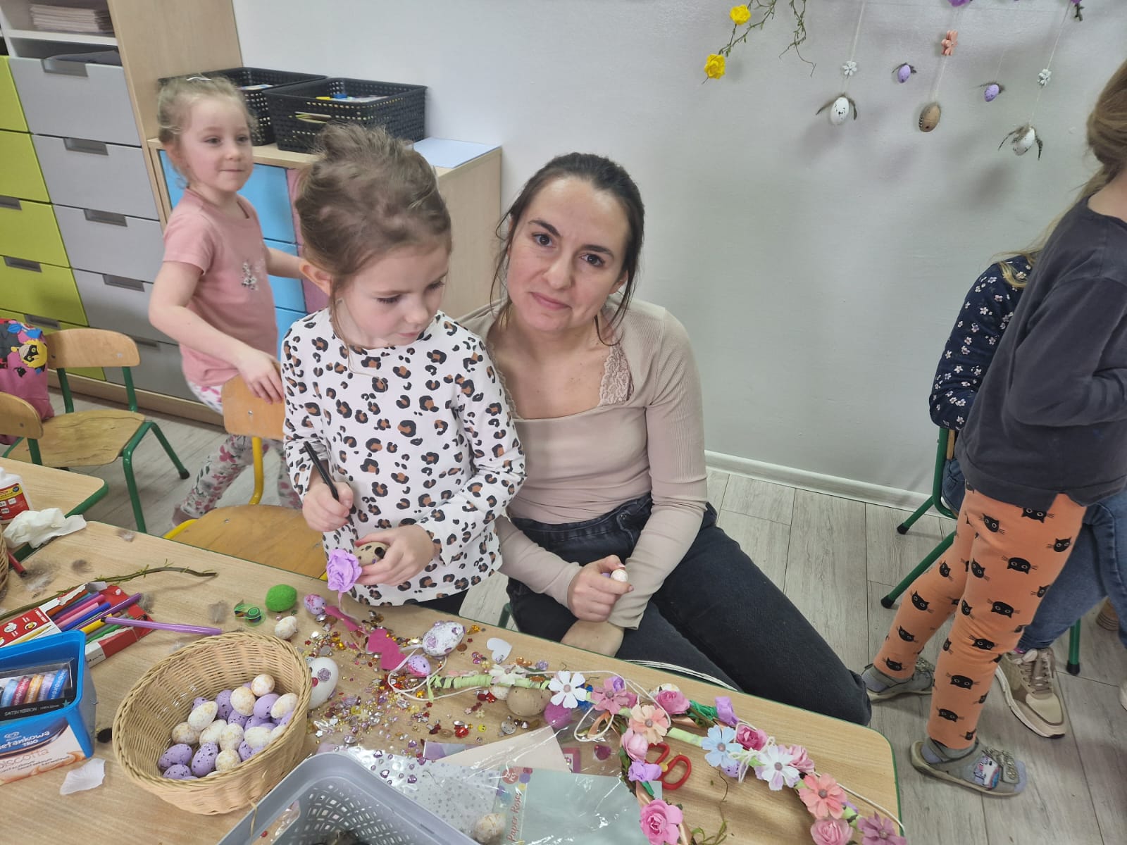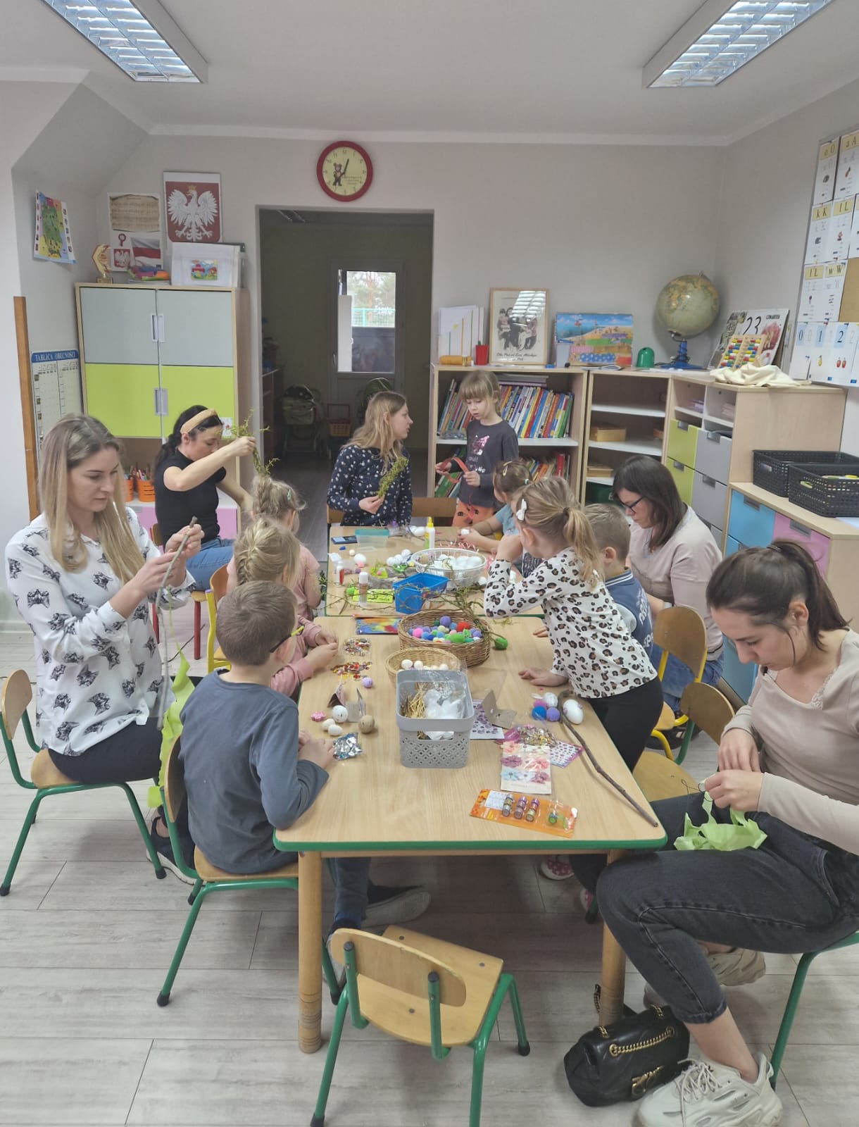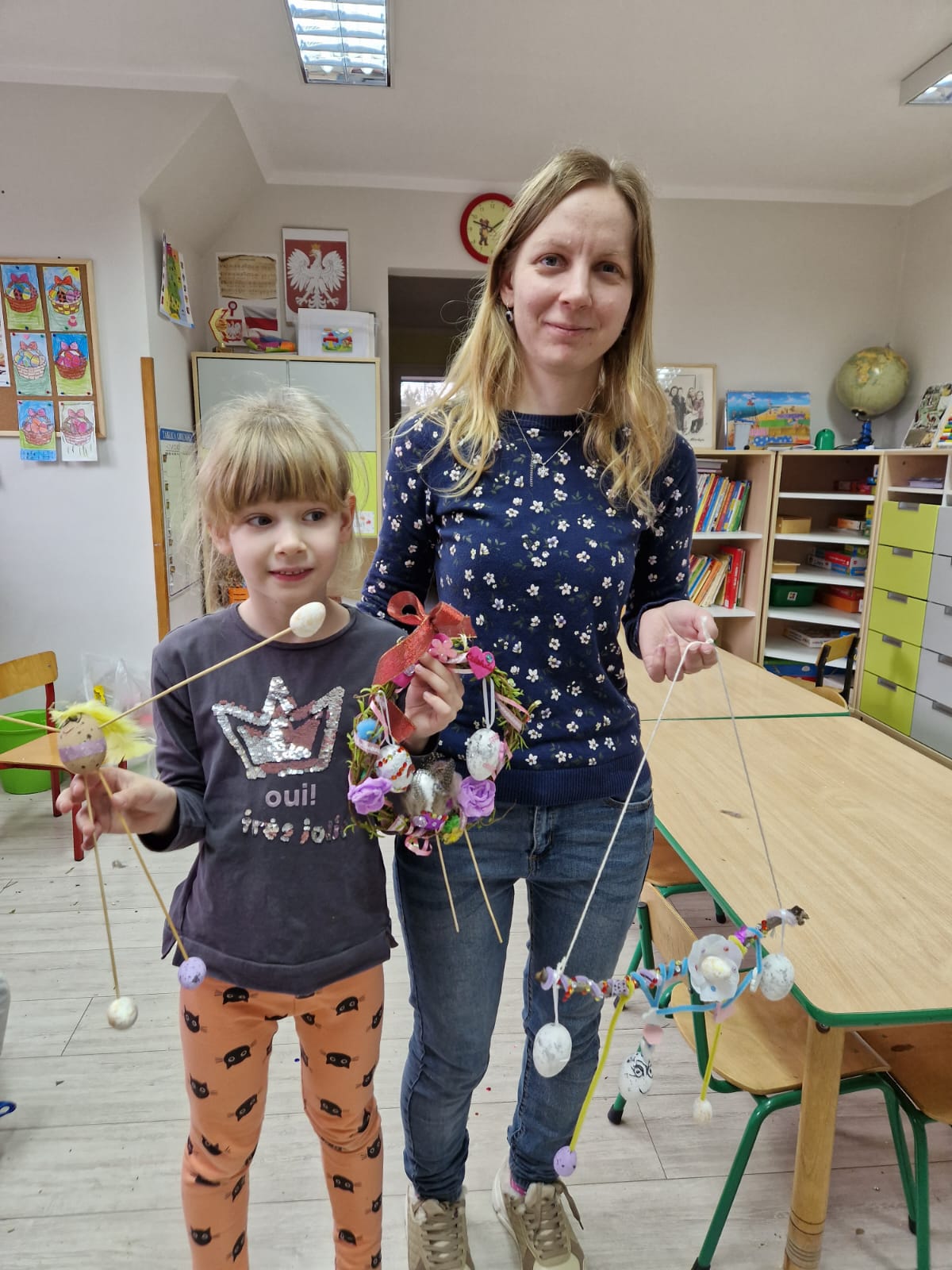 31. 03. 2023r. w oddziale przedszkolnym w Sobinie odbyły się warsztaty rodzinne. Z okazji zbliżających się Świąt Wielkanocnych powstały wiszące stroiki z jajkami, kolorowe pisanki na patyczkach i wiosenne ozdoby. Dzieci były zachwycone wspólnymi zajęciami z rodzicami.