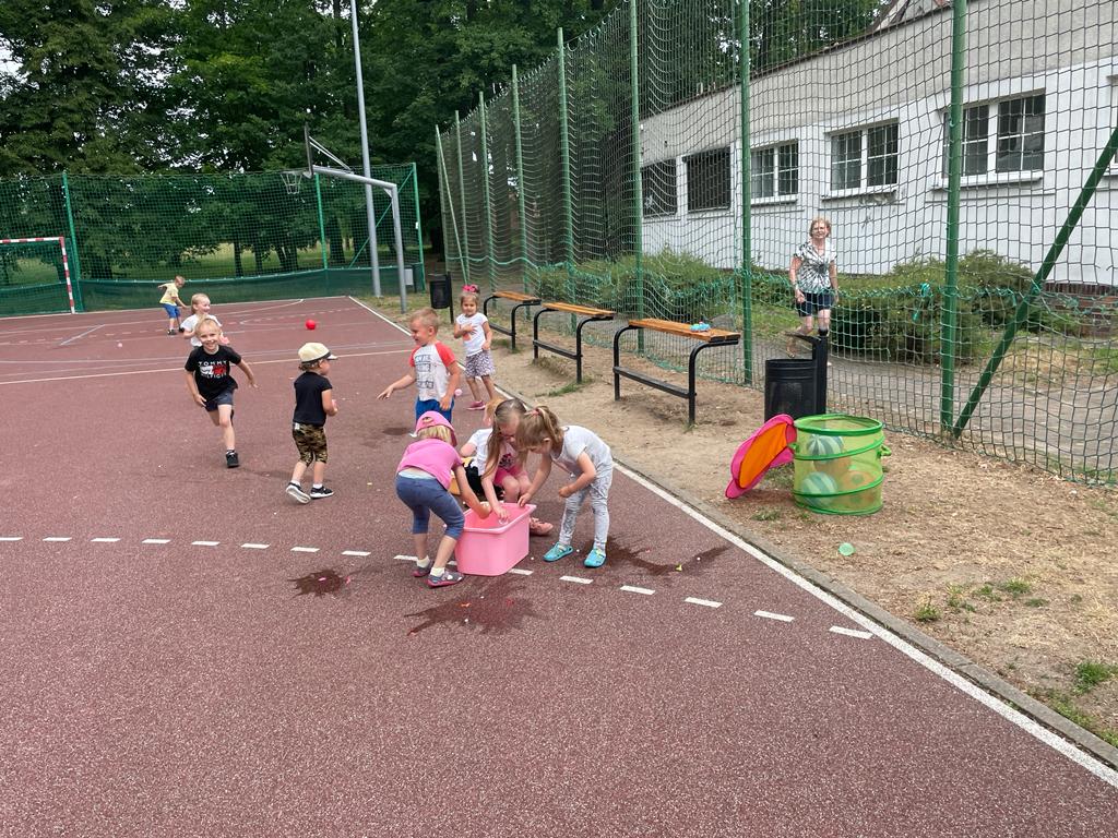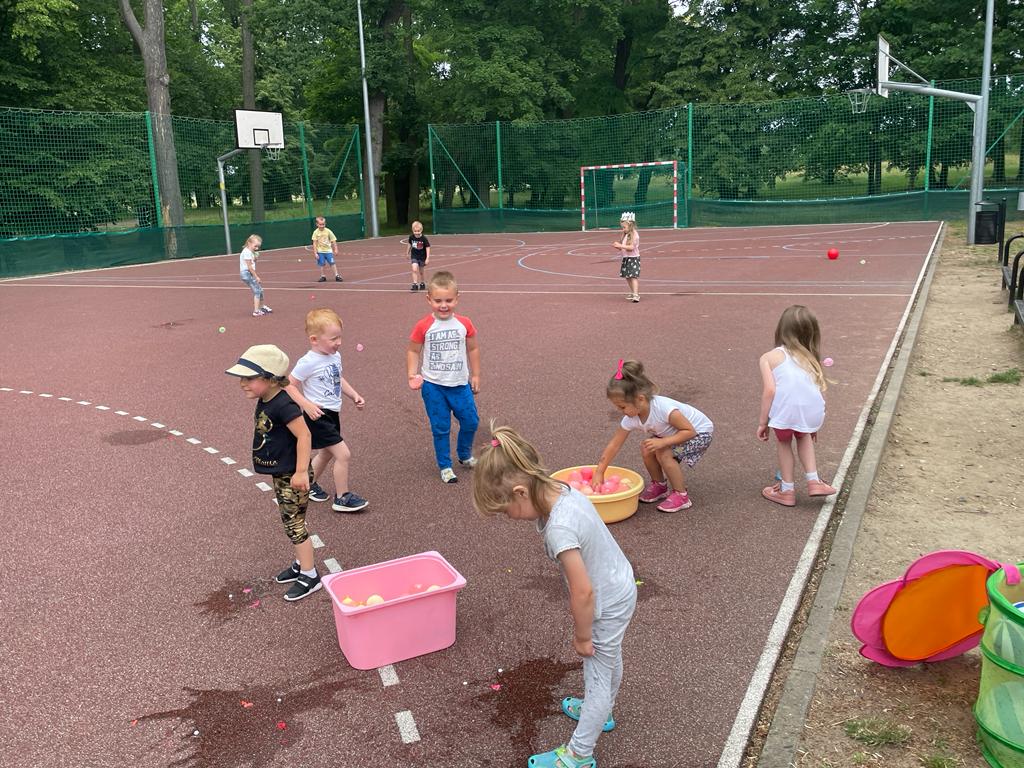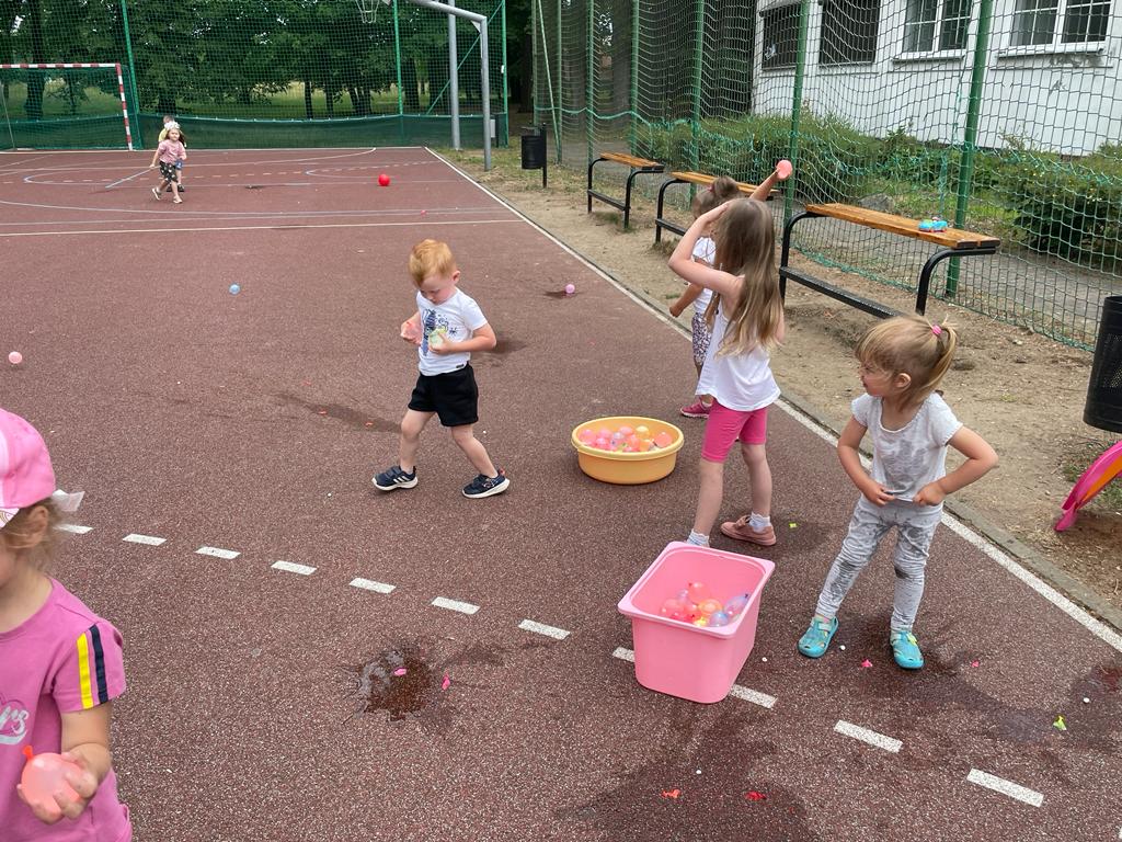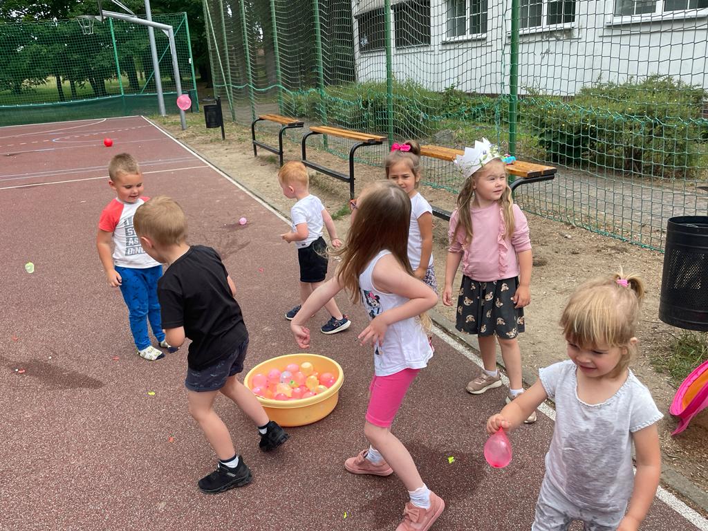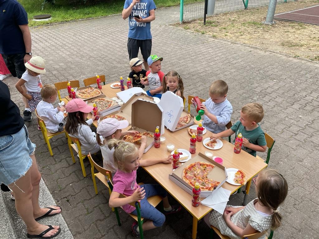 19 czerwca 2023r dzieci z naszego oddziału wraz z rodzicami, rodzeństwem oraz dziadkami bawiły się na boisku przy przedszkolu. Uroczystość rozpoczęła wychowawczyni, która wręczyła odchodzącym 5 – latkom pamiątkowe dyplomy i książki, z kolei wszystkim przedszkolakom na pamiątkę mijającego roku - tablo oraz książkę kucharską, która była podsumowaniem programu kulinarnego „Wiewiórki gotują”.