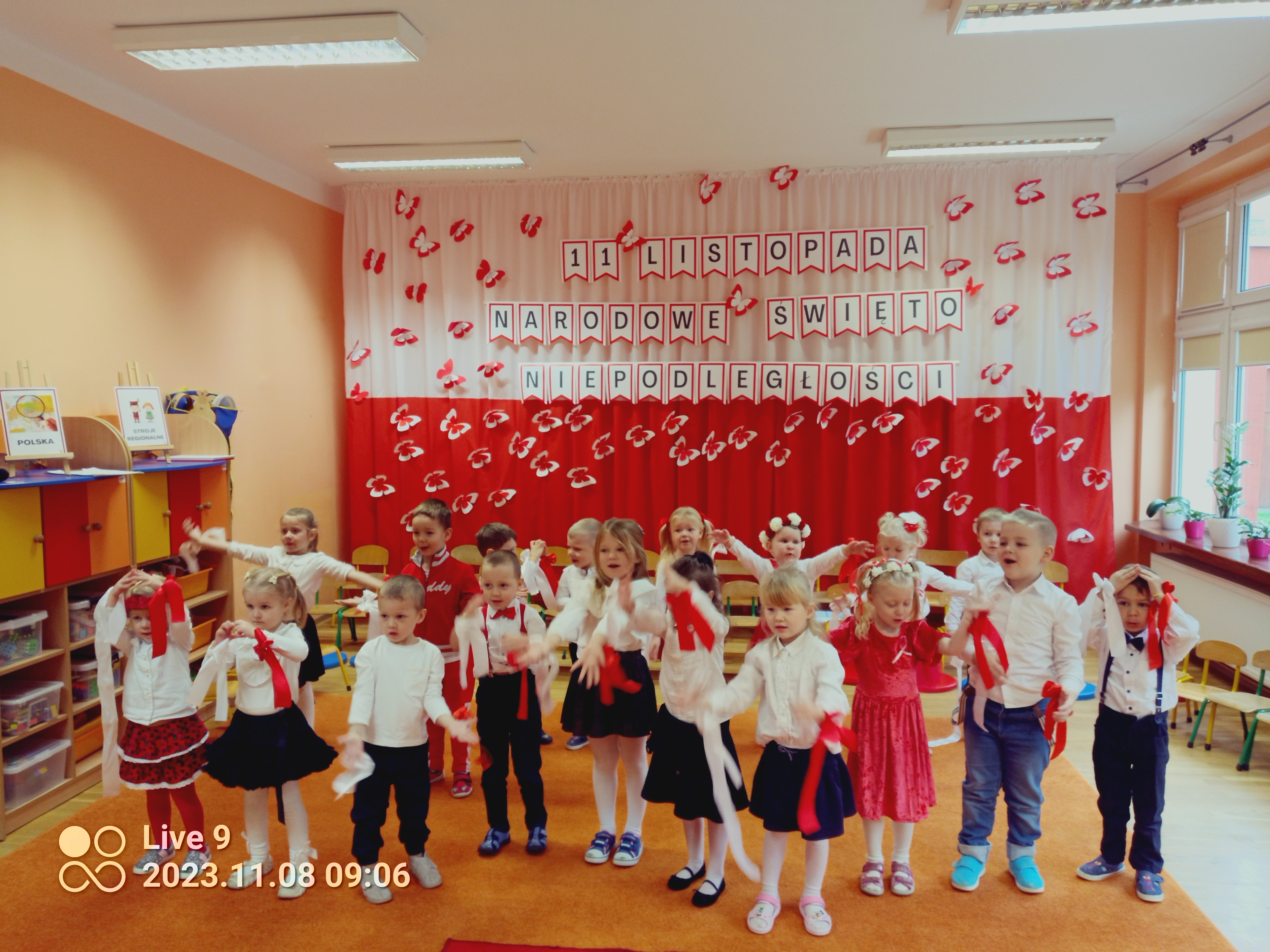 Przedszkolaki od paru tygodni przygotowywały się do tego ważnego wydarzenia pod opieką wychowawców. Podczas występu dzieci recytowały wiersze patriotyczne, śpiewały piosenki oraz tańczyły. Wszyscy nasi wychowankowie, aby oddać powagę sytuacji, tego ważnego dnia ubrali się odświętnie i uroczyście. Na ich piersi widniały kotyliony w barwach narodowych a w ręce powiewała flaga Polski.