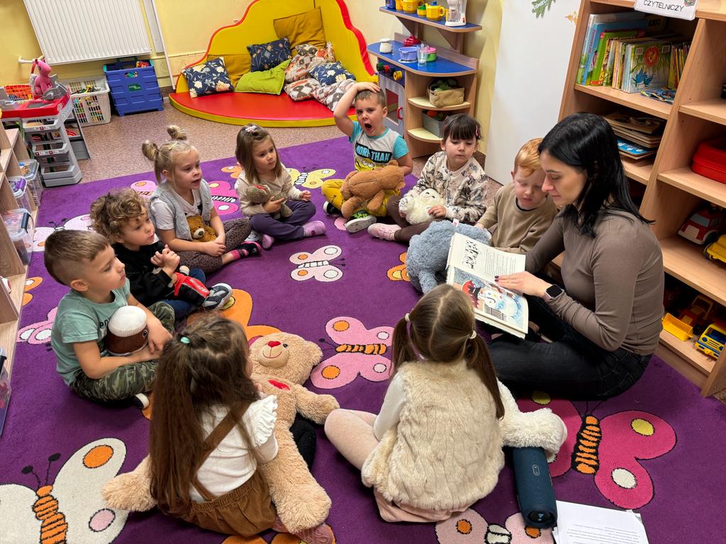 W dniu 24.11.2023r. dzieci z Przedszkola Miejskiego im. Misia Uszatka, uczestniczyły w obchodach Światowego Dnia Pluszowego Misia. Mimo coraz nowocześniejszych i coraz atrakcyjniejszych zabawek, moda na misie nie przemija. Miś jest ulubioną maskotką dzieci. Tego dnia każde dziecko przyszło do przedszkola ze swoim małym lub dużym przyjacielem – Misiem. Duże, małe, kolorowe, puchate i mięciutkie. Pluszowe misie opanowały Przedszkole. „Przybyły” ze swoimi małymi właścicielami, aby bawić się, świętować i uczyć. Nauczyły się „misiowego przywitania”, ozdabiały misia kolorowymi kokardami. Użyły swych „magicznych mocy” aby wyleczyć chorego misia.
