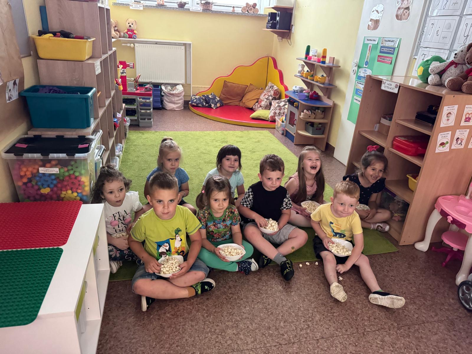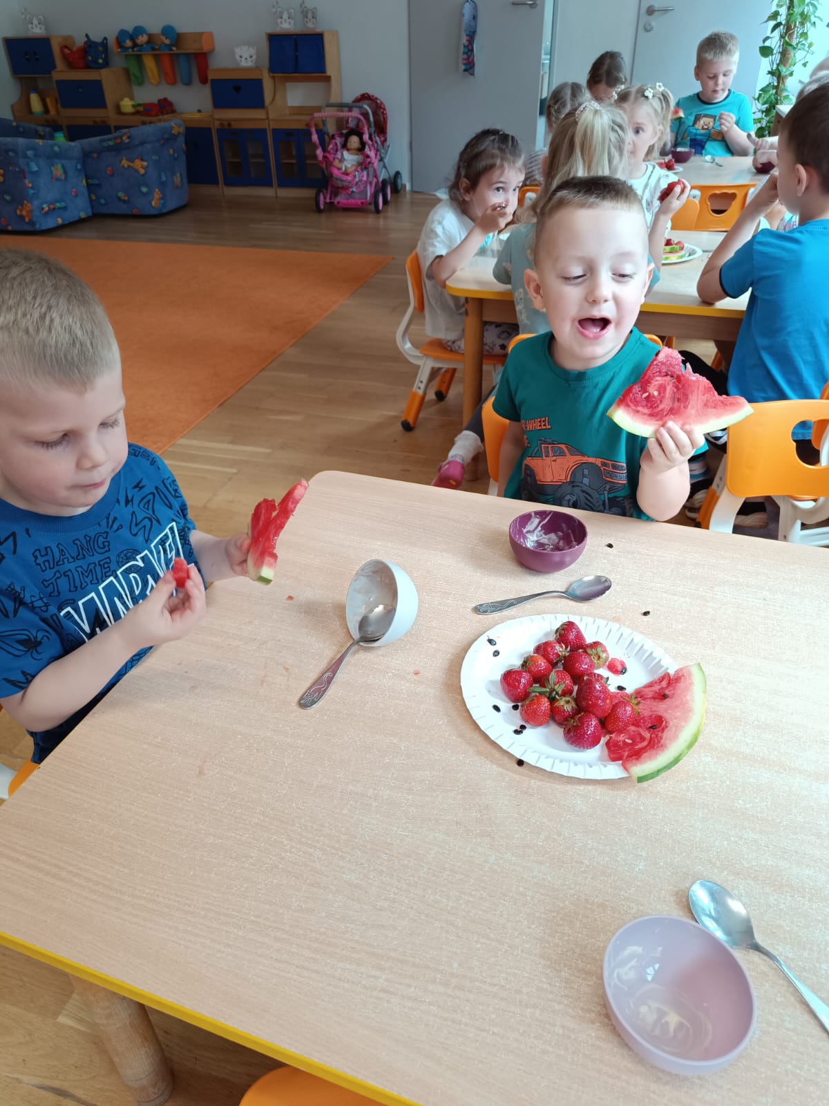 Tydzień Dziecka w naszym przedszkolu obfitował w wiele atrakcji. Najpierw były smakowite lody, a Panie specjalnymi kredkami ozdabiały dzieciom twarze w kolorowe wzory. Następny dzień to wyjazd wszystkich grup do głogowskiego OK Parku. Dzieci świetnie się bawiły w basenie z kulkami, na karuzeli, na dmuchańcu, itp. Wycieczka ta sprawiła wiele frajdy. Hasło kolejnego dnia to: „Nauczyciele dzieciom” , czyli przedszkolaki obejrzały inscenizację wiersza J. Brzechwy „Leń” w wykonaniu nauczycielek. Następnie odbyły się wspólne zabawy integracyjne, muzyczno - ruchowe i mini dyskoteka. W ostatnim dniu odchodów dziecięcego święta było przedszkolne kino. Dzieci obejrzały film zajadając świeżutki popcorn. Było super!