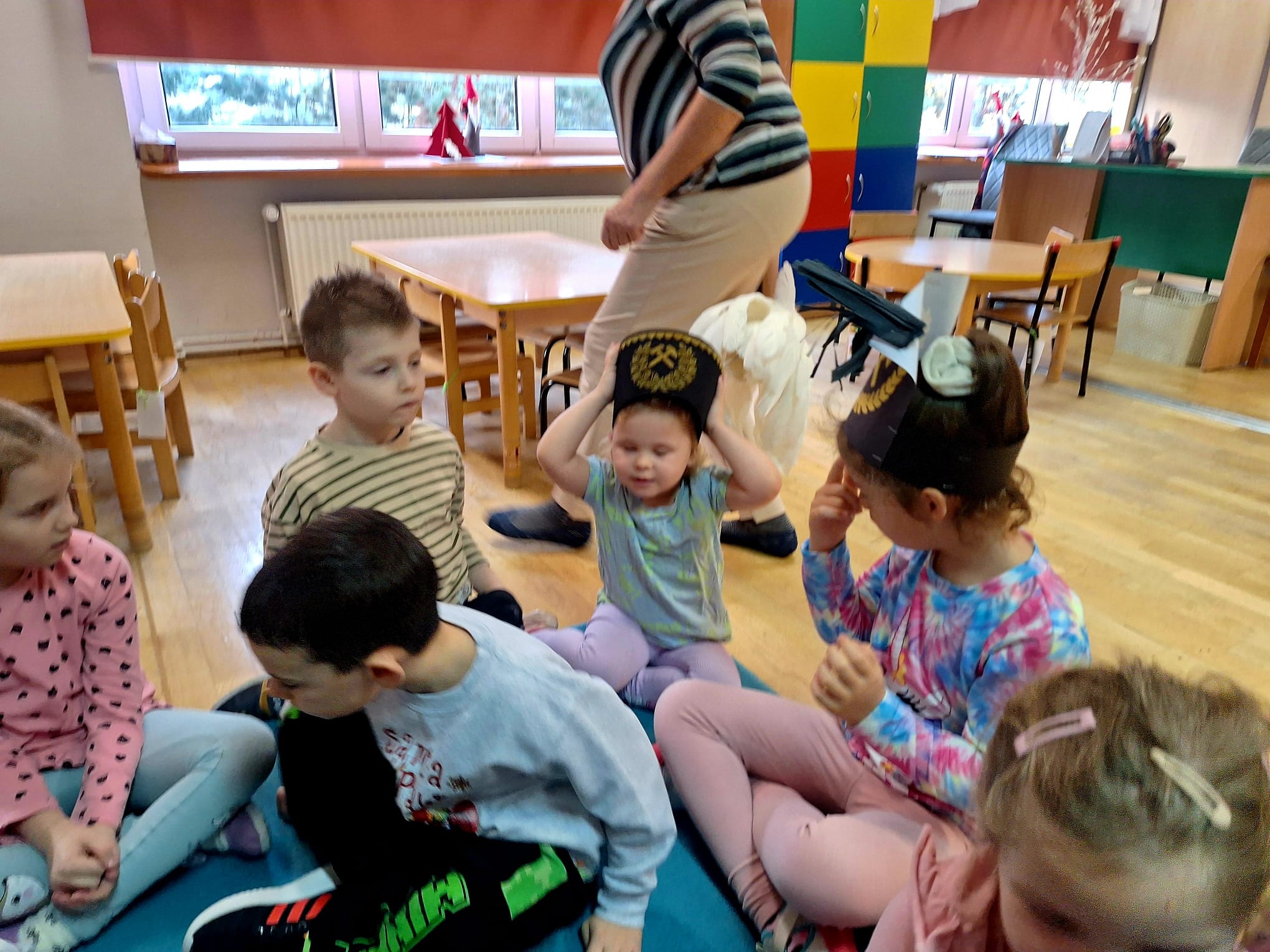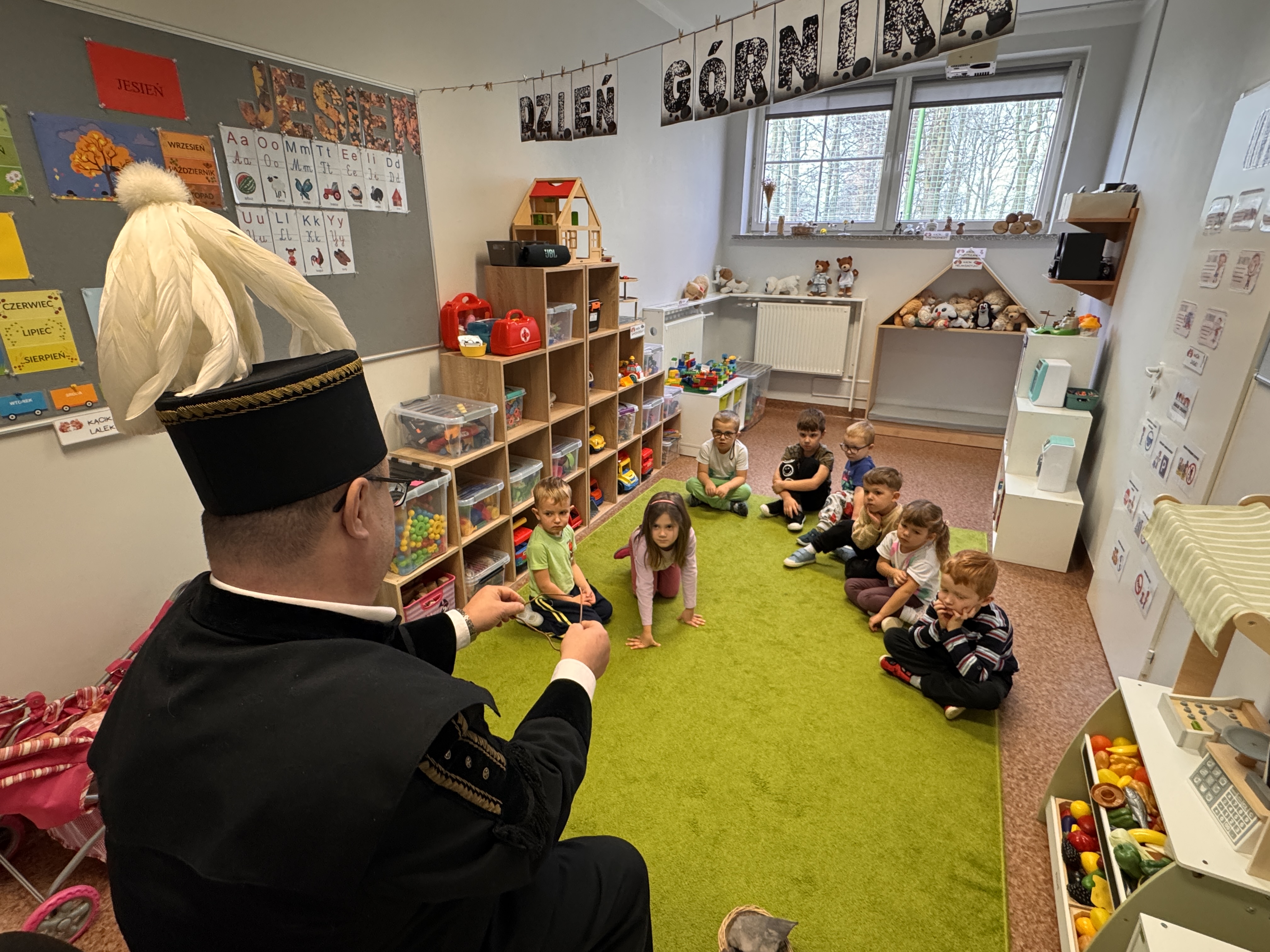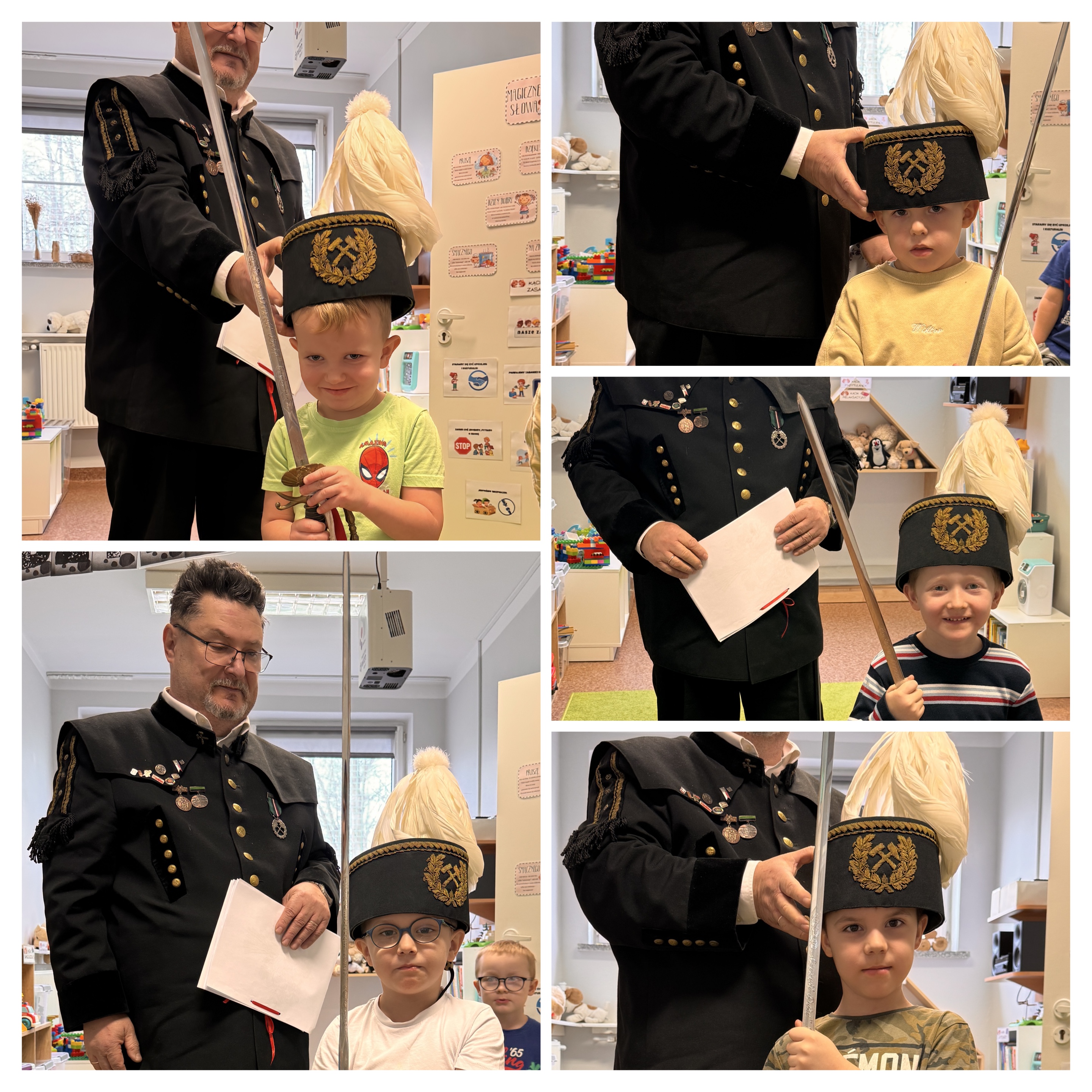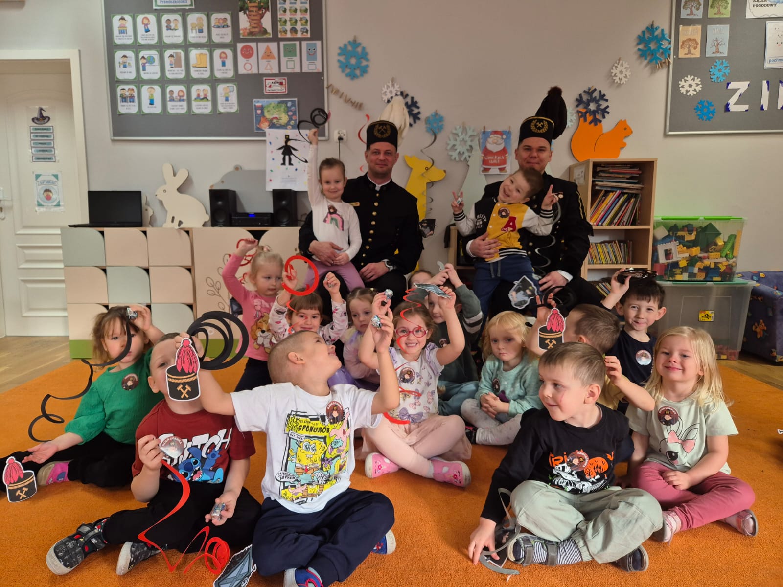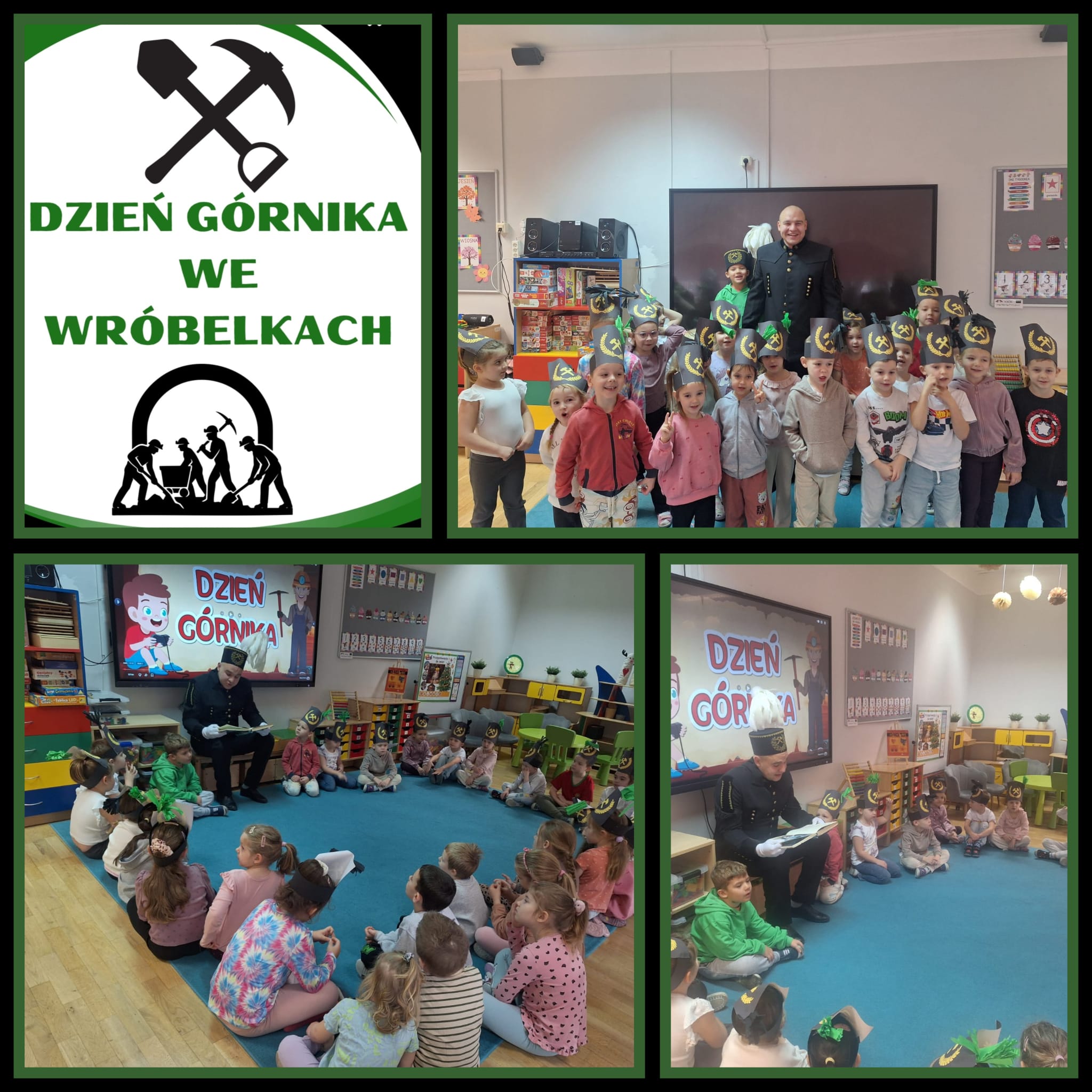 4 grudnia obchodziliśmy Dzień Górnika. Z tej okazji gościliśmy w naszym przedszkolu górników. Podczas spotkania dzieci miały okazję wzbogacić swoje wiadomości na temat ciężkiej, czasami niebezpiecznej pracy górnika. Dowiedziały się, w jaki sposób wydobywana jest w naszych kopalniach ruda miedzi oraz inne minerały . Górnicy przybyli do nas w stroju galowym, dlatego dzieci miały okazję przyjrzeć się z bliska mundurowi, czapce górniczej, odznaczeniom, które górnicy otrzymują za długoletnią, ciężką pracę w kopalni. Panowie górnicy wyjaśnili dzieciom, jakie znaczenie mają kolory pióropuszy na czapce i kto je nosi, miały również możliwość założenia czapki górniczej - czako. Przedszkolaki chętnie i z zaciekawieniem wysłuchały opowieści. W trakcie wizyty zadawały wiele pytań, na które goście chętnie odpowiadali.
