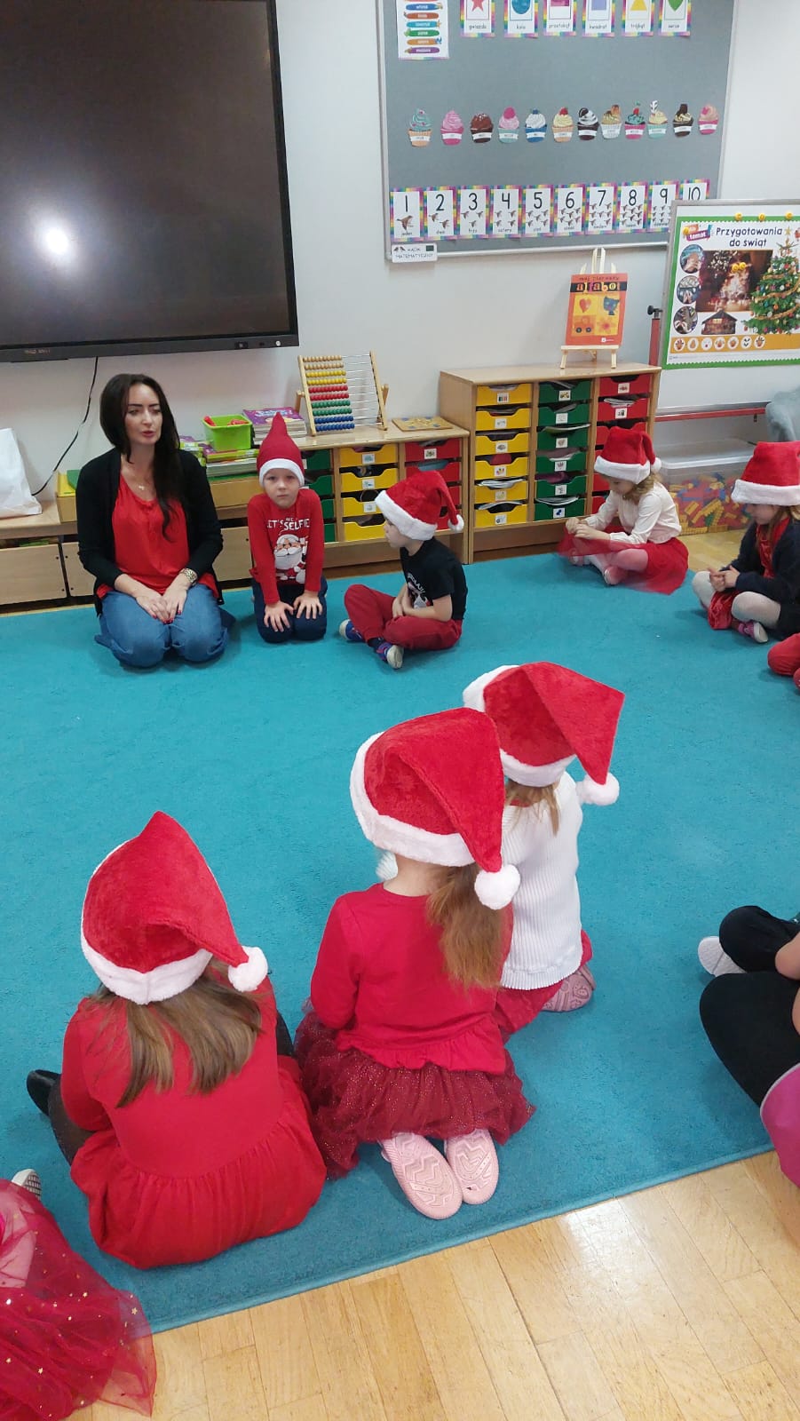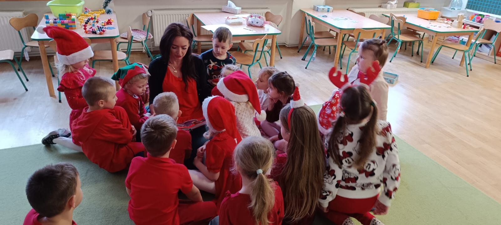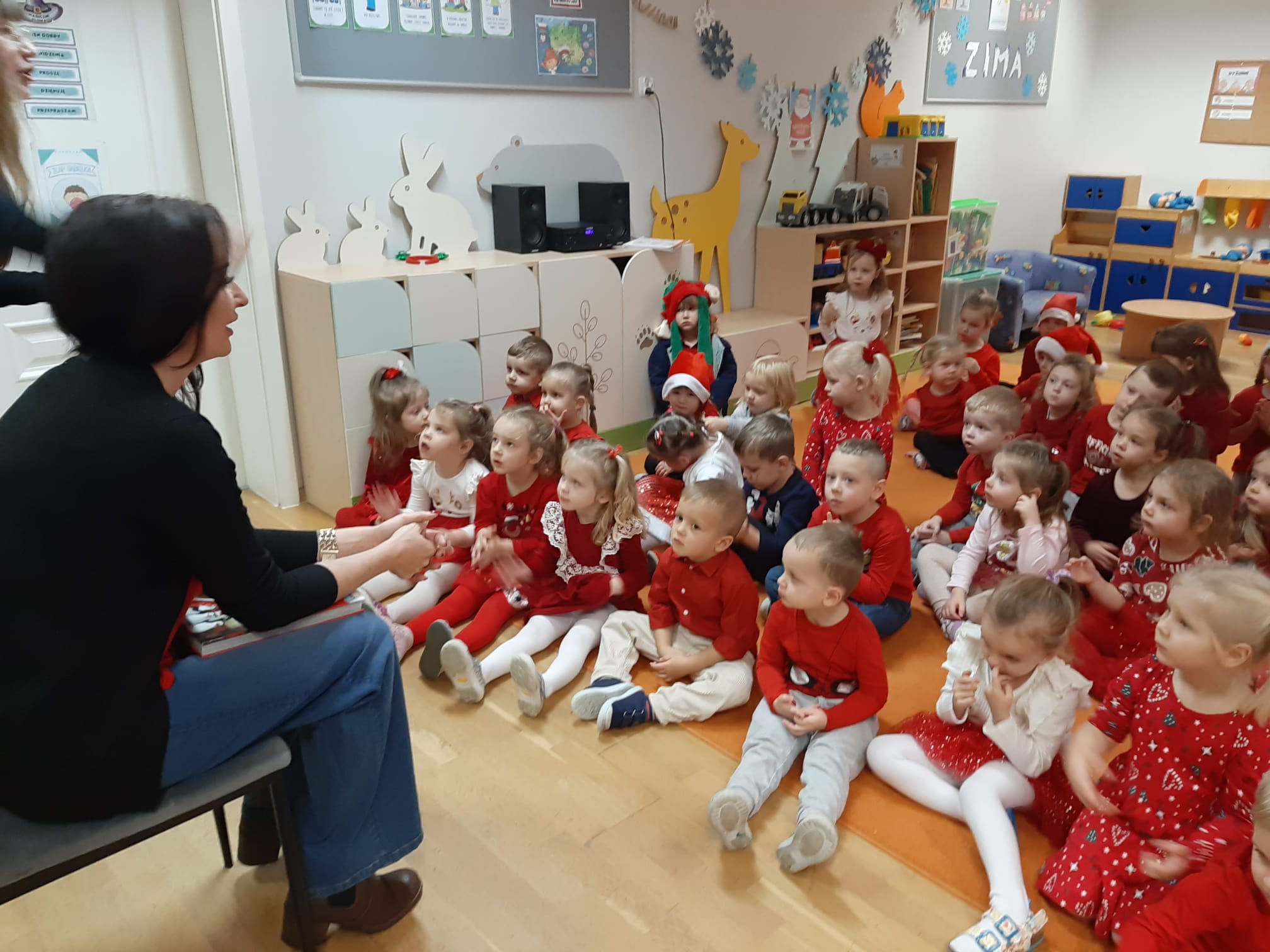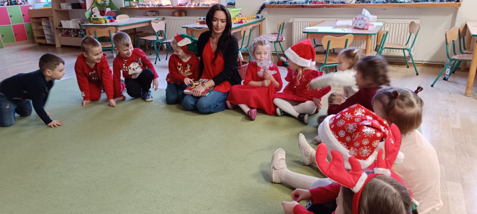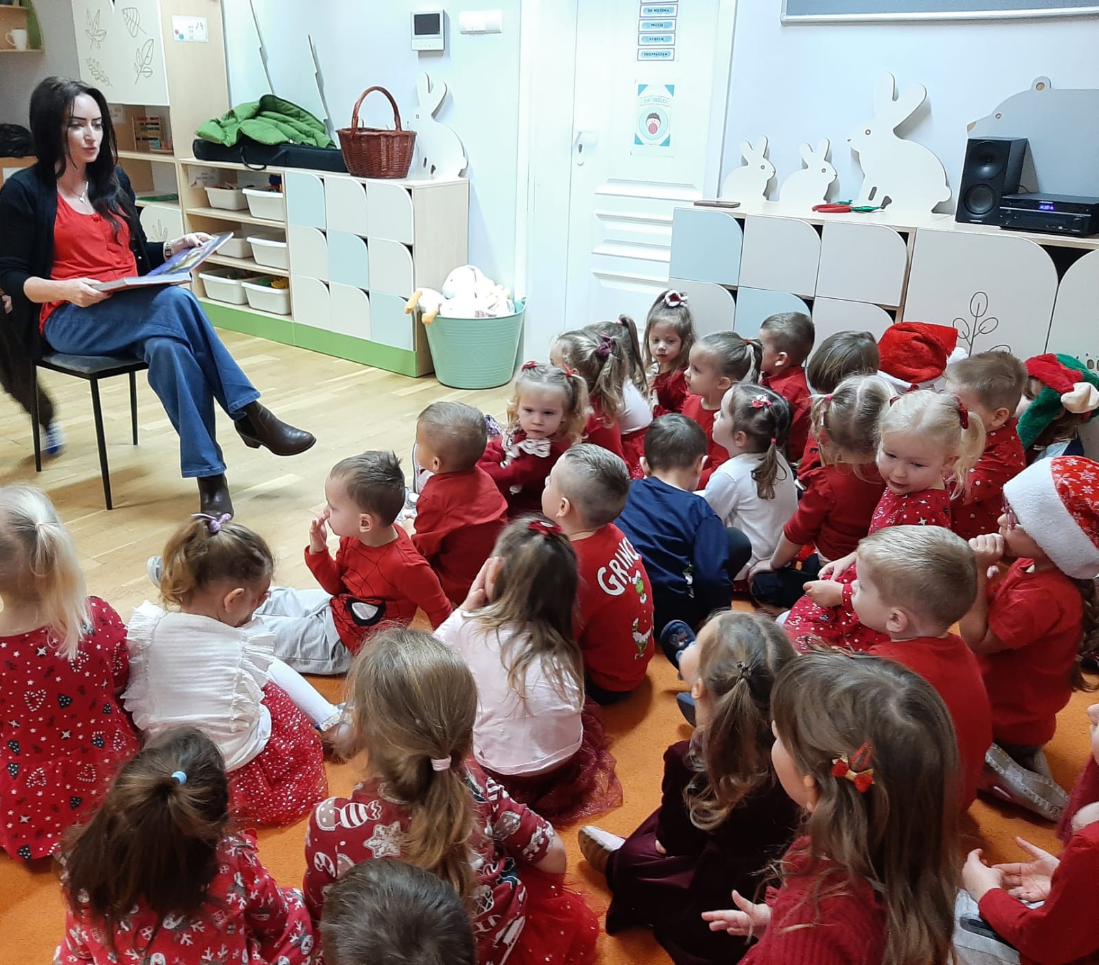 W trakcie wizyty pani przeczytała dzieciom świąteczną bajkę, która wprowadziła atmosferę życzliwości i dzielenia się dobrem. Przedszkolaki chętnie słuchały i aktywnie uczestniczyły w rozmowie na temat pomagania innym.