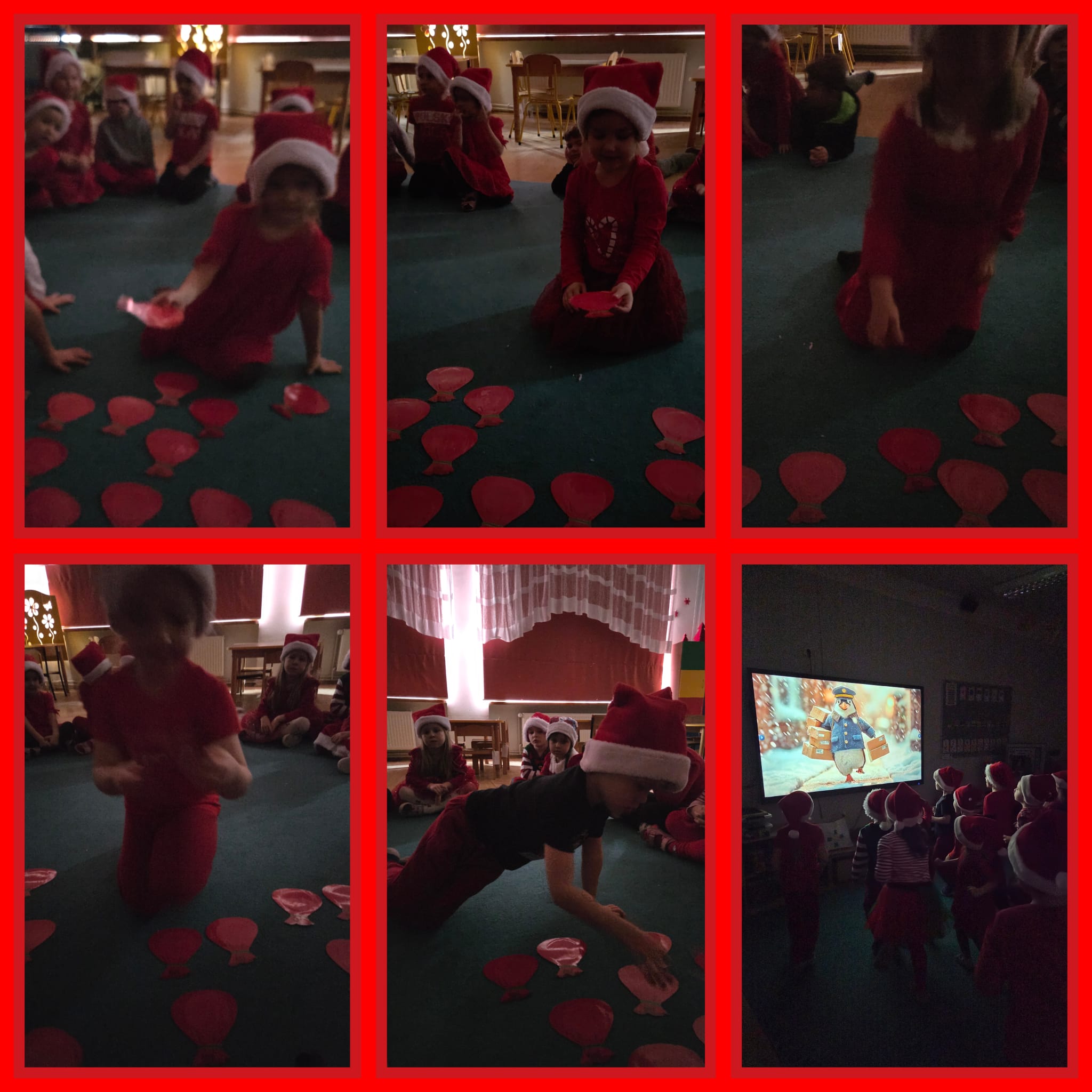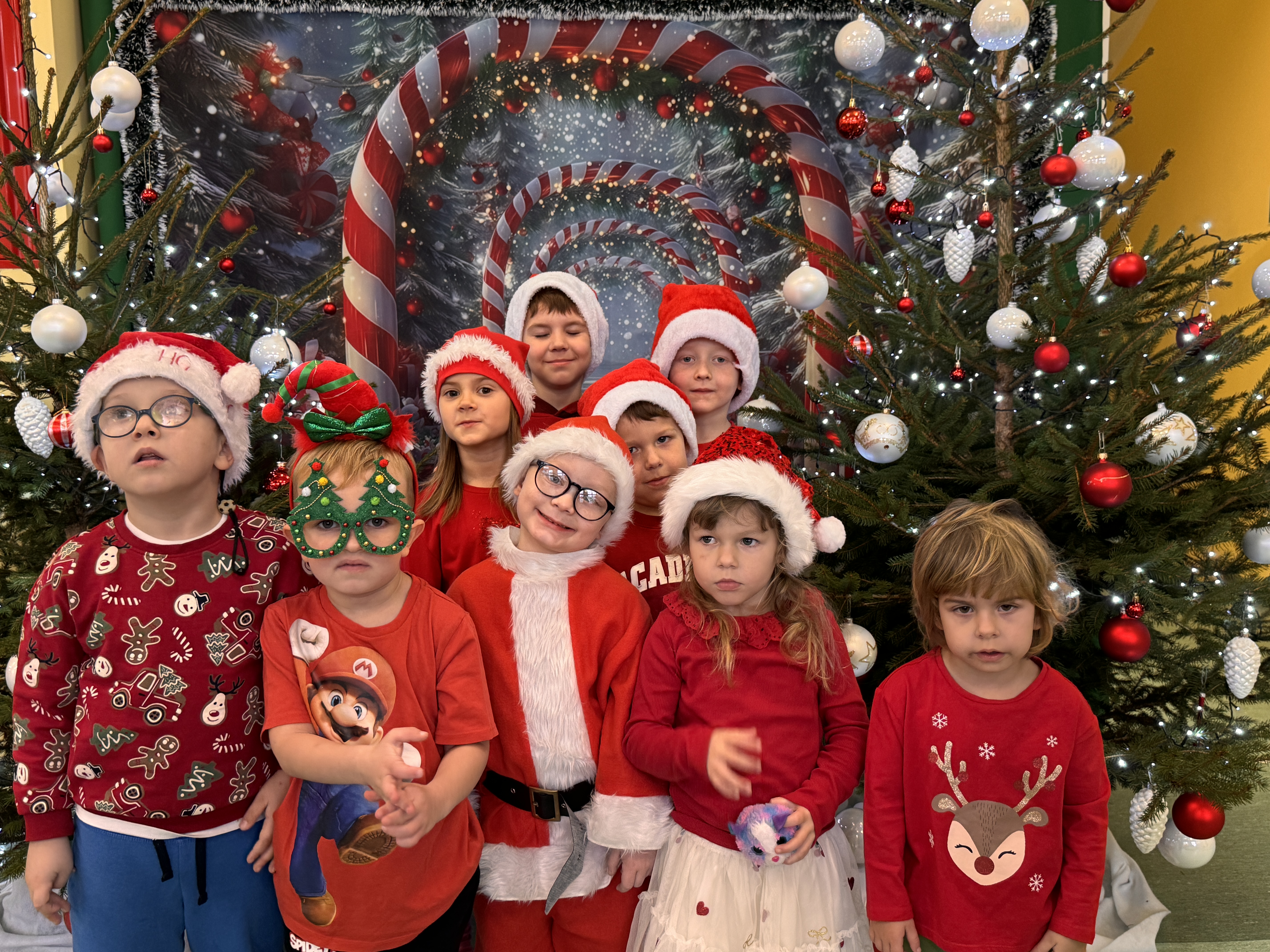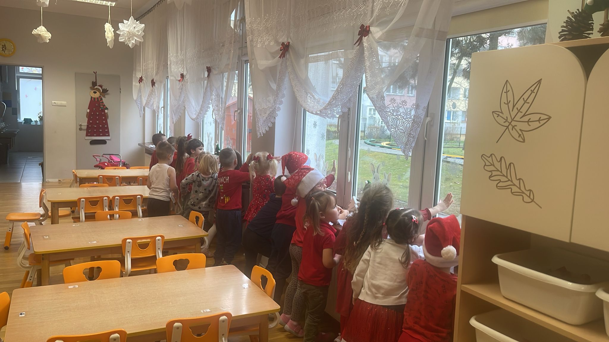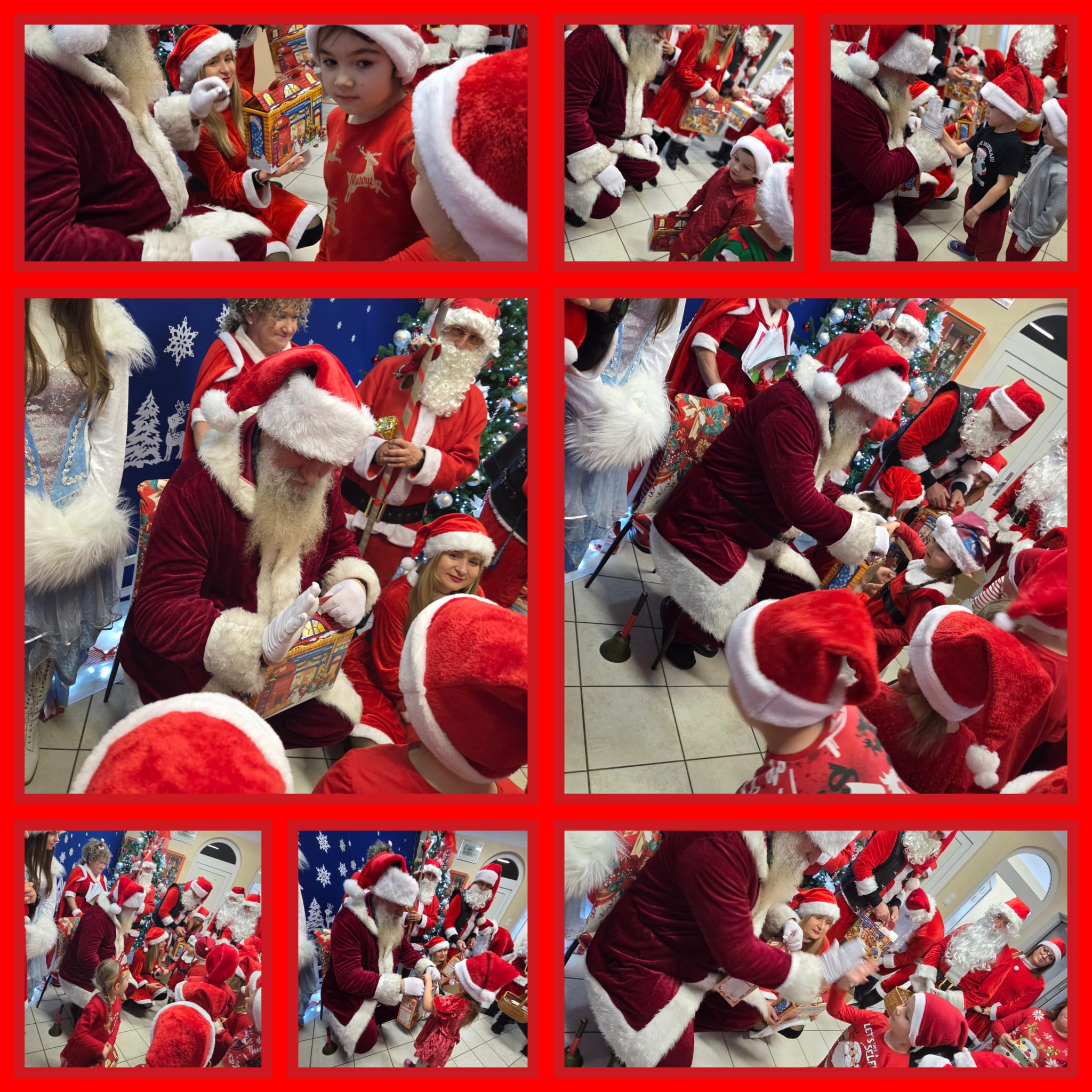 Od rana wszyscy z niecierpliwością spoglądaliśmy za okno i wypatrywaliśmy pojazdów Mikołaja. Nagle! Trąbienie klaksonów i pojawił się świąteczny zaprzęg Mikołaja. Z uśmiechem przywitaliśmy Mikołaja, jego pomocników, a nawet Grincha. Mikołaj zapytał, czy byliśmy grzeczni. Oczywiście, że tak! Każda z grup zaśpiewała piosenkę, a Mikołaj wręczył nam piękne prezenty.