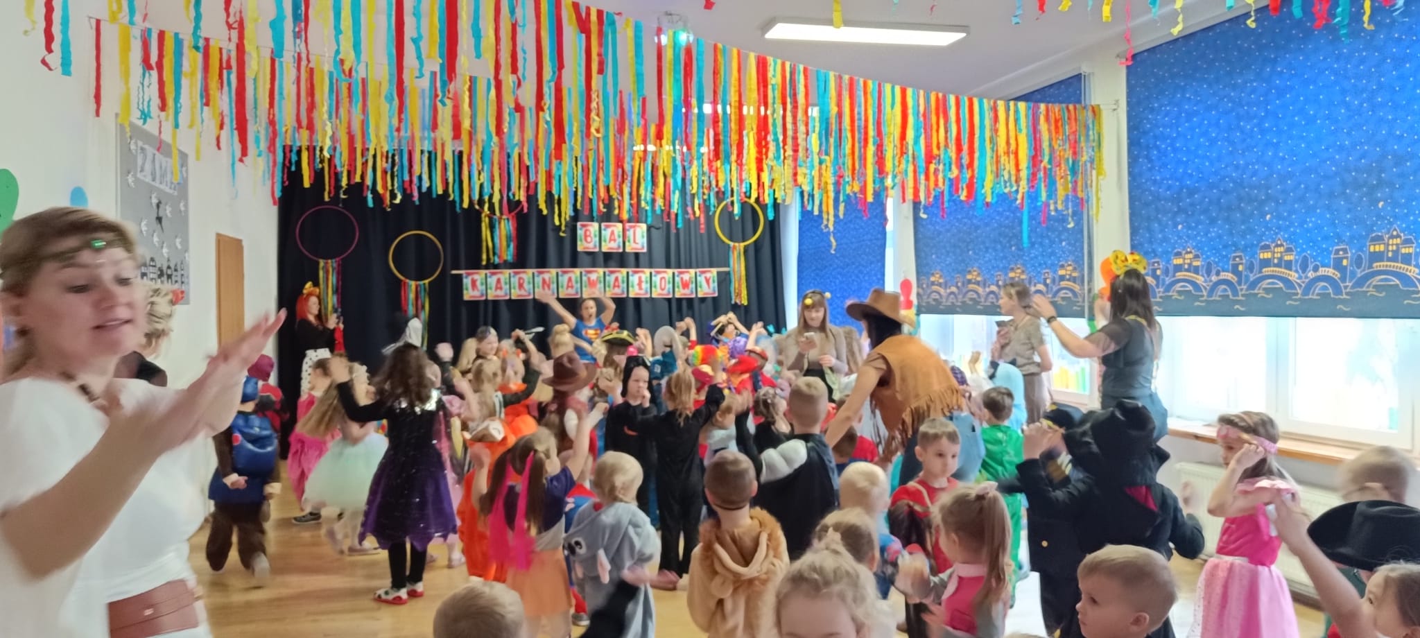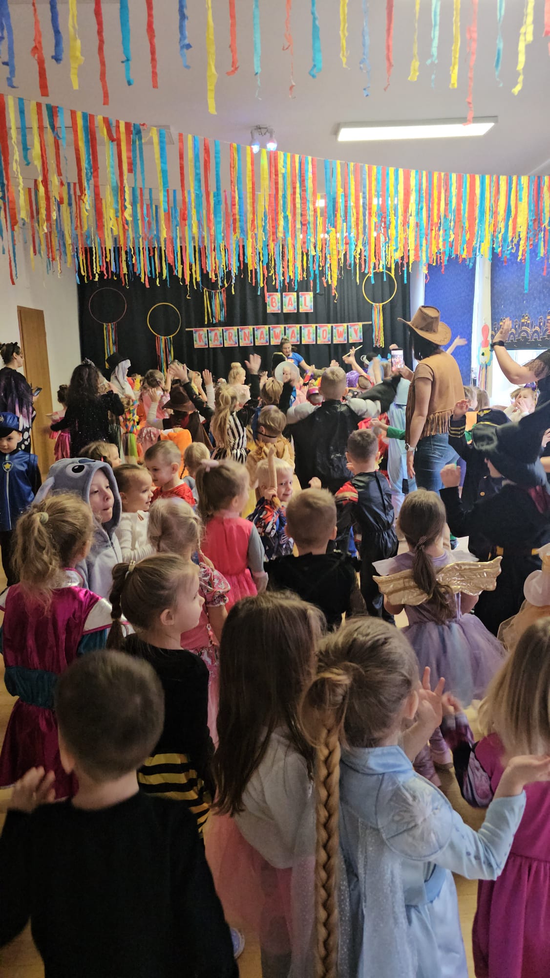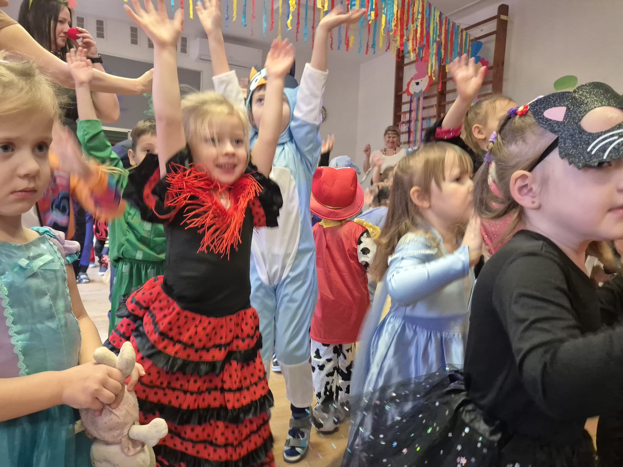 Przedszkolaki przybyły na bal w pięknych i pomysłowych strojach, wcielając się w postacie z bajek, zwierzęta, bohaterów filmowych oraz ulubione zawody. Kolorowe dekoracje i muzyka wprowadziły wszystkich w karnawałowy nastrój.