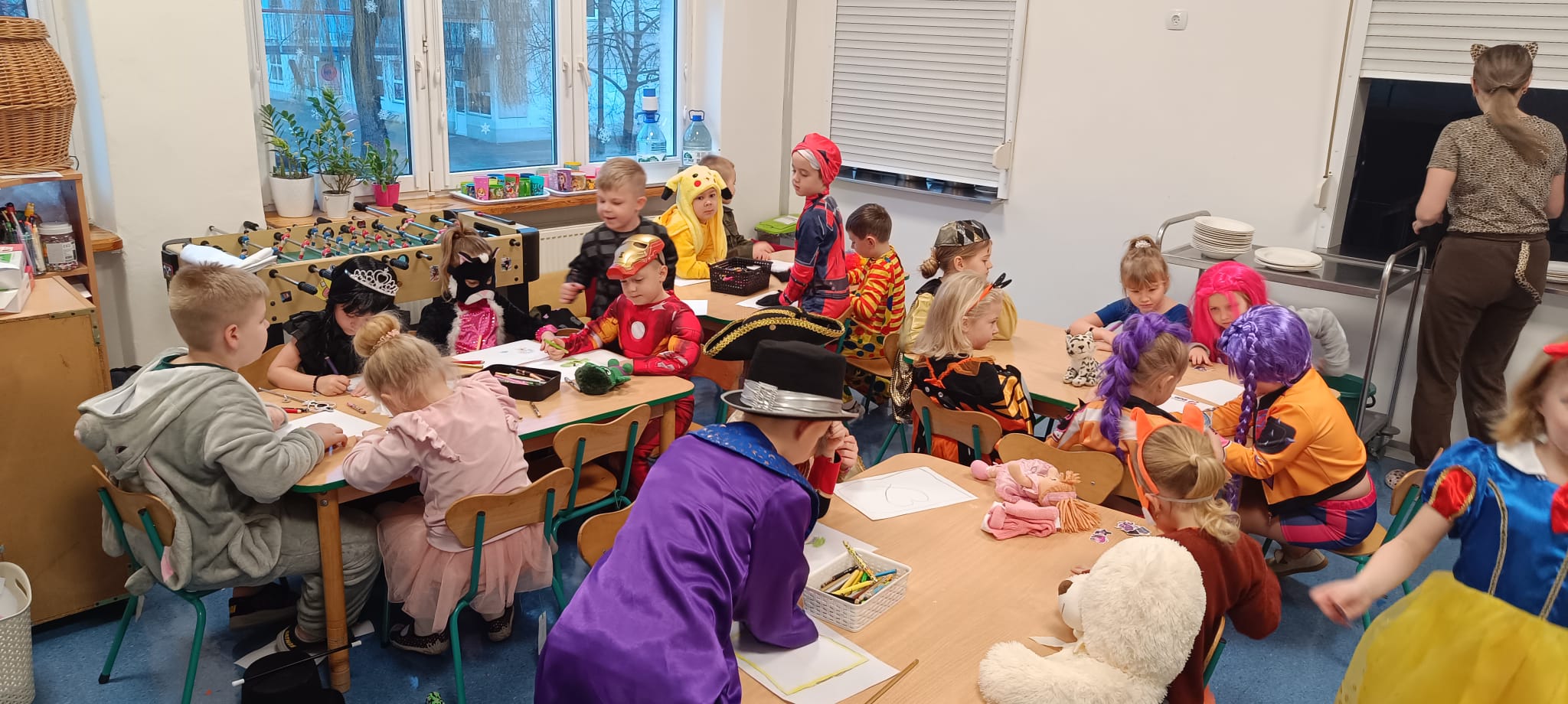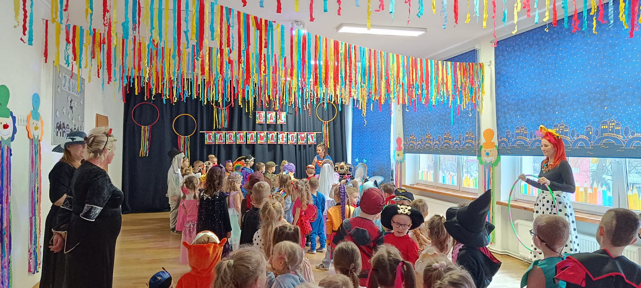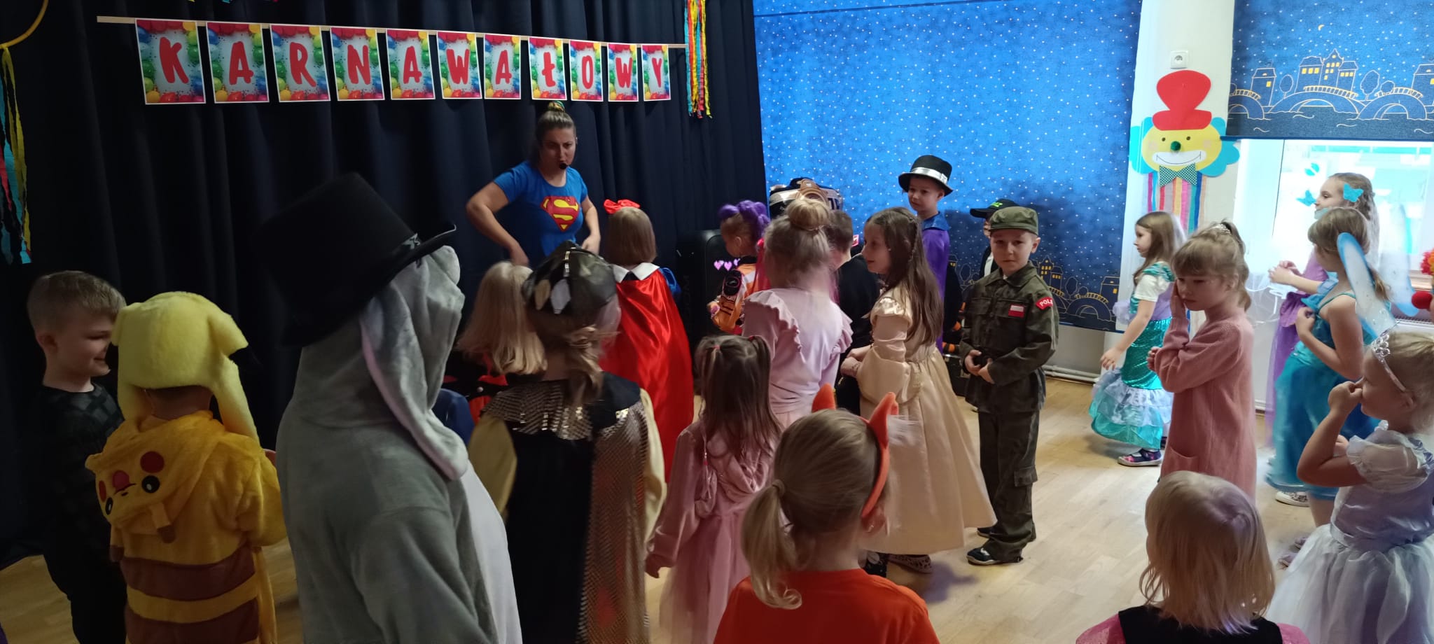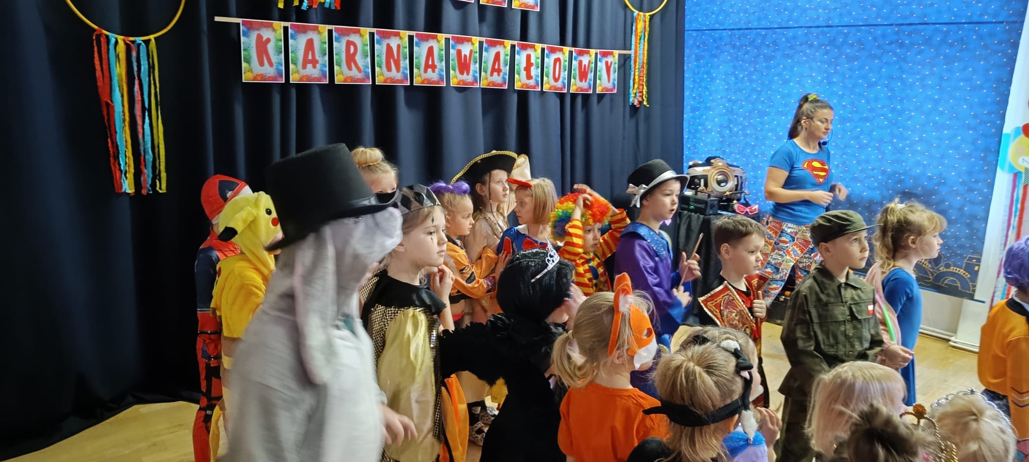 Przedszkolaki przybyły na bal w pięknych i pomysłowych strojach, wcielając się w postacie z bajek, zwierzęta, bohaterów filmowych oraz ulubione zawody. Kolorowe dekoracje i muzyka wprowadziły wszystkich w karnawałowy nastrój.