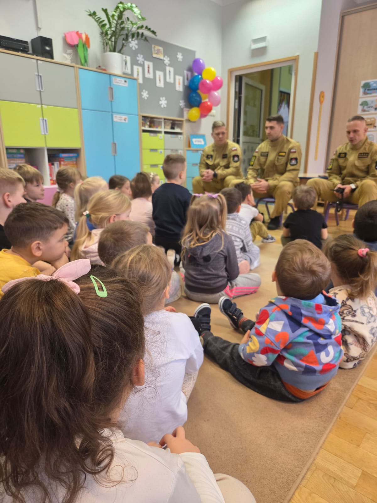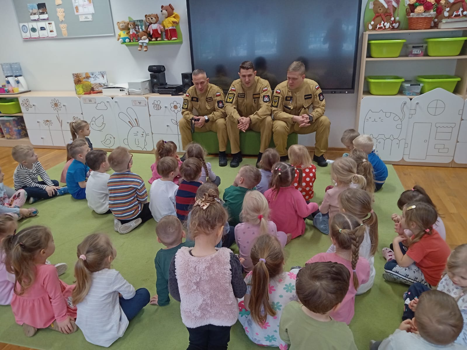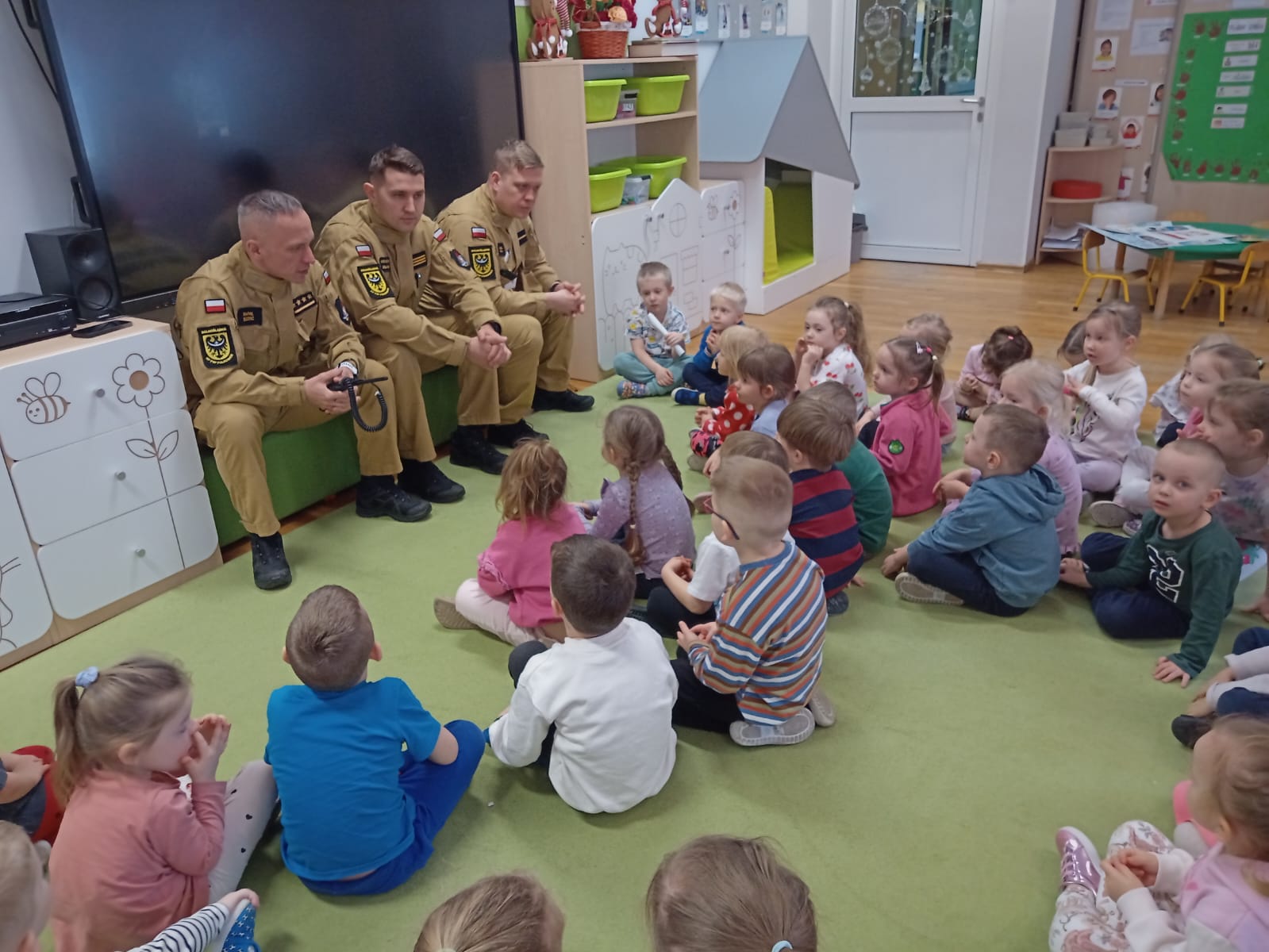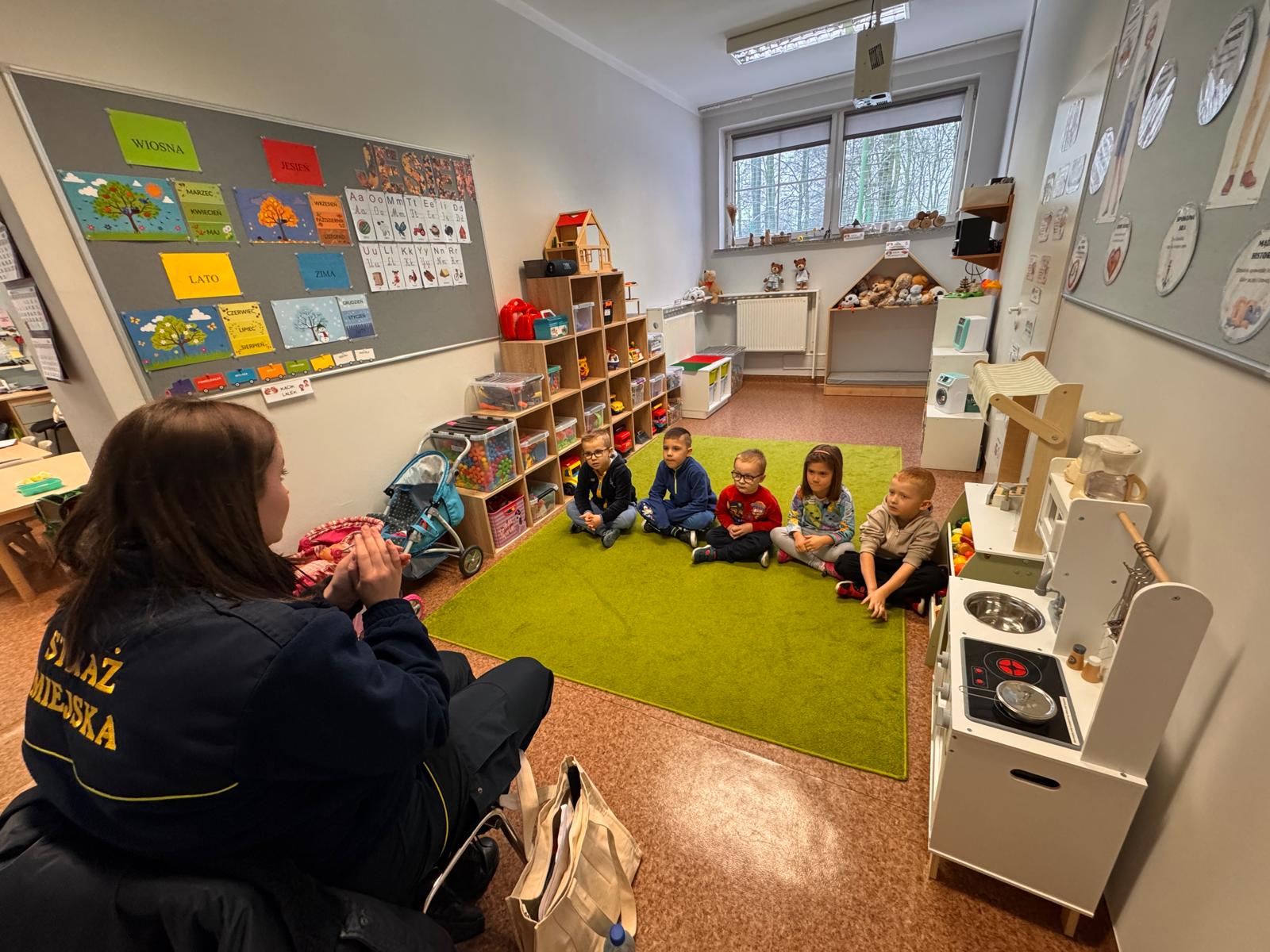 W realizacji zadań pomogli nam goście – przedstawiciele służb mundurowych: Policji, Straży Pożarnej oraz Straży Miejskiej. Goście w przystępny i ciekawy sposób przybliżyli dzieciom zasady bezpiecznego zachowania, opowiedzieli o swojej pracy oraz zaprezentowali elementy umundurowania i sprzętu służbowego. Spotkania wzbudziły duże zainteresowanie i radość wśród przedszkolaków.