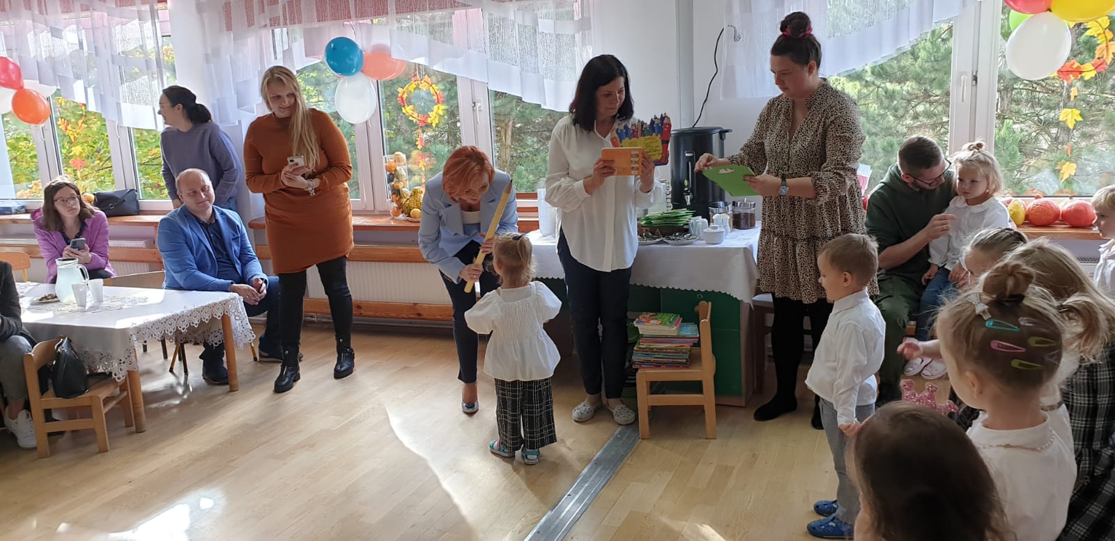 3 października w grupie Pieski odbyła się niezwykle ważna uroczystość – Pasowanie na Przedszkolaka i Starszaka. Dzieci w obecności rodziców oraz bliskich zaprezentowały program artystyczny, podczas którego recytowały wiersze, śpiewały piosenki oraz zatańczyły taniec. Następnie złożyły uroczyste ślubowanie, a Pani Dyrektor dokonała pasowania symbolicznym ołówkiem. Przedszkolaki otrzymały dyplomy, gratulacje i upominki w postaci książek. Przy wspólnym stole wszyscy zajadali się pysznym tortem oraz innymi słodkościami przygotowanymi przez mamy. Były to chwile pełne wrażeń, które na pewno dzieci i rodzice będą długo wspominać.