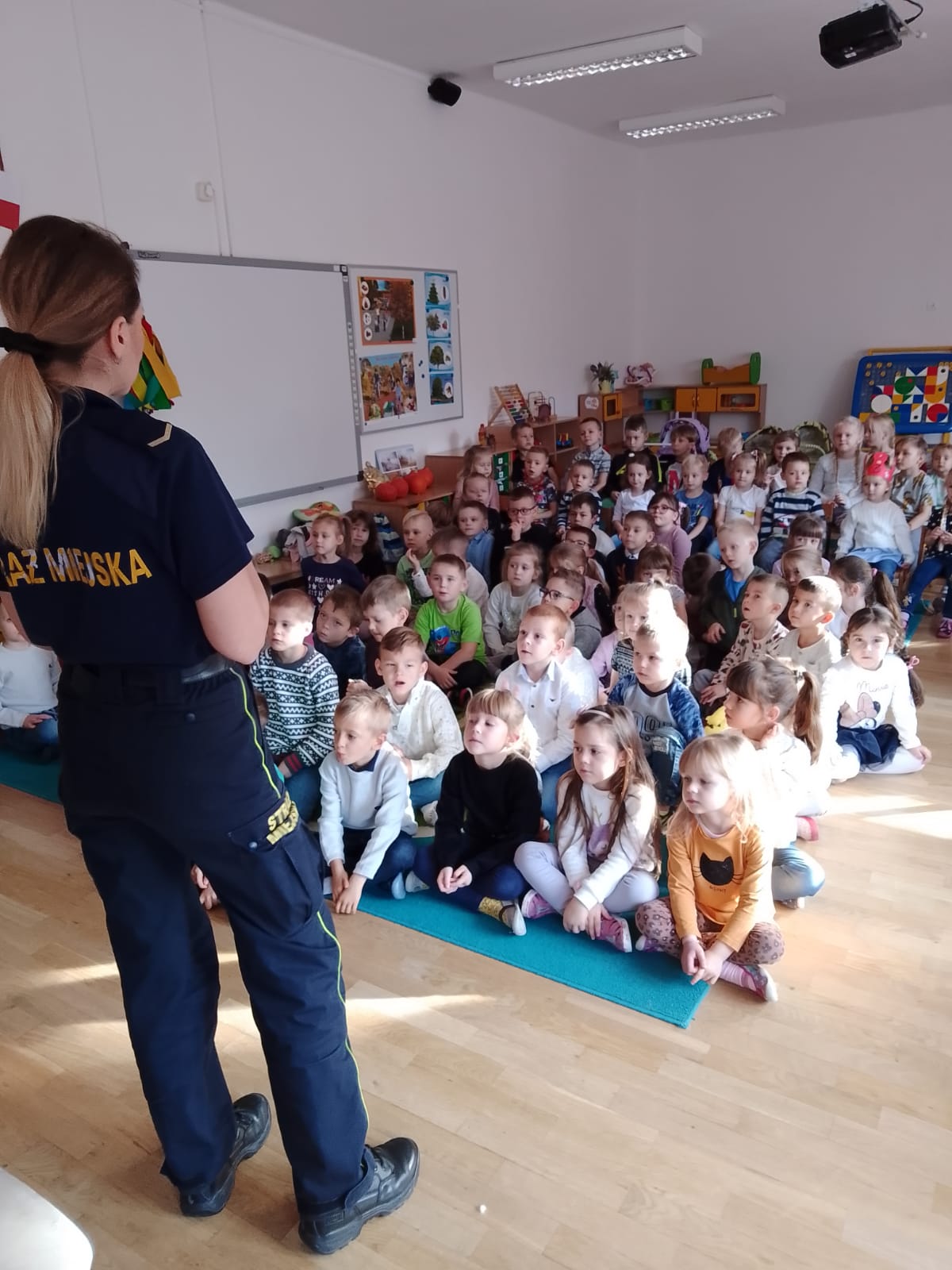 W ramach kampanii 19 dni bez przemocy nasze przedszkole oraz dwa oddziały zamiejscowe odwiedziły funkcjonariuszki Straży Miejskiej. Spotkania miały na celu uświadomienie dzieciom "dlaczego nie wolno bić?", utrwalenie praw i obowiązków przedszkolaka oraz wdrażanie do okazywania serdeczności, sympatii i szacunku wszystkim kolegom i koleżankom. Ponadto panie strażniczki utrwaliły wiedzę przedszkolaków na temat obowiązujących zasad bezpieczeństwa na ulicy, w przedszkolu i w domu. Na koniec spotkania dzieci podziękowały strażniczkom i zaprosiły na kolejną wizytę. Przedszkolaki dostały kolorowanki utrwalające wiadomości z przeprowadzonej prelekcji.