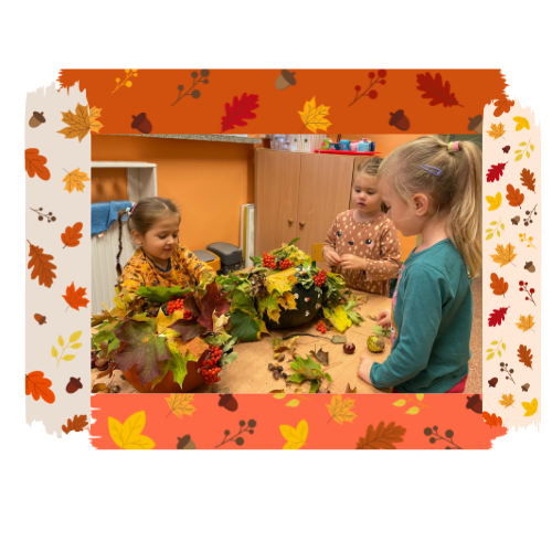 Dzieci w grupie Wiewiórki, podczas spaceru w parku obserwowały zmieniającą się przyrodę, zebrały skarby jesieni i przyozdobiły nimi dynie, które będą upiększać kącik przyrodniczy.