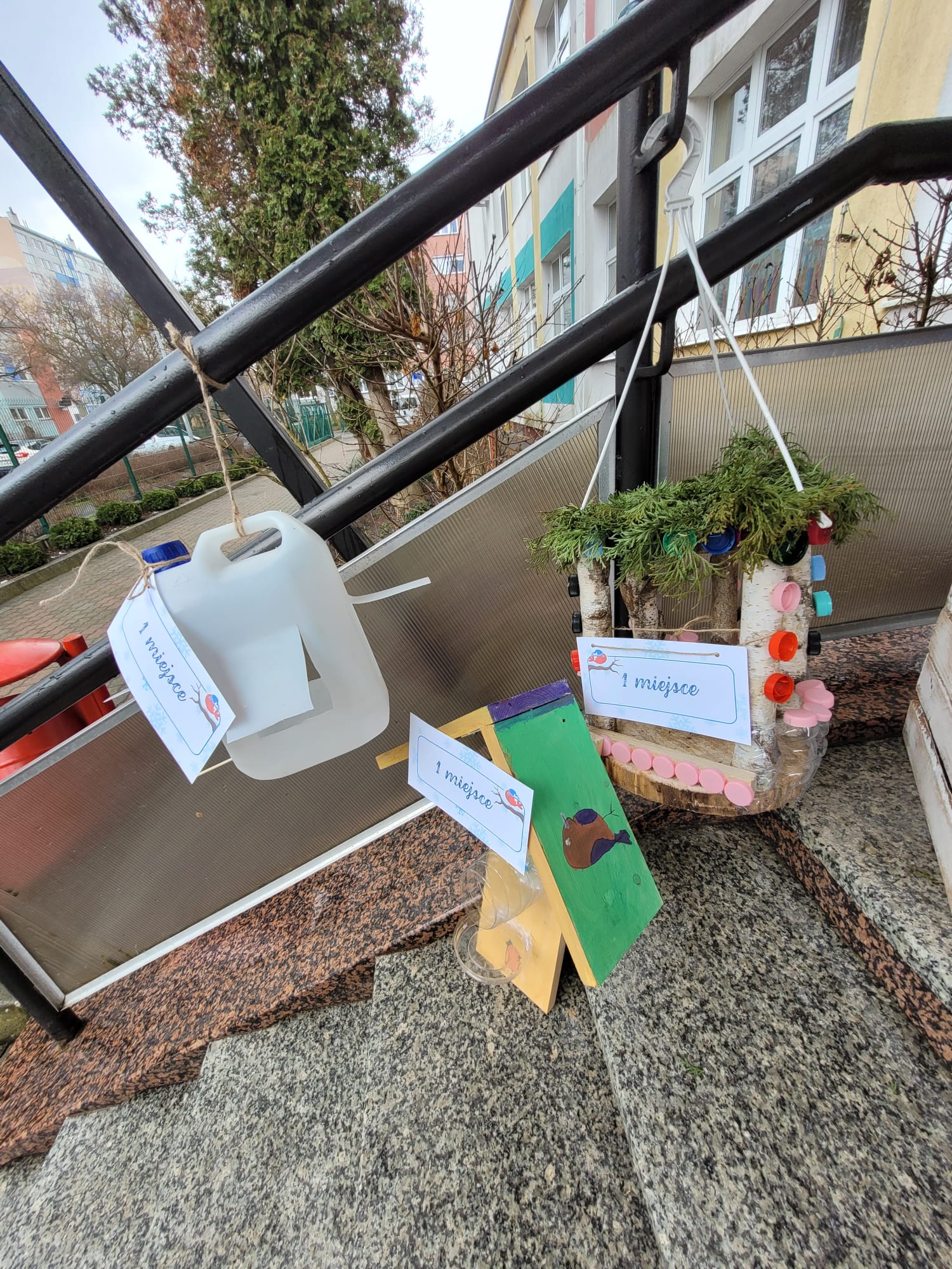 i zdolności manualnych oraz wzmocnienie więzi międzypokoleniowych. W ramach przedszkolnego konkursu dzieci wraz z rodzicami wykonały karmniki z materiałów ekologicznych i wtórnych (np. plastikowe butelki, drewniane łyżki, kartony po mleku, naturalne drewno, gałązki, pnie, itd.). Pomysłowość i oryginalność karmników przeszła najśmielsze oczekiwania jury! Na osiedlu krążą pewne plotki – wszystkie ptaki