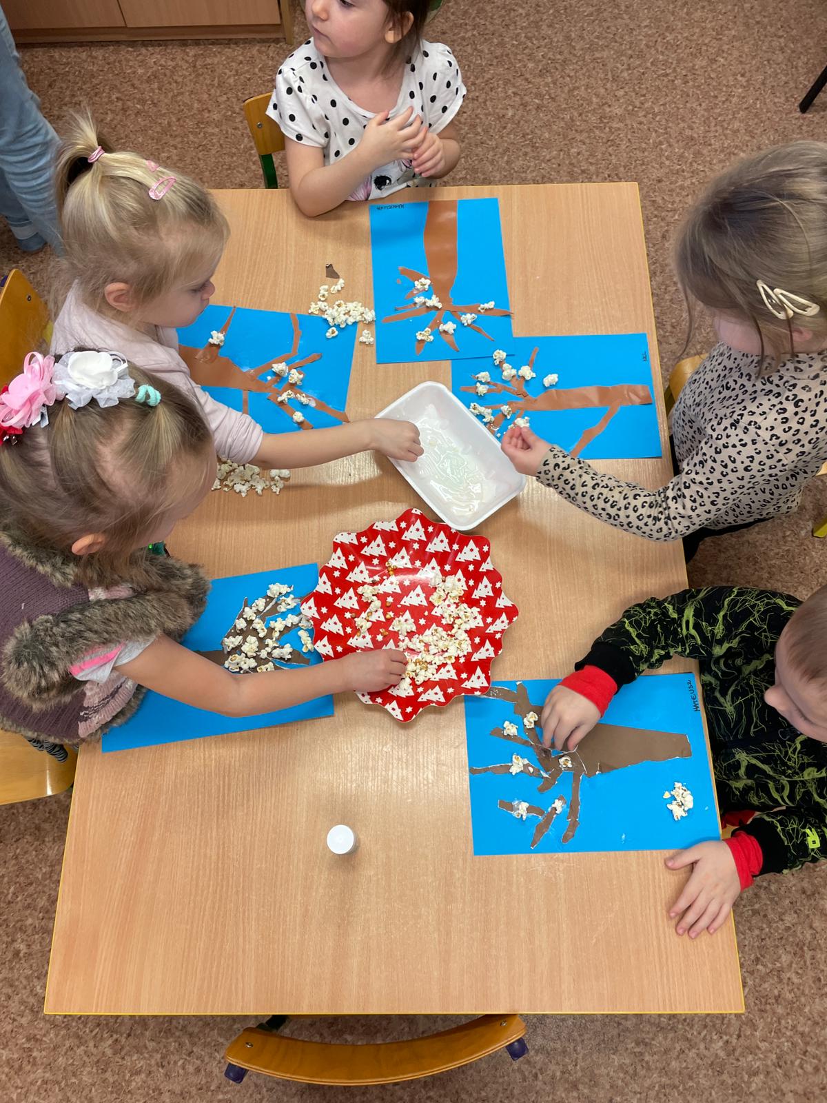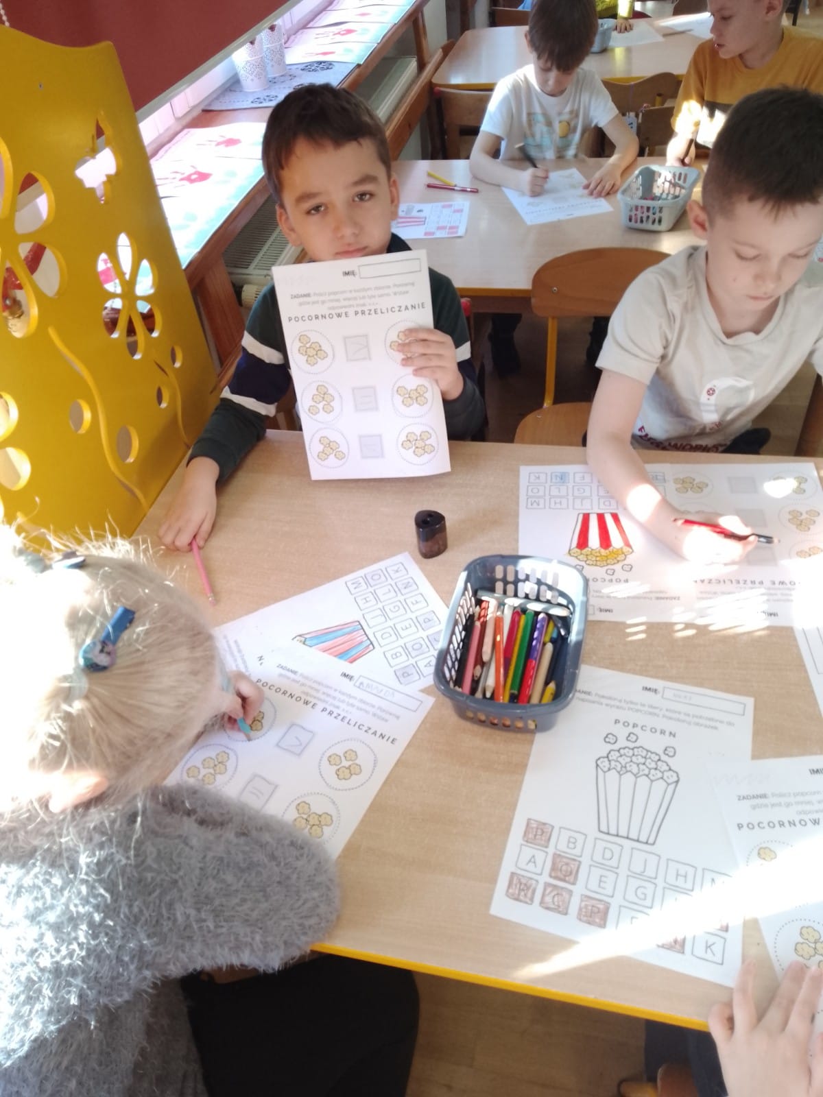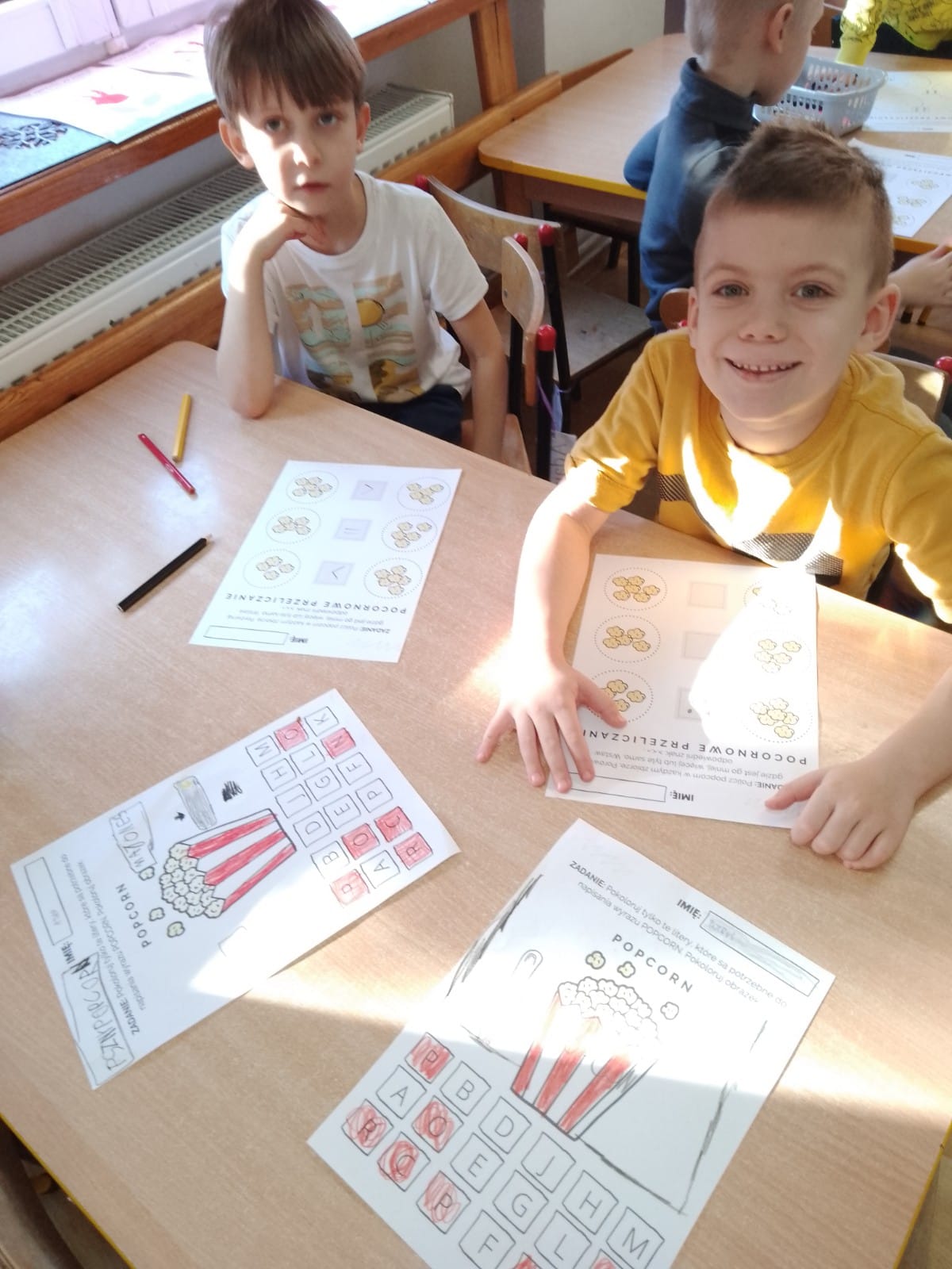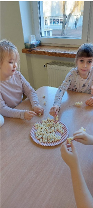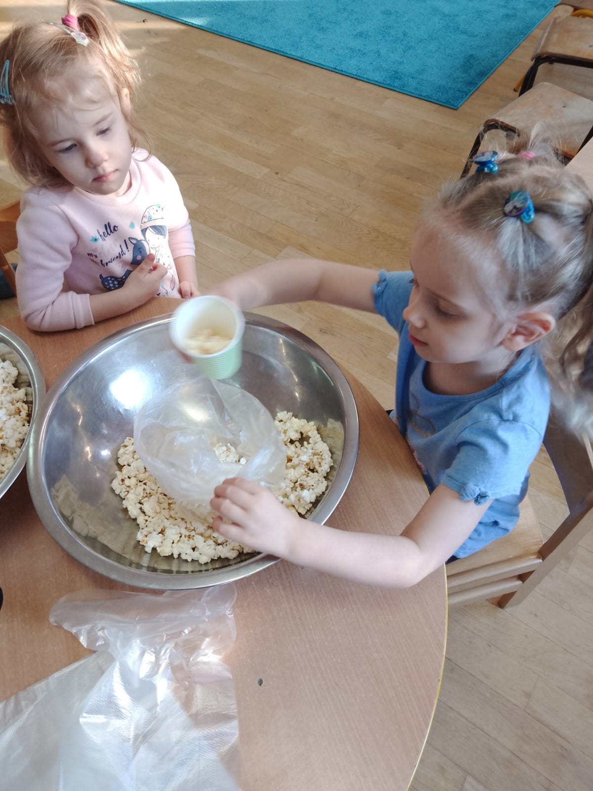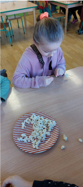 Dnia 19 stycznia 2023 roku w naszym przedszkolu obchodziliśmy „Międzynarodowy dzień popcornu”. Popcorn kojarzy nam się głównie z kinem, ale postanowiliśmy przyjrzeć mu się troszkę bliżej. Zauważyliśmy, że każdy ma inny kształt, który może przypominać dosłownie wszystko. Dzieci opisały jego smak: słony, słodki, z dodatkiem masełka i cynamonu… popcorn bez wątpienia był bohaterem tego dnia. Przedszkolaki dowiedziały się m.in. co to jest popcorn, jak się go przygotowuje oraz co należy zrobić aby miał inny smak. Wykonały także pracę plastyczną oraz świetnie bawiły się podczas zabawy z wykorzystaniem słomek i popcornu. Zadanie polegało na przeniesieniu popcornu za pomocą słomki, z jednego talerzyka na drugi oraz zdmuchnięcie ziarenek. Zapraszamy do obejrzenia zdjęć z tego dnia.
