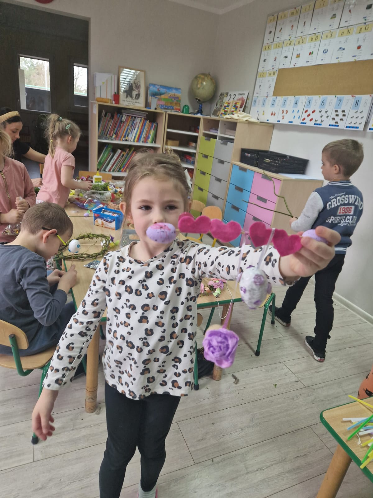 31. 03. 2023r. w oddziale przedszkolnym w Sobinie odbyły się warsztaty rodzinne. Z okazji zbliżających się Świąt Wielkanocnych powstały wiszące stroiki z jajkami, kolorowe pisanki na patyczkach i wiosenne ozdoby. Dzieci były zachwycone wspólnymi zajęciami z rodzicami.