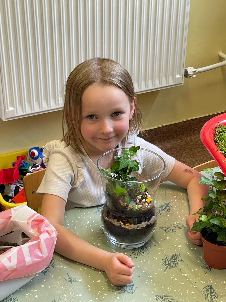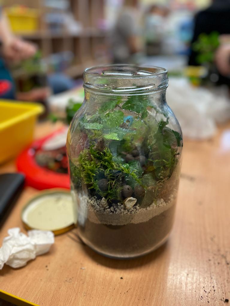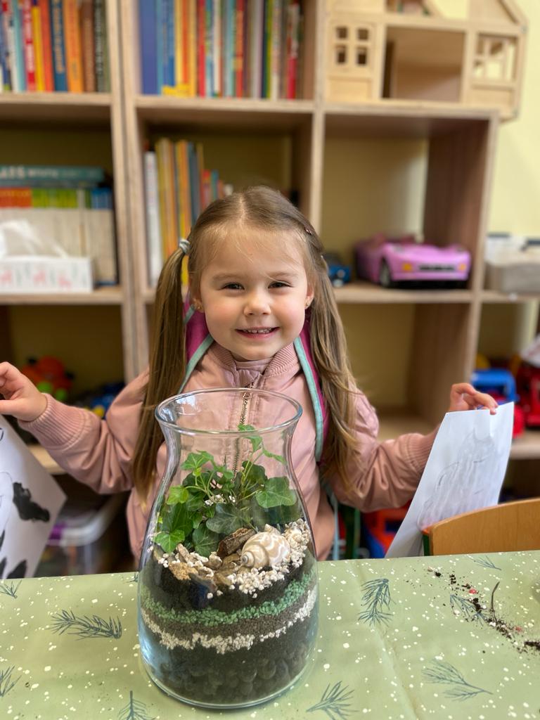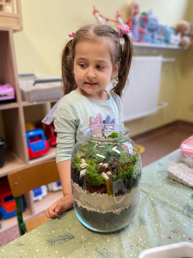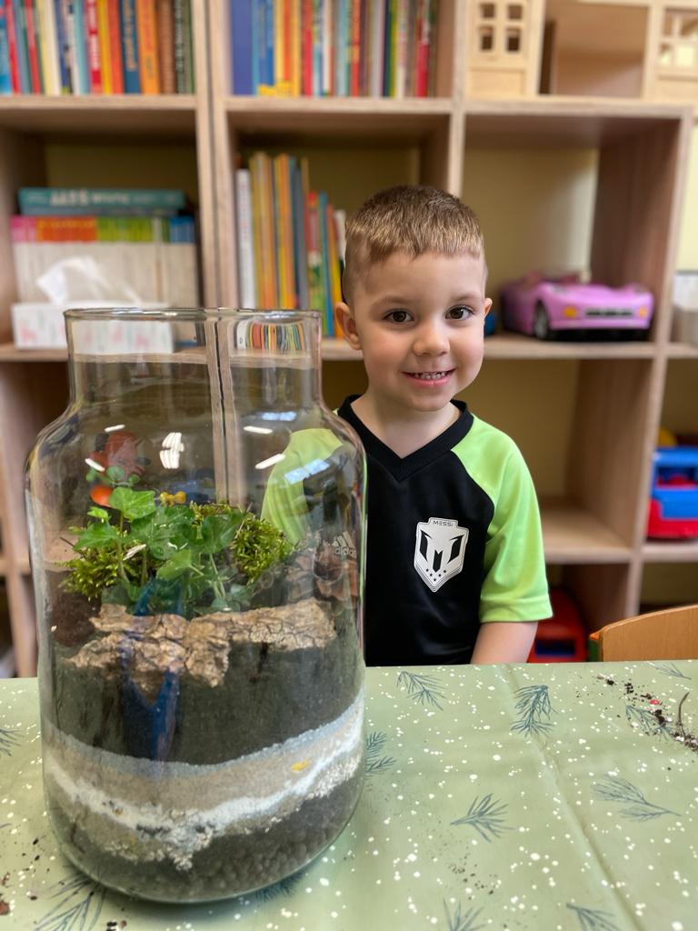 W grupie Wiewiórki w Suchej Górnej odbyły się warsztaty przyrodniczo - ekologiczne "Las w słoiku". Dzieci wraz z rodzicami wykonywały w przyniesionych słoikach swój własny las, używając do tego keramzytu, żwirku, ziemi, kamyków, roślinek oraz ozdobnych kamyczków. Wszystko według instrukcji nauczyciela ułożone zostało w słoiku w odpowiedniej kolejności. Las sam sobie ma wytwarzać wszystko, czego potrzebuje. To nie zwalnia dzieci z odpowiedniego dbania o roślinki, należy je podlewać go raz w tygodniu i postawić w odpowiednio nasłonecznionym miejscu. Mamy nadzieję, że powstałe piękne kompozycje długo będą zdobiły pokoje naszych Przedszkolaków.