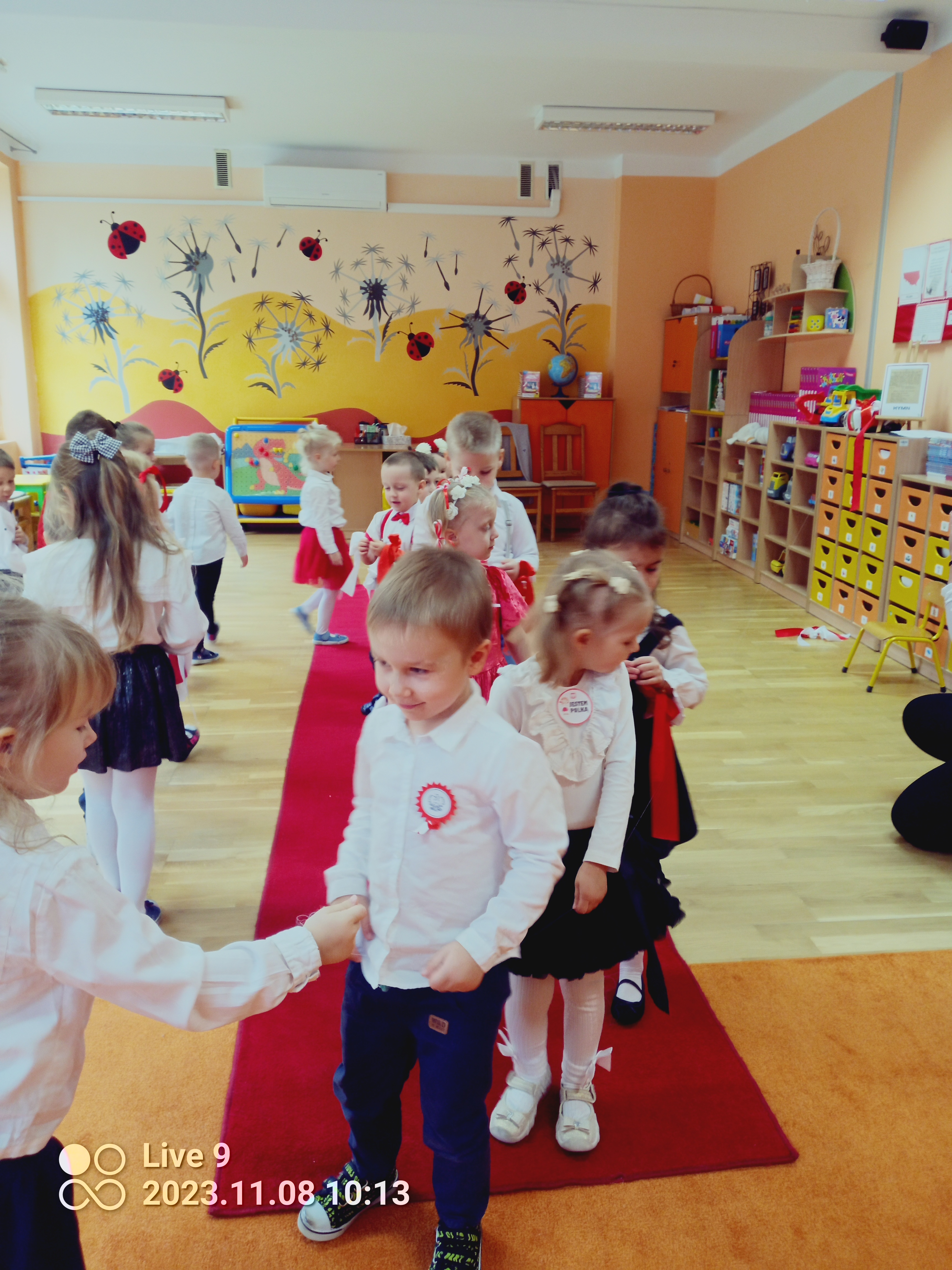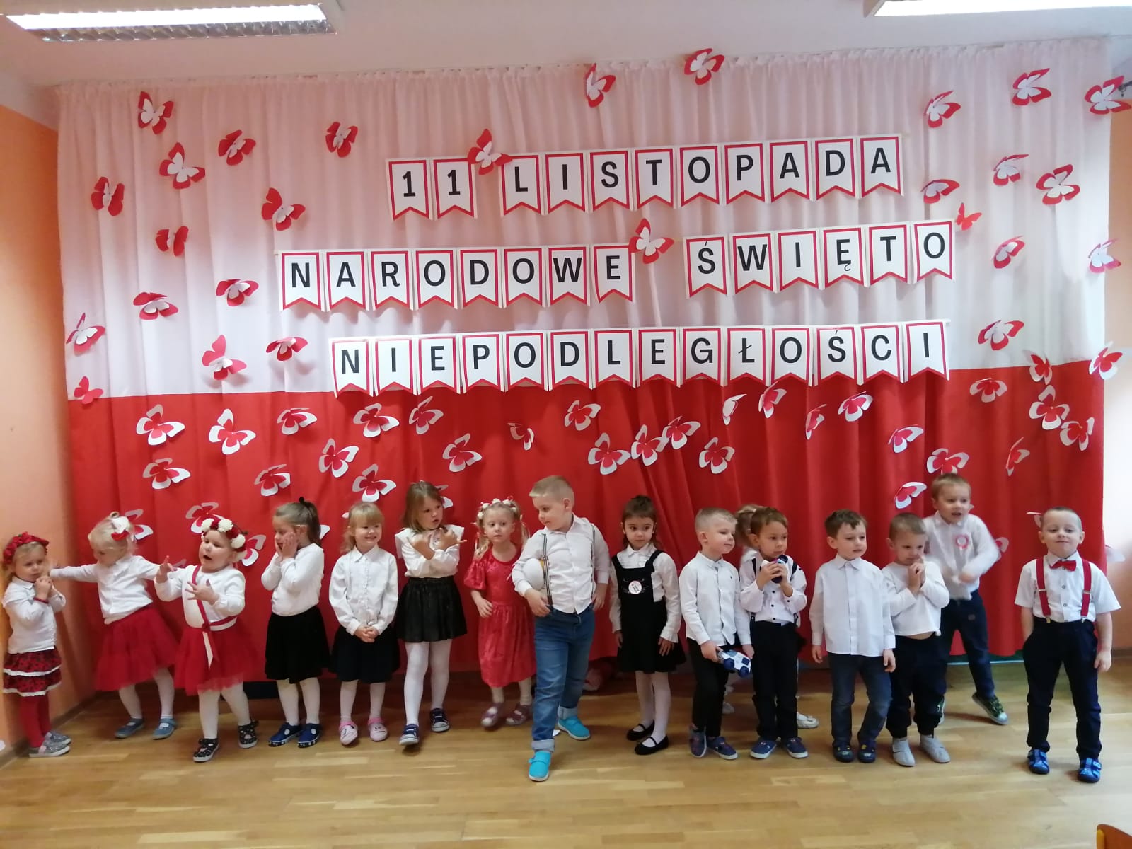 Przedszkolaki od paru tygodni przygotowywały się do tego ważnego wydarzenia pod opieką wychowawców. Podczas występu dzieci recytowały wiersze patriotyczne, śpiewały piosenki oraz tańczyły. Wszyscy nasi wychowankowie, aby oddać powagę sytuacji, tego ważnego dnia ubrali się odświętnie i uroczyście. Na ich piersi widniały kotyliony w barwach narodowych a w ręce powiewała flaga Polski.