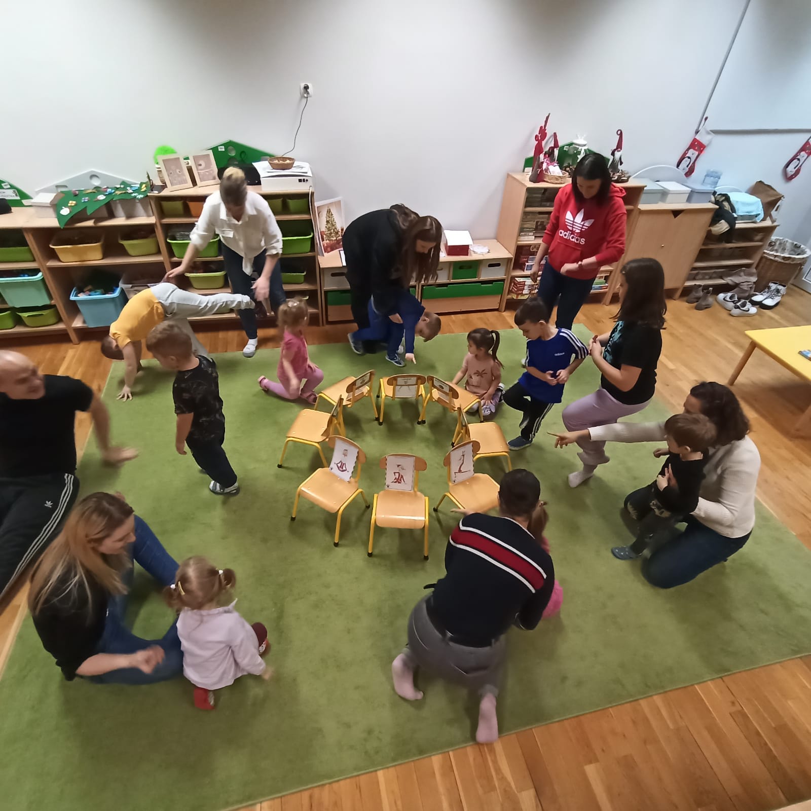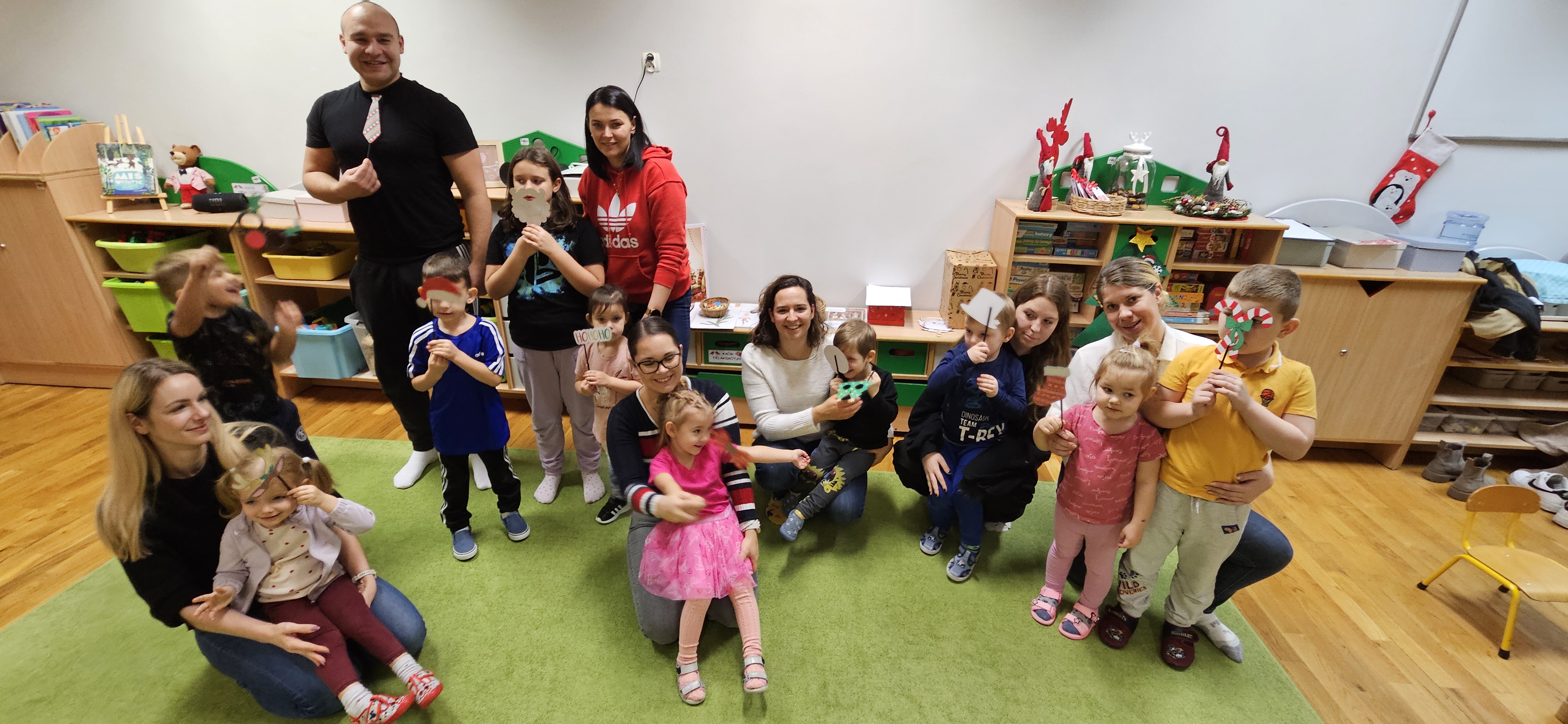 o tematyce świątecznej. Wspólnie została ubrana sensoryczna choinka, następnie wszyscy uczestnicy wzięli udział w Mikołajowej jodze. Na koniec warsztatów z zapałem zostały ozdobione aromatyczne pierniczki według pomysłów dzieci, które wykazały się przy tym pomysłowością