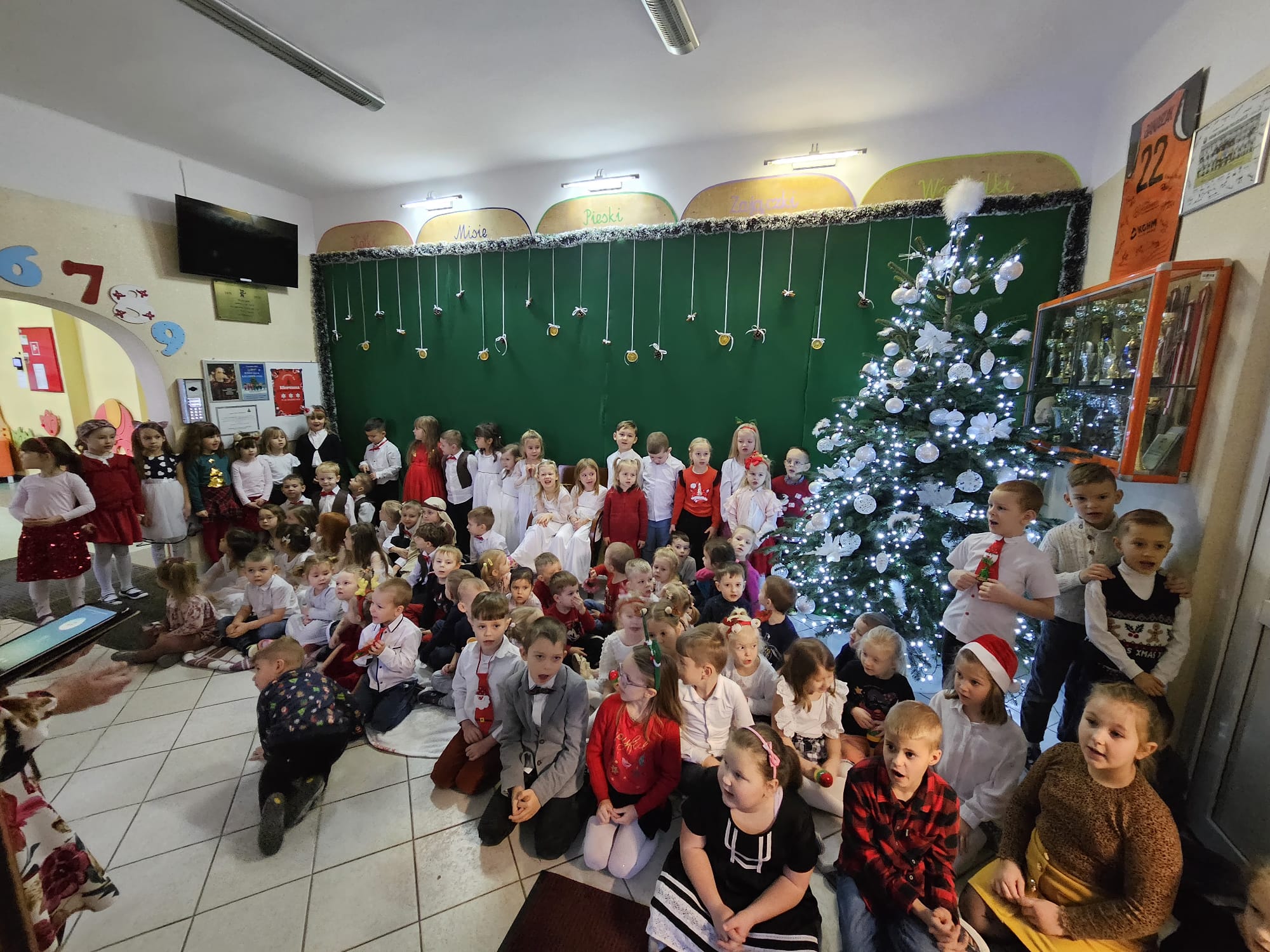 Święta Bożego Narodzenia to najpiękniejszy czas, pełen radości i wzruszeń. Są to święta najdroższe i najbliższe naszym sercom, gdyż towarzyszy im niepowtarzalna i wyjątkowa atmosfera. Taki radosny i świąteczny nastrój zapanował w naszym przedszkolu 15 grudnia 2023, podczas przedszkolnego kolędowania.