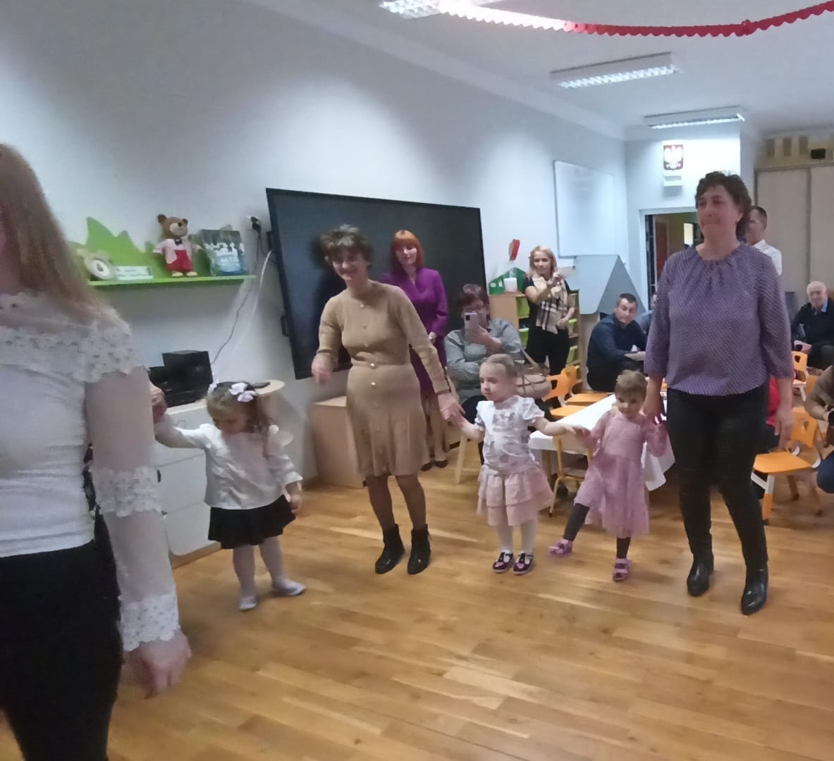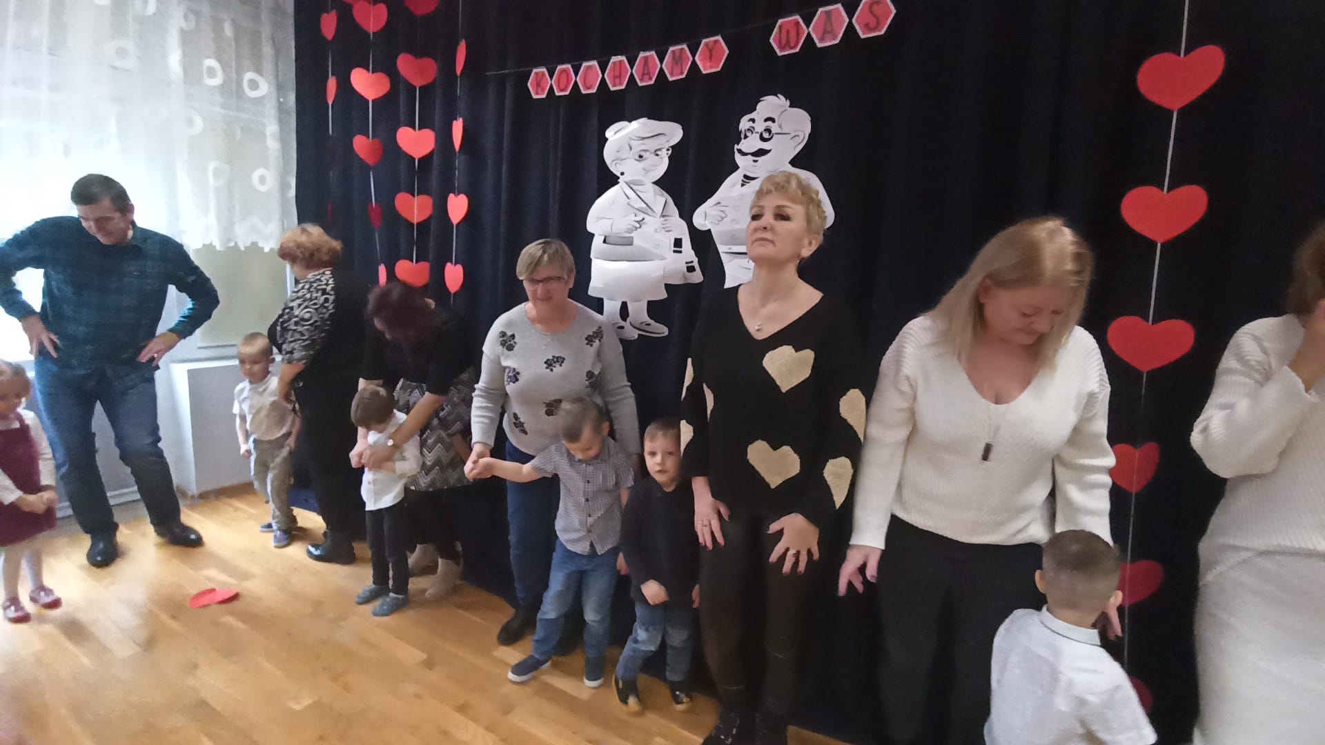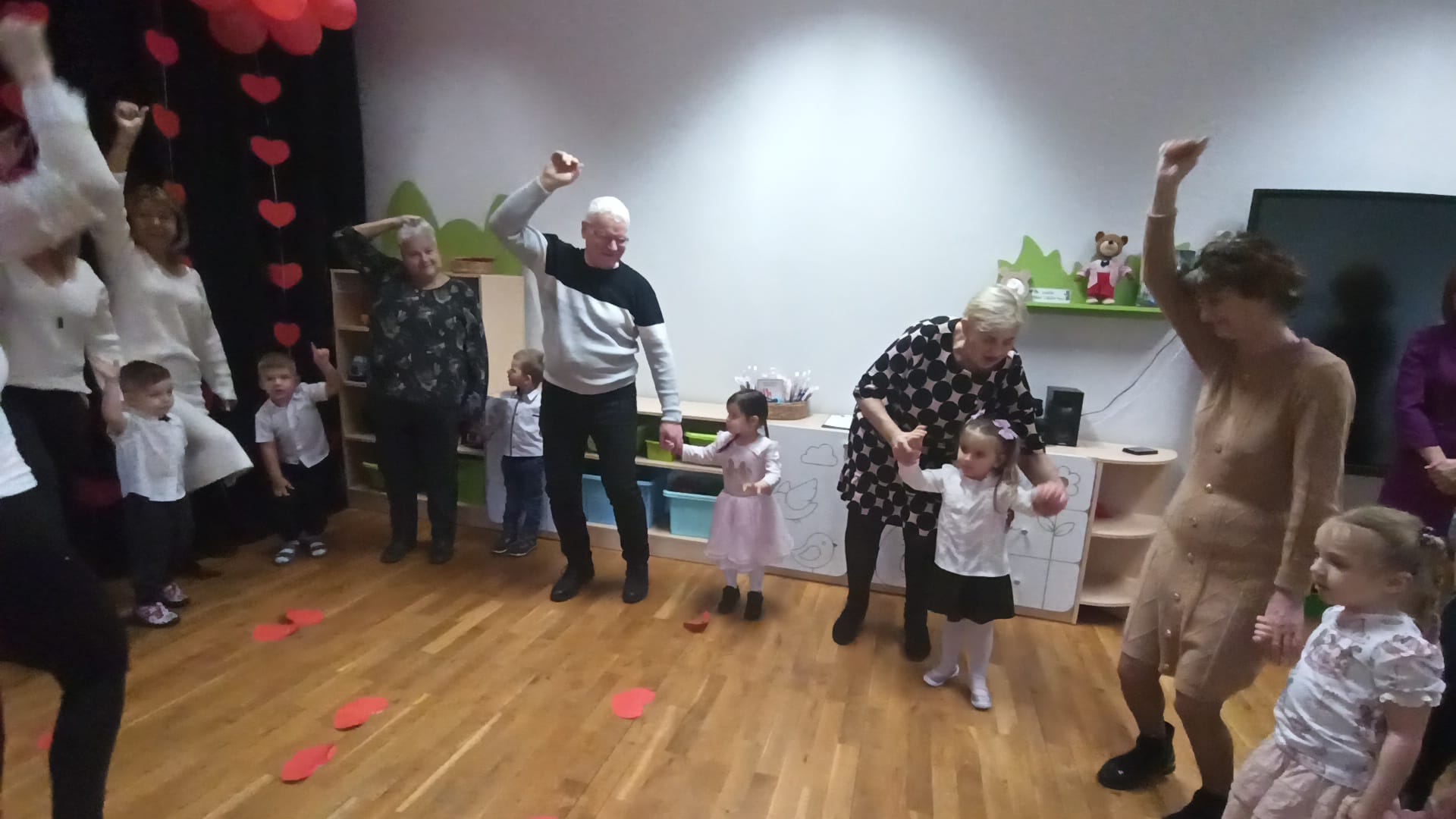 Babcia i Dziadek to słowa, które każdemu dziecku kojarzą się z ciepłem, miłością i wszystkim, co dobre- dlatego dzieci z grupy Wróbelki dnia 06.02.2024 roku gościły swoje Babcie oraz Dziadków na uroczystości z tej okazji. Przedszkolaki od samego rana z niecierpliwością wyczekiwały zaproszonych gości, nie mogąc się doczekać, kiedy zapukają do drzwi Przedszkola. Licznie przybyli: Babcie i Dziadkowie, mieli okazję podziwiać swoje wnuczęta w specjalnie dla nich przygotowanym programie artystycznym. W serduszkowej scenografii przedszkolaki recytowały wiersze przeplatane wzruszającym śpiewem. Mali artyści z przejęciem prezentowali swoje umiejętności. Oczywiście nie zabrakło też własnoręcznie zrobionych upominków, które dzieci wręczyły swoim ukochanym Babciom i Dziadkom. Życzymy wszystkim Babciom i Dziadkom dużo miłości od Swoich wnuków, radości, zdrowia i wszelkiej pomyślności na każdy dzień!