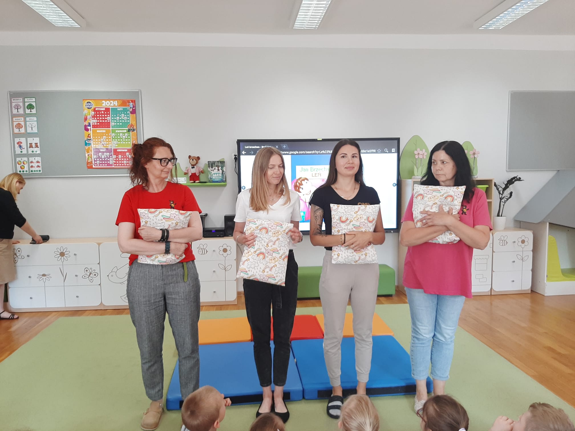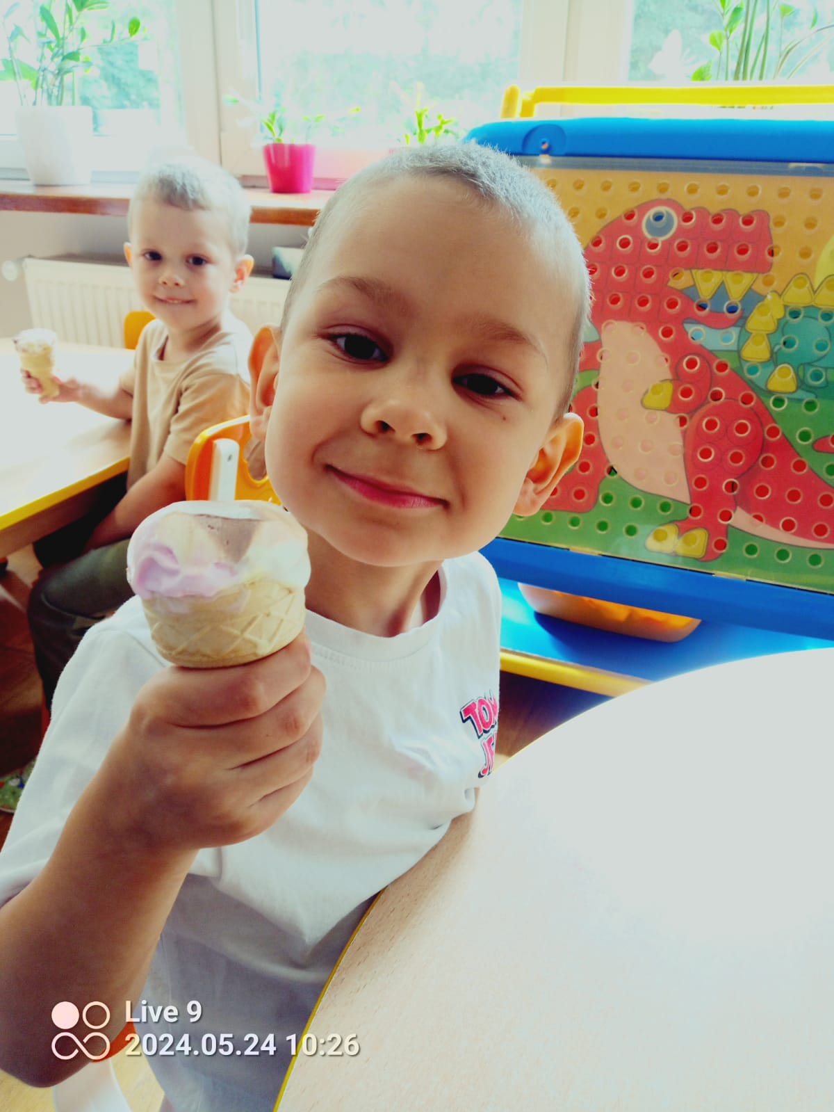 Tydzień Dziecka w naszym przedszkolu obfitował w wiele atrakcji. Najpierw były smakowite lody, a Panie specjalnymi kredkami ozdabiały dzieciom twarze w kolorowe wzory. Następny dzień to wyjazd wszystkich grup do głogowskiego OK Parku. Dzieci świetnie się bawiły w basenie z kulkami, na karuzeli, na dmuchańcu, itp. Wycieczka ta sprawiła wiele frajdy. Hasło kolejnego dnia to: „Nauczyciele dzieciom” , czyli przedszkolaki obejrzały inscenizację wiersza J. Brzechwy „Leń” w wykonaniu nauczycielek. Następnie odbyły się wspólne zabawy integracyjne, muzyczno - ruchowe i mini dyskoteka. W ostatnim dniu odchodów dziecięcego święta było przedszkolne kino. Dzieci obejrzały film zajadając świeżutki popcorn. Było super!