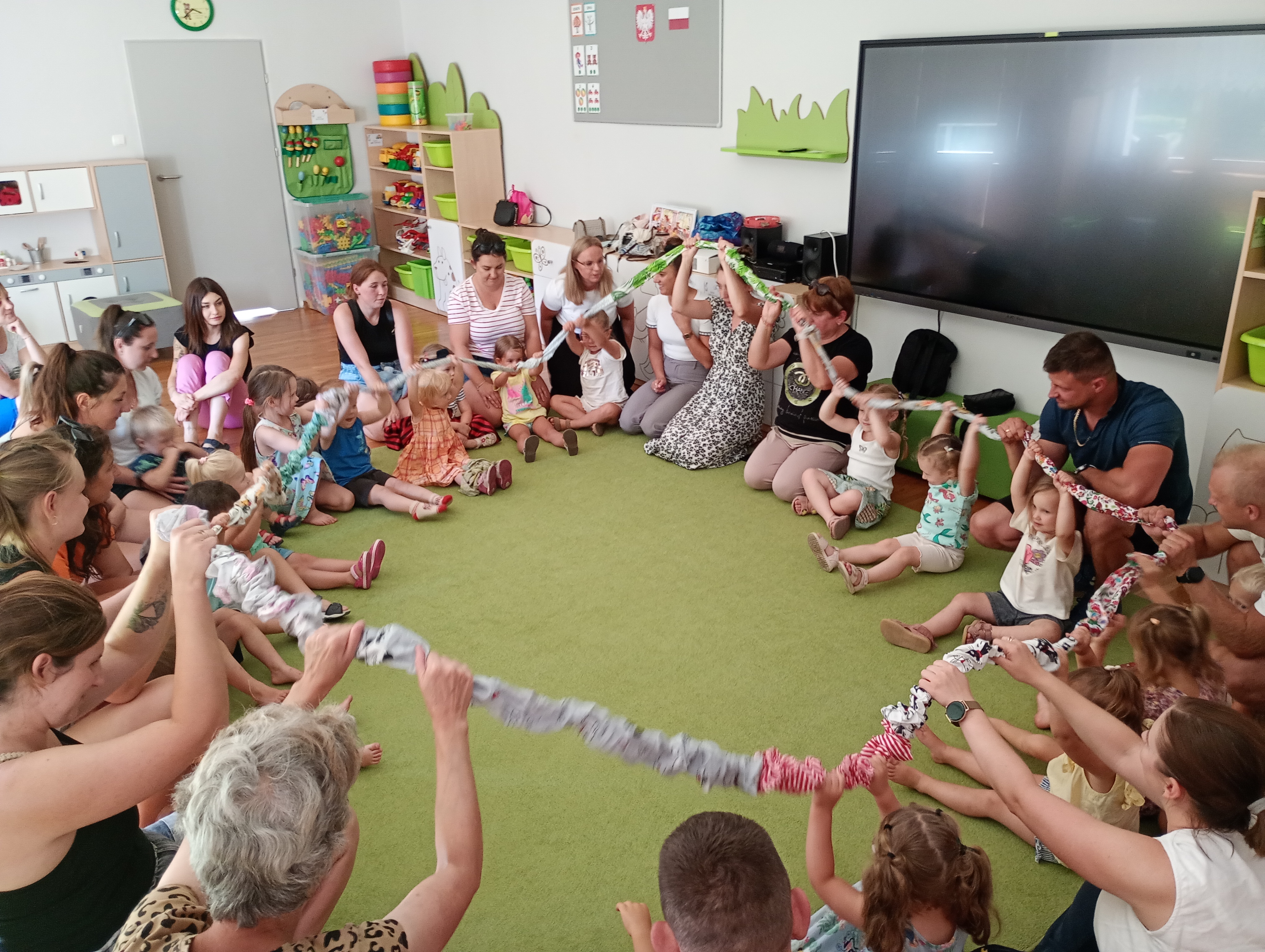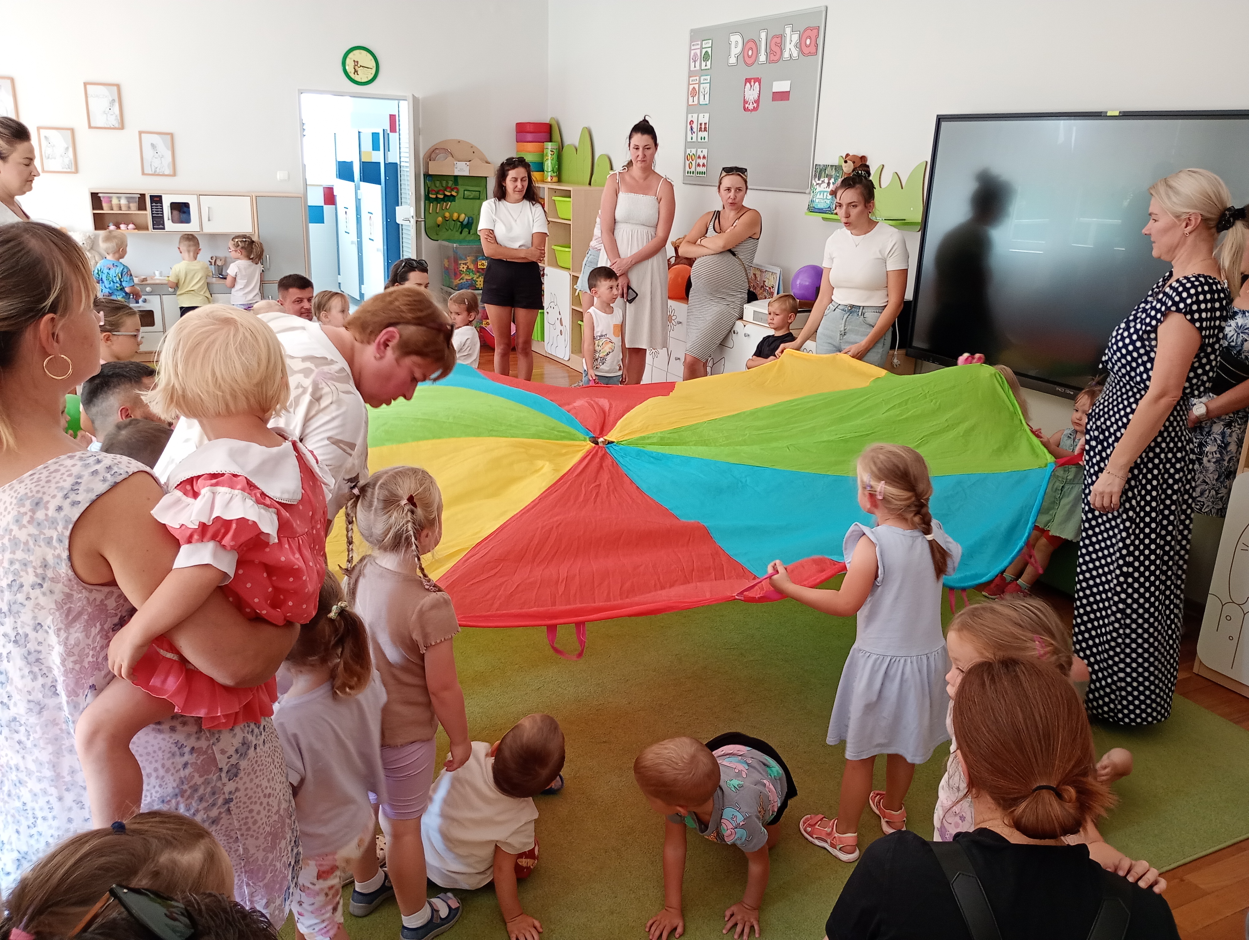 W dniach 28.09.2024 - 30.09.2024 r. Odbyła się adaptacja dla dzieci 3 letnich. Dzieci miały okazję poznać Misiowe przedszkole. W pierwszym dniu wszyscy się poznaliśmy i były zabawy z chustą animacyjną. W drugim były zabawy z gumą sensoryczną i eksperyment pt. „Kosmos w słoiku”, natomiast w ostatnim dniu były zabawy sportowe w ogrodzie. Czekamy na Was!!