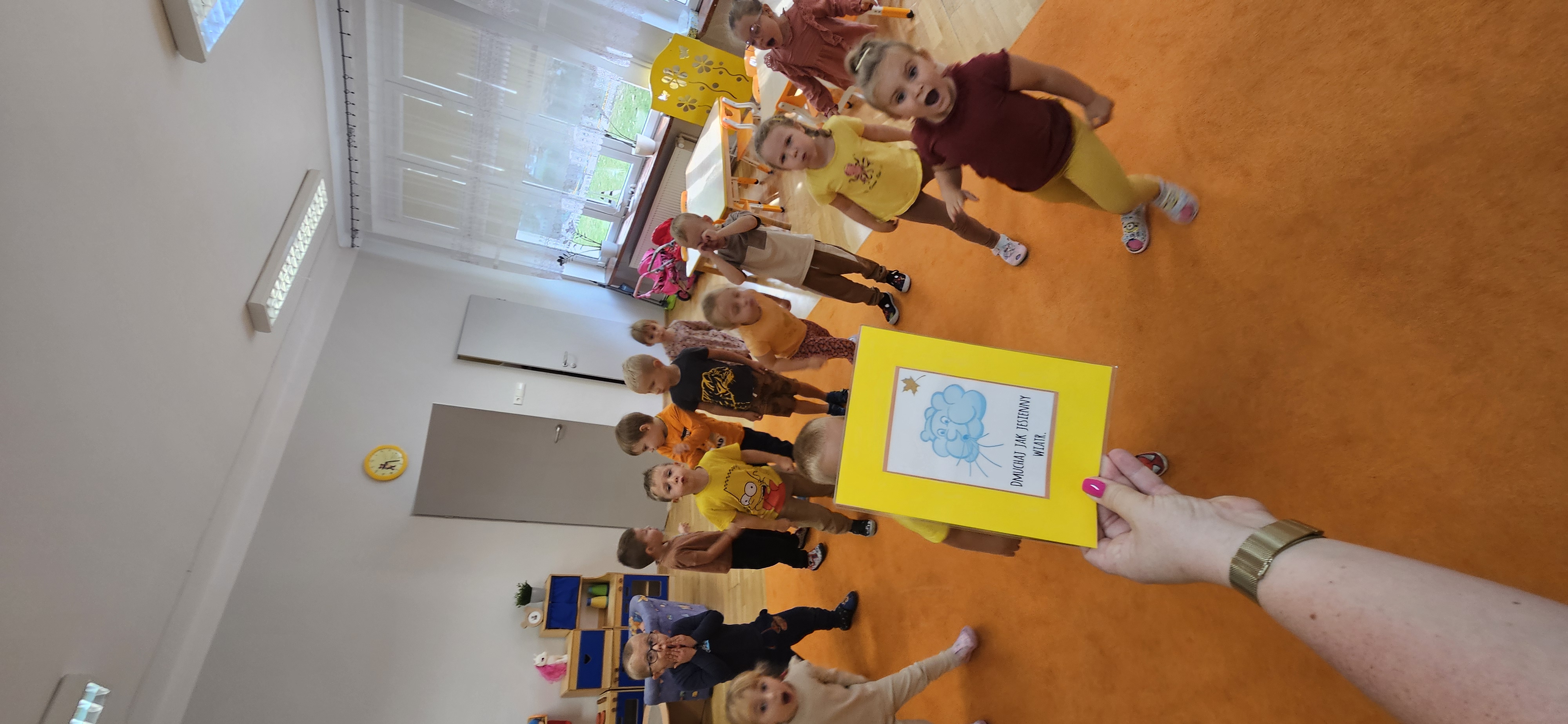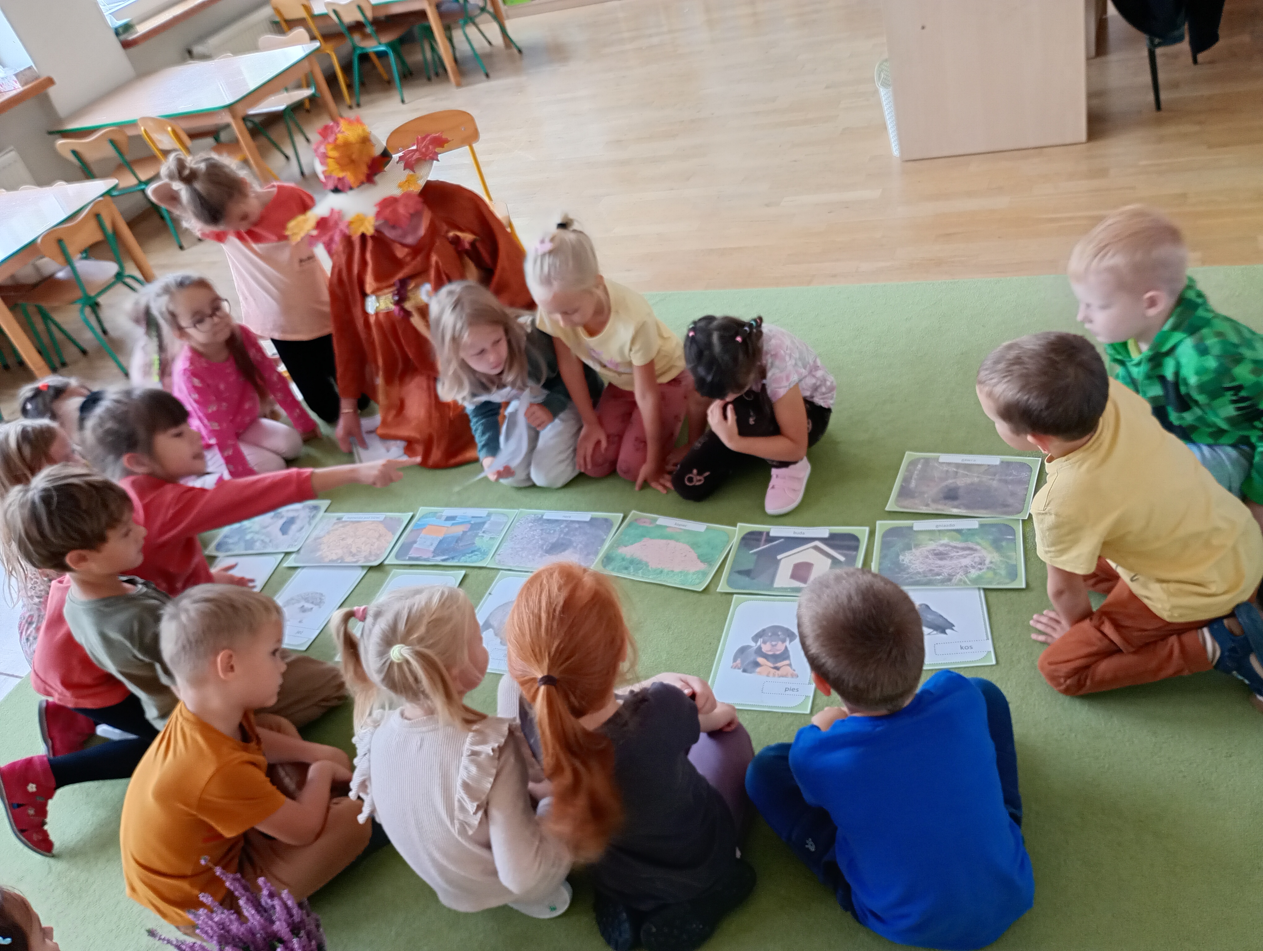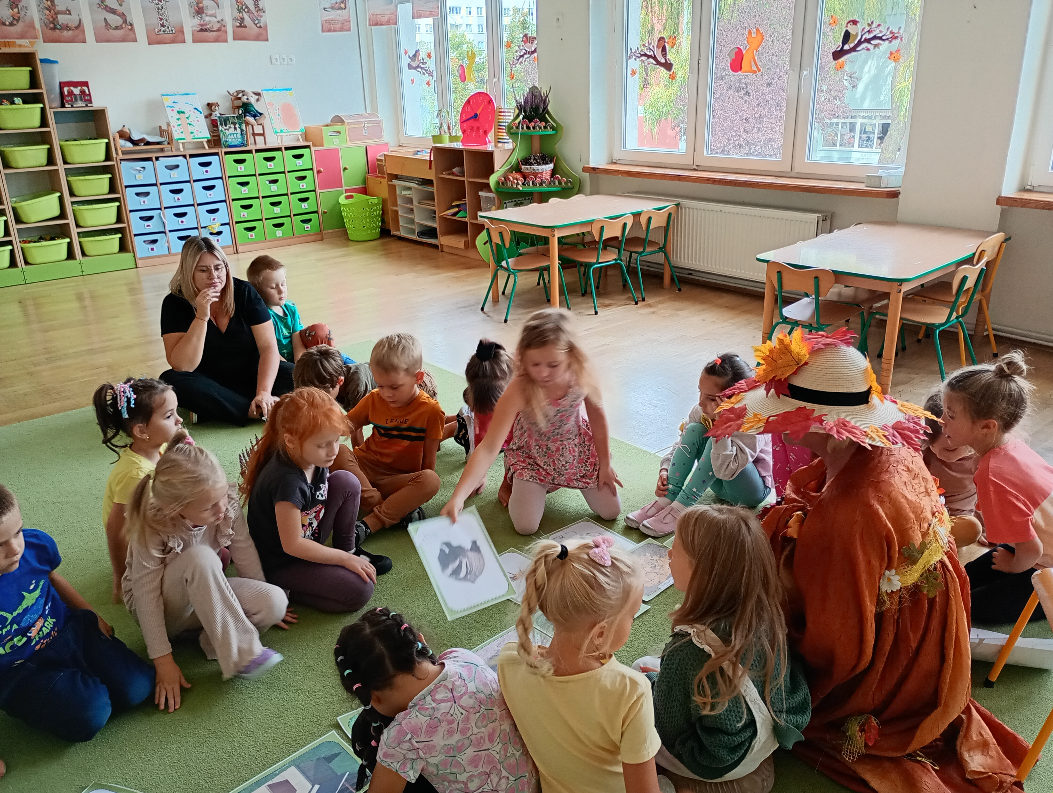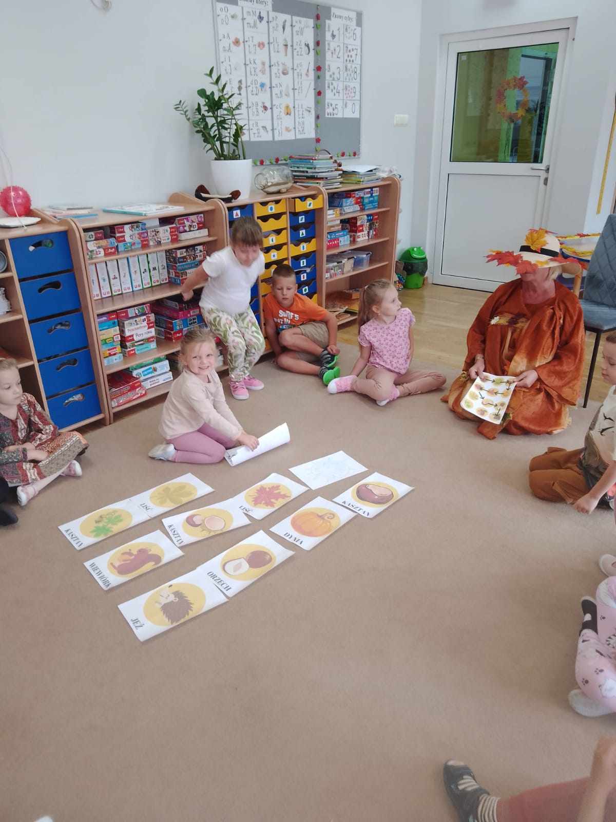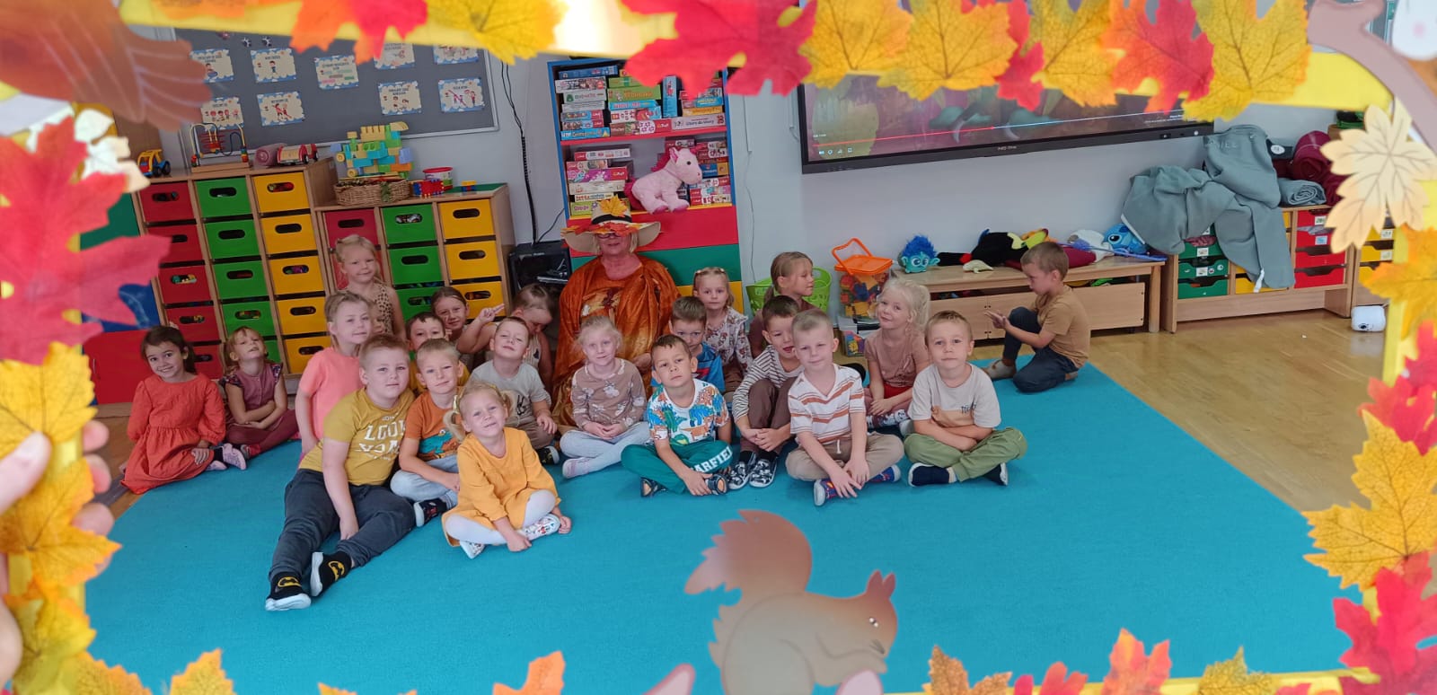 W naszym przedszkolu sezon jesienny uważamy za otwarty. Dnia 23 września oficjalnie powitaliśmy nową porę roku, która będzie panować przez najbliższe miesiące. Tego dnia w przedszkolu królowały kolory: brązowy, pomarańczowy i czerwony. Do wszystkich grup przedszkolnych zawitała Pani Jesień, której dzieci zaprezentowały wierszyki i piosenki, brały udział w zajęciach i zabawach o tematyce jesiennej, poprzez które zdobywały wiadomości o rozpoczynającej się porze roku. Dzieci miały okazję wykazać się wiedzą na temat nowej poru roku poprzez rozwiązywanie zagadek, rebusów. Z wielkim zaangażowaniem tworzyły również kolorowe jesienne prace plastyczne. Dzień ten był wprowadzeniem do tematyki związanej z jesienią. Przedszkolaki będą poszerzać swoją wiedzę, obserwować zmiany jakie przyniesie nam nowa pora roku podczas kolejnych zajęć, spacerów i wycieczek.