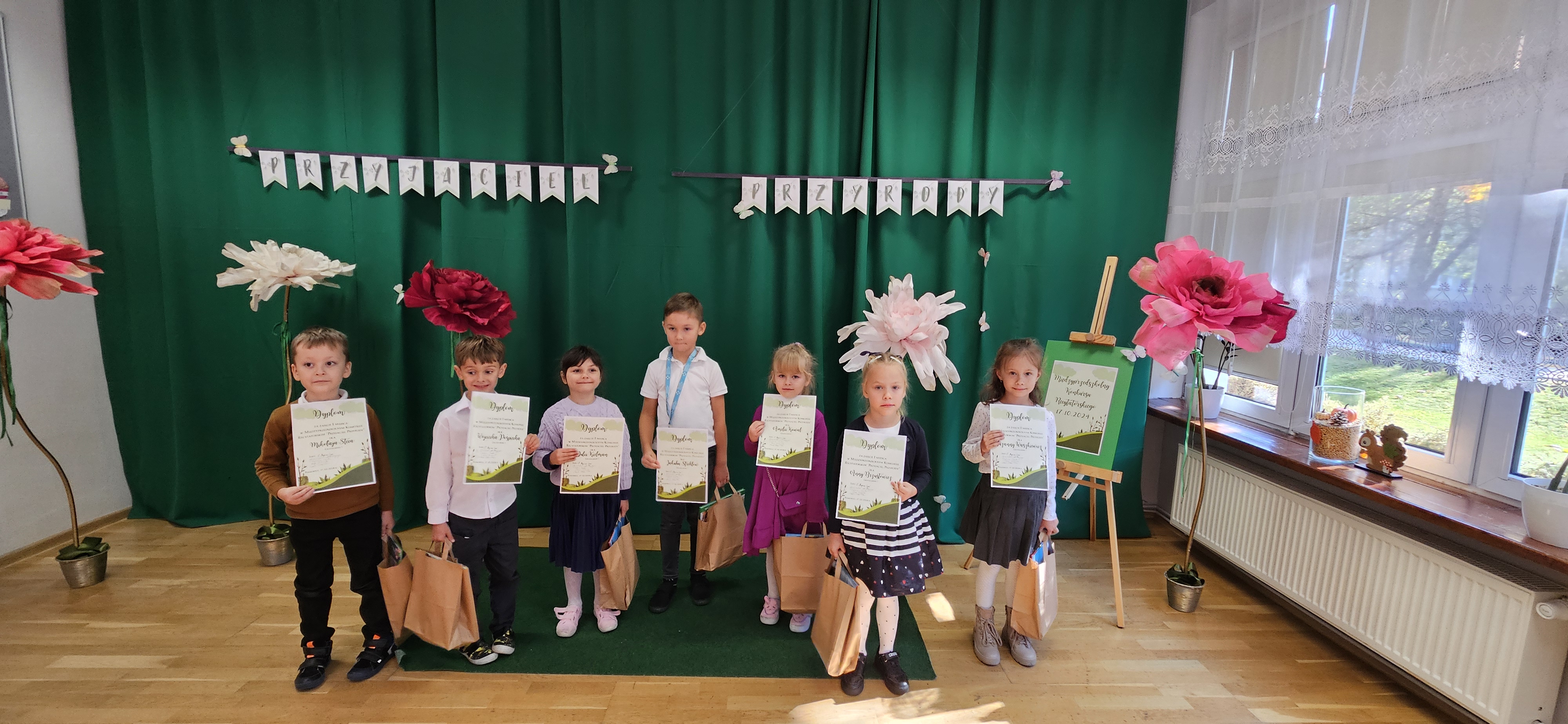 Dnia 17 października 2024 roku w naszym przedszkolu odbył się Międzyprzedszkolny Konkurs Recytatorski pt. Przyjaciel Przyrody w ramach Polkowickiego Festiwalu Drzewa, którego celem było zainteresowanie najmłodszych tematyką przyrodniczą i ekologiczną poprzez poezję, uwrażliwienie dzieci na zachowania proekologiczne poprzez poezje dziecięcą jak również doskonalenie wyrazistej mowy, rozwijanie pamięci, wyrabianie odwagi i śmiałości. Mali artyści biorący udział w konkursie z wielkim zapałem i przejęciem zaprezentowali swoje umiejętności recytatorskie i aktorskie. Zostali oni nagrodzeni gromkimi brawami. Wszyscy uczestnicy otrzymali dyplomy oraz nagrody.