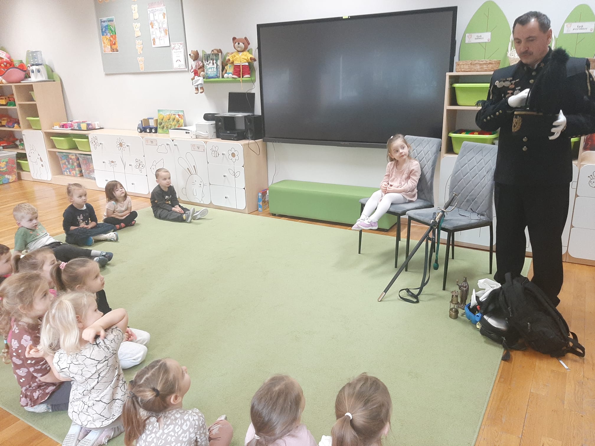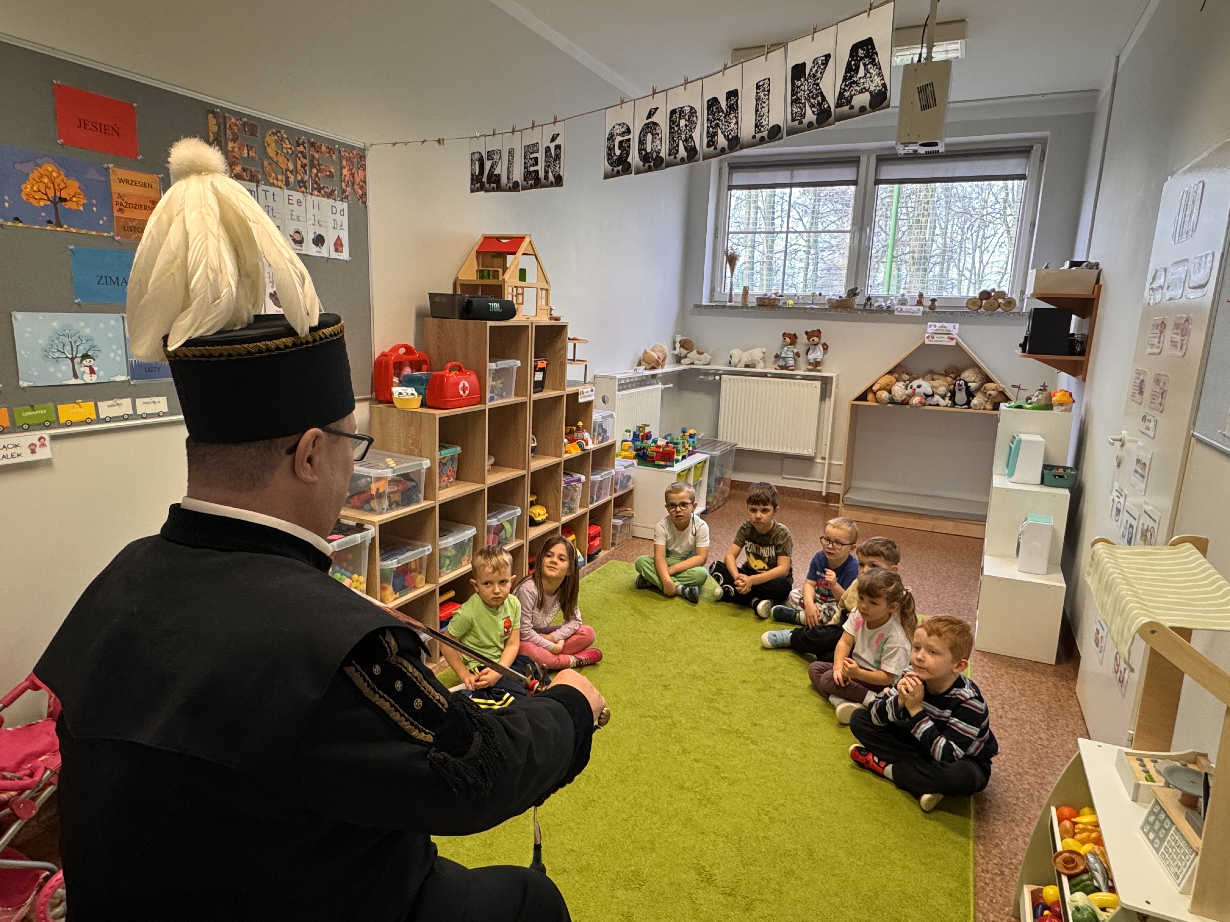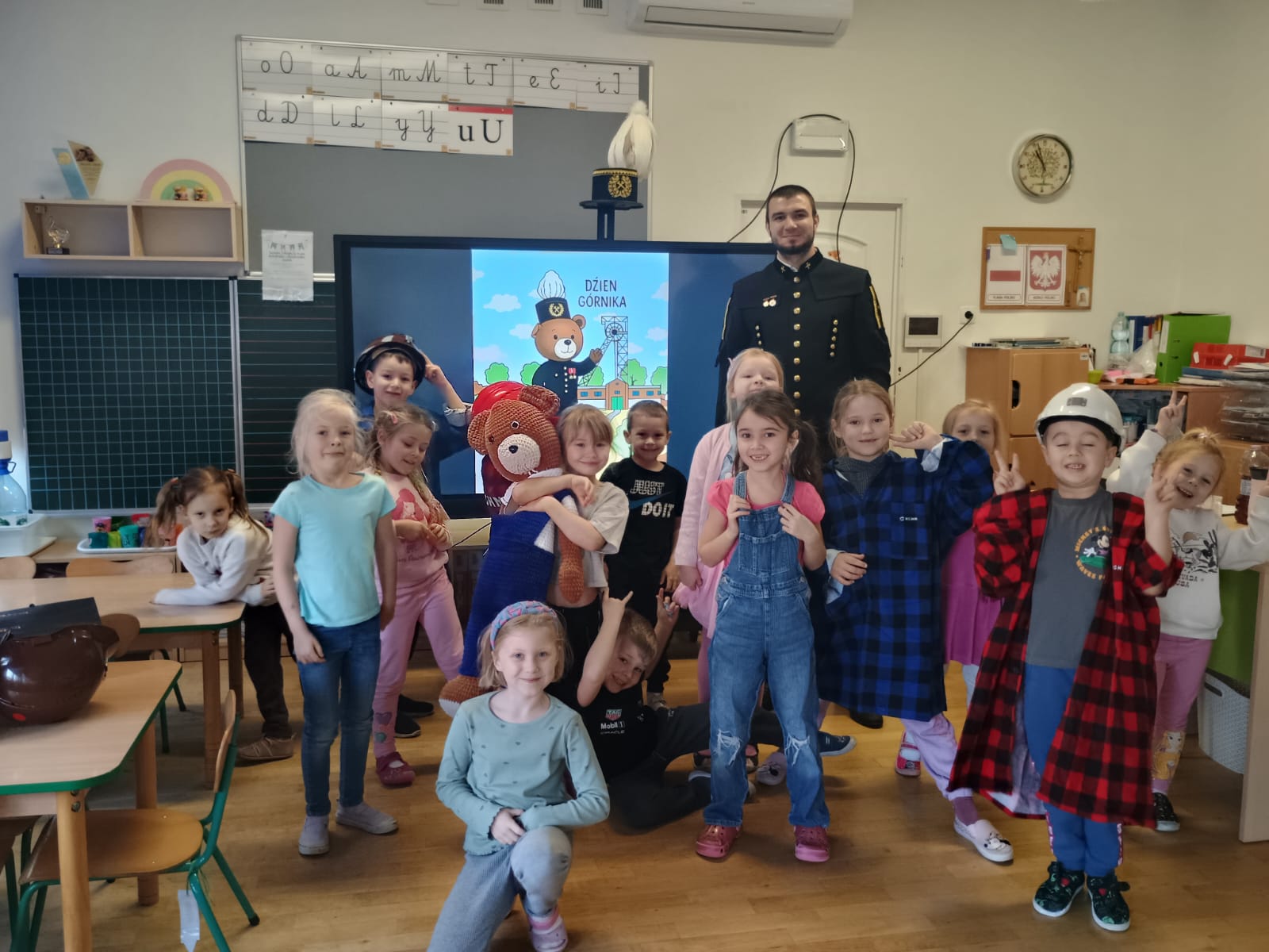 4 grudnia obchodziliśmy Dzień Górnika. Z tej okazji gościliśmy w naszym przedszkolu górników. Podczas spotkania dzieci miały okazję wzbogacić swoje wiadomości na temat ciężkiej, czasami niebezpiecznej pracy górnika. Dowiedziały się, w jaki sposób wydobywana jest w naszych kopalniach ruda miedzi oraz inne minerały . Górnicy przybyli do nas w stroju galowym, dlatego dzieci miały okazję przyjrzeć się z bliska mundurowi, czapce górniczej, odznaczeniom, które górnicy otrzymują za długoletnią, ciężką pracę w kopalni. Panowie górnicy wyjaśnili dzieciom, jakie znaczenie mają kolory pióropuszy na czapce i kto je nosi, miały również możliwość założenia czapki górniczej - czako. Przedszkolaki chętnie i z zaciekawieniem wysłuchały opowieści. W trakcie wizyty zadawały wiele pytań, na które goście chętnie odpowiadali.