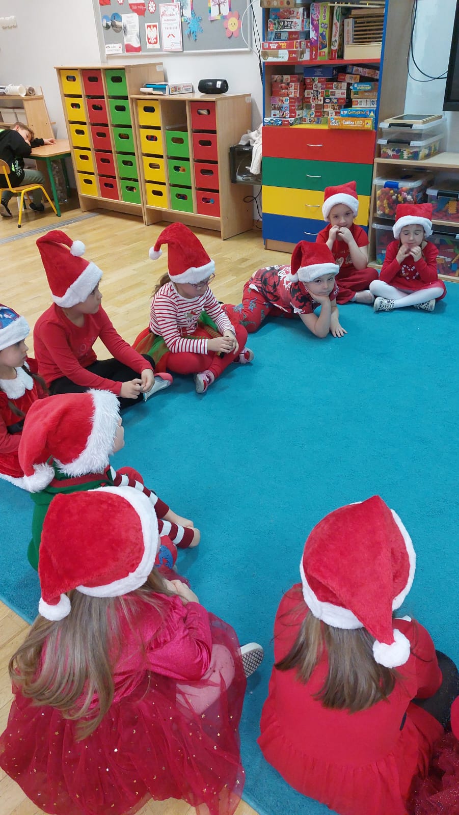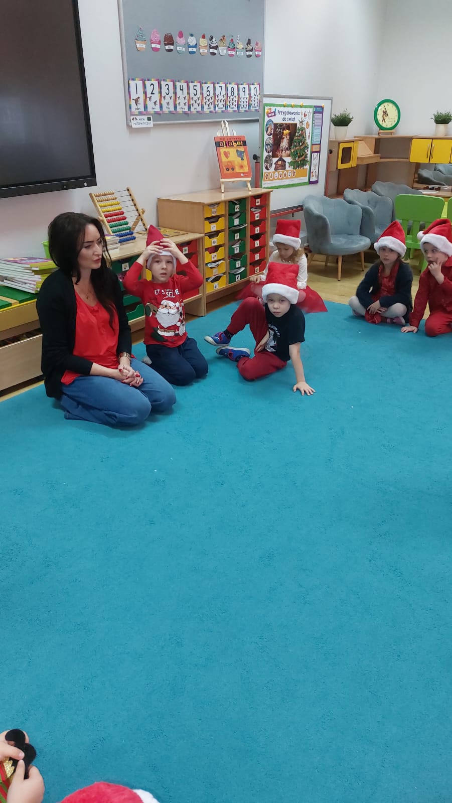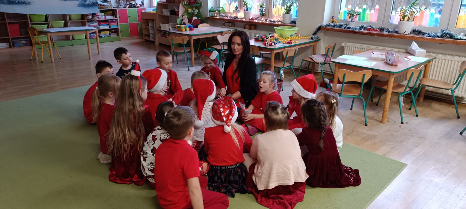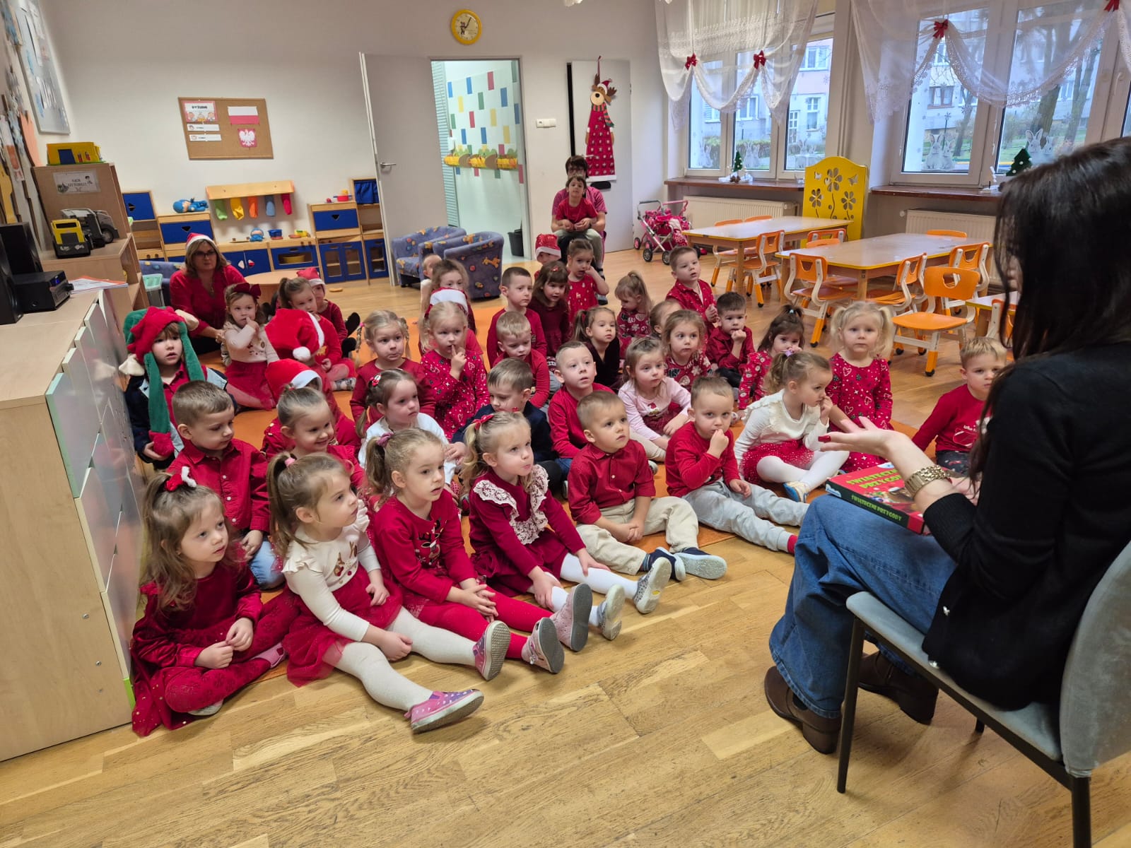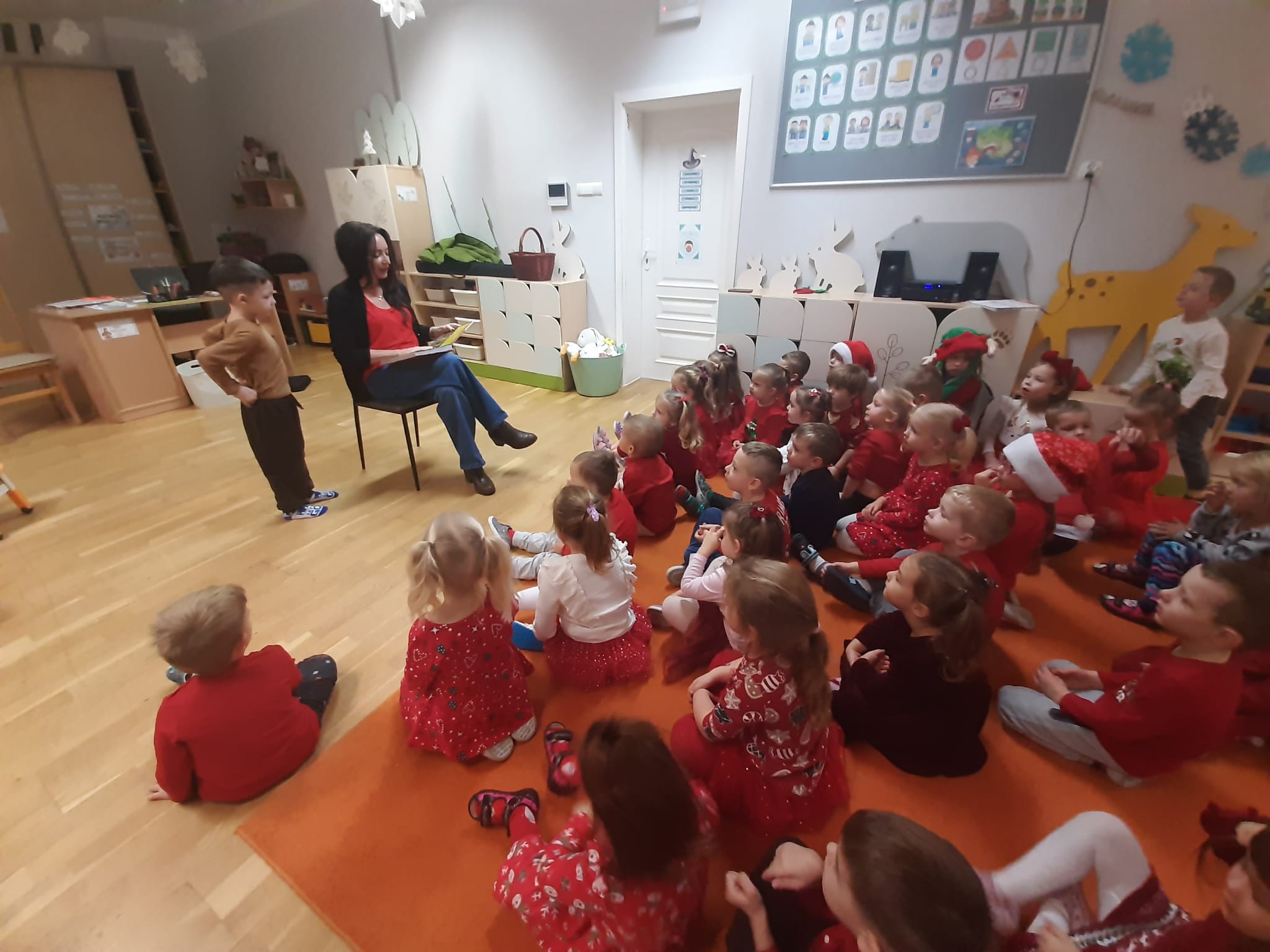 W trakcie wizyty pani przeczytała dzieciom świąteczną bajkę, która wprowadziła atmosferę życzliwości i dzielenia się dobrem. Przedszkolaki chętnie słuchały i aktywnie uczestniczyły w rozmowie na temat pomagania innym.