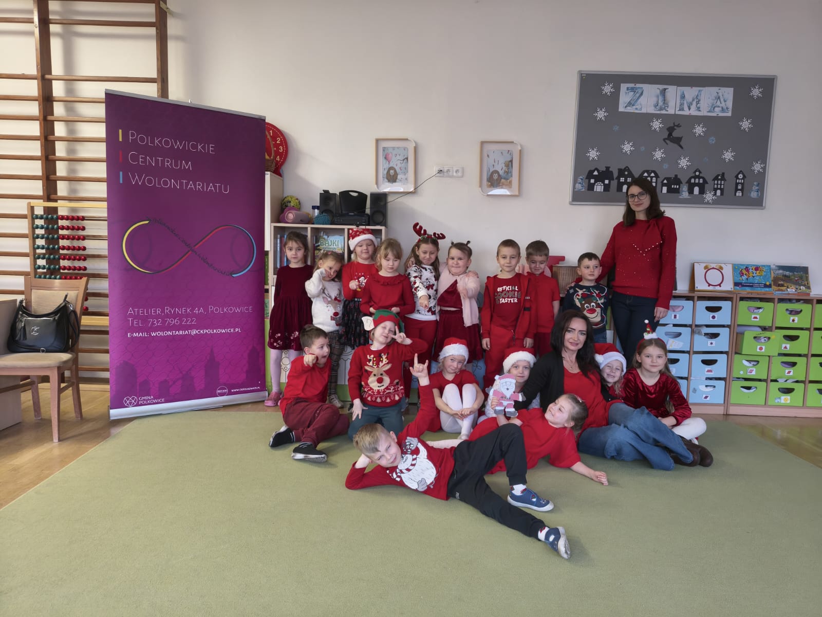 Dnia 05.12.2025 do naszego przedszkola przybyła pani Ewelina z Polkowickiego Centrum Wolontariatu. Podczas spotkań opowiedziała dzieciom, czym jest wolontariat oraz na czym polega bezinteresowna pomoc innym. W przystępny, zrozumiały sposób zachęcała przedszkolaków do podejmowania drobnych działań dobroczynnych oraz udziału w akcjach charytatywnych organizowanych w placówce.