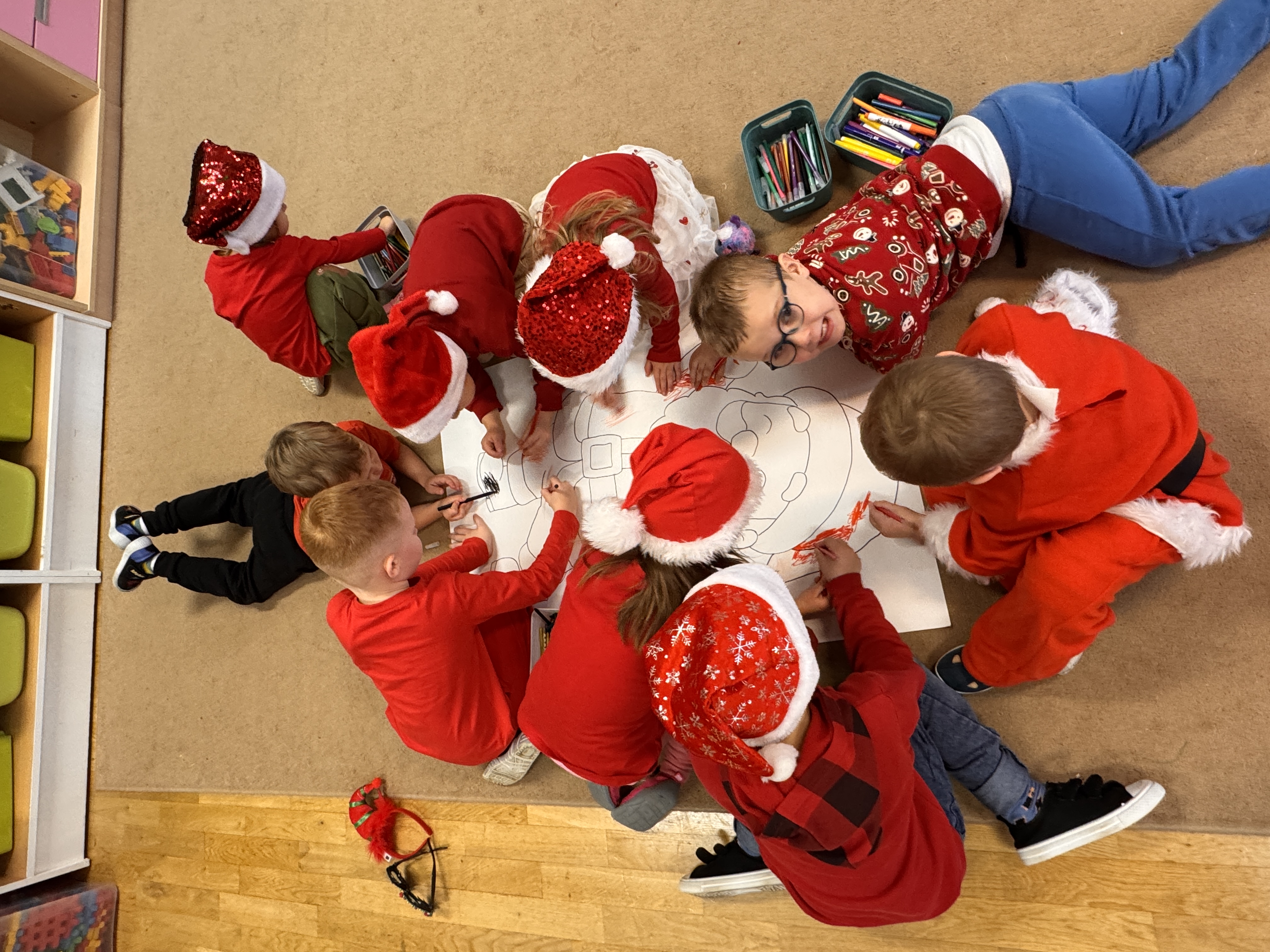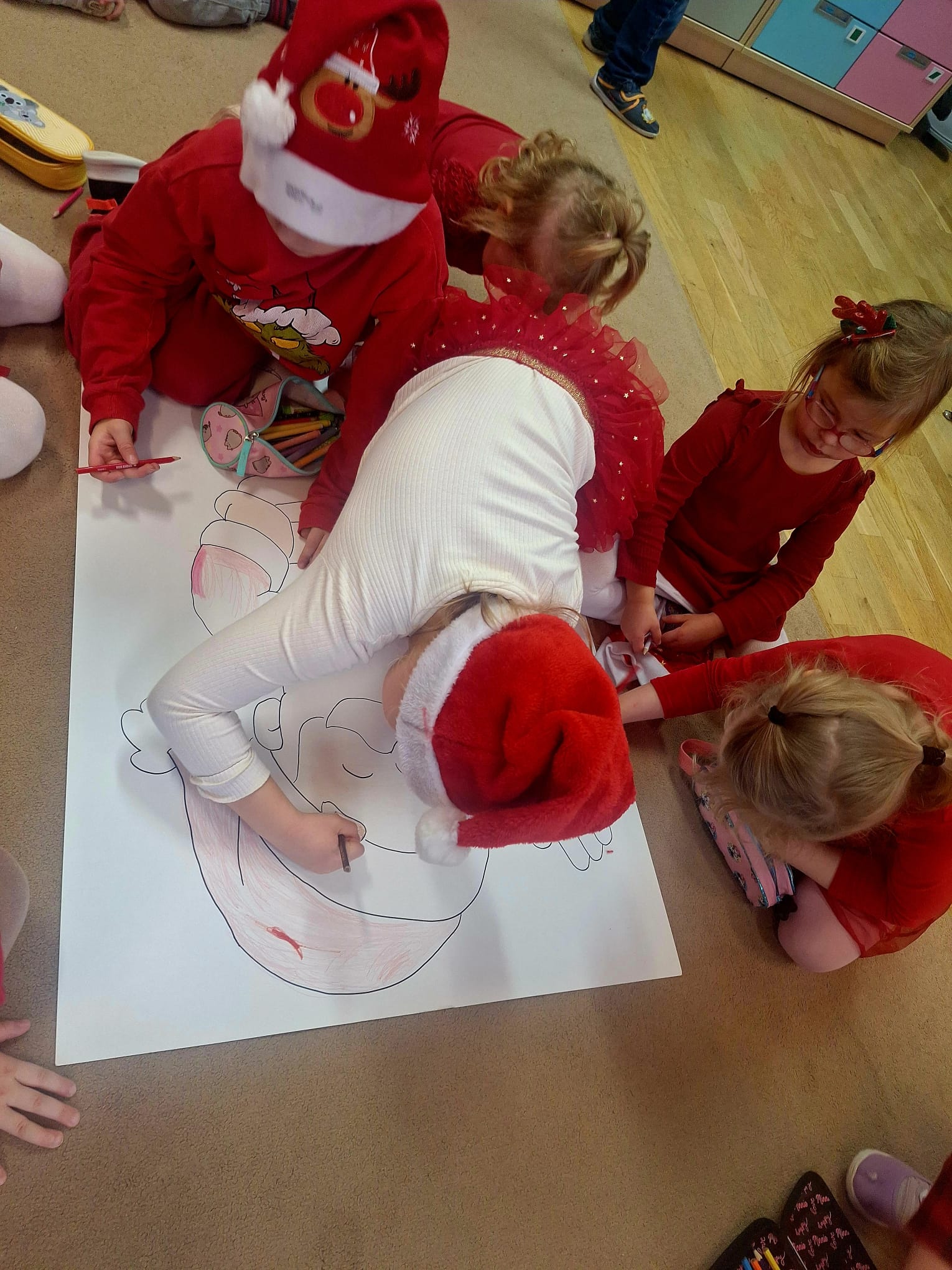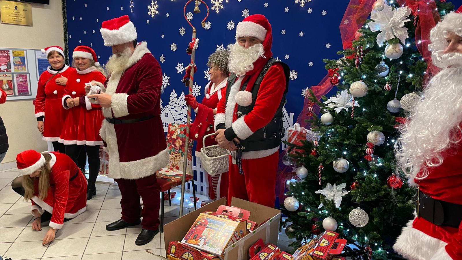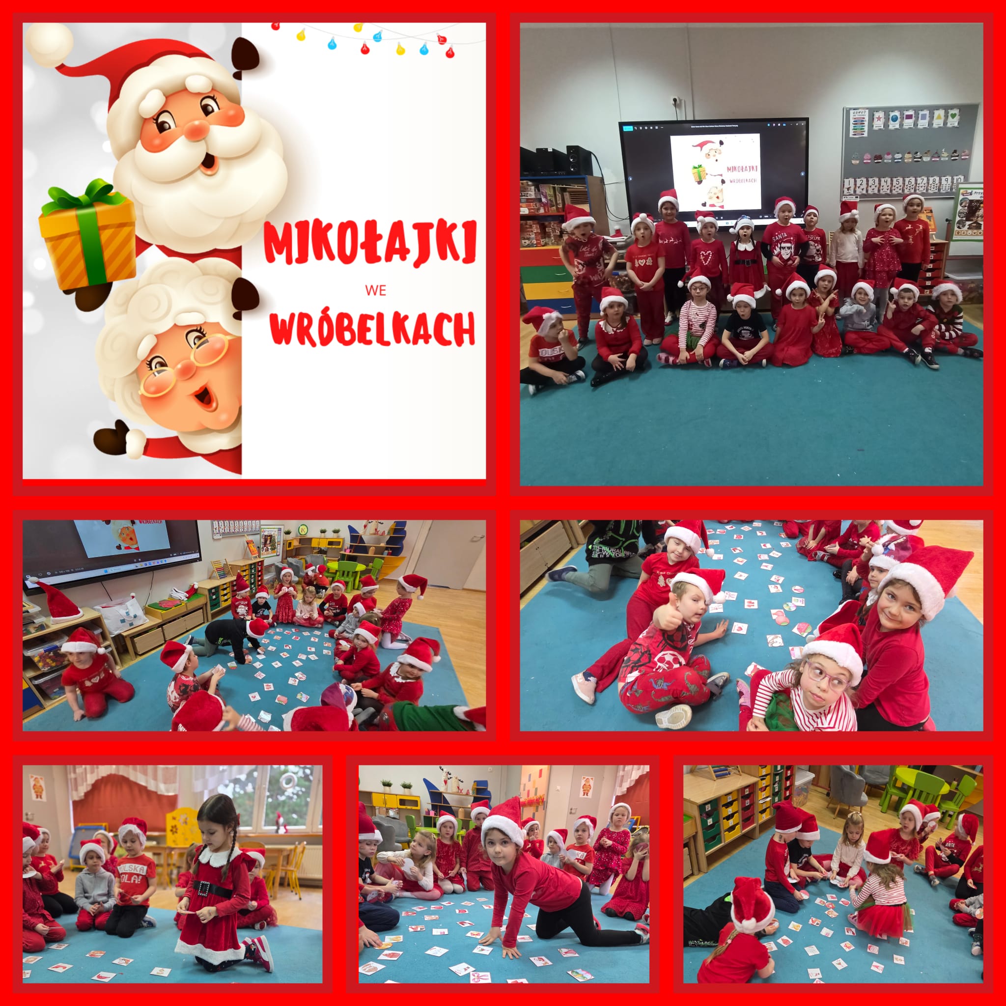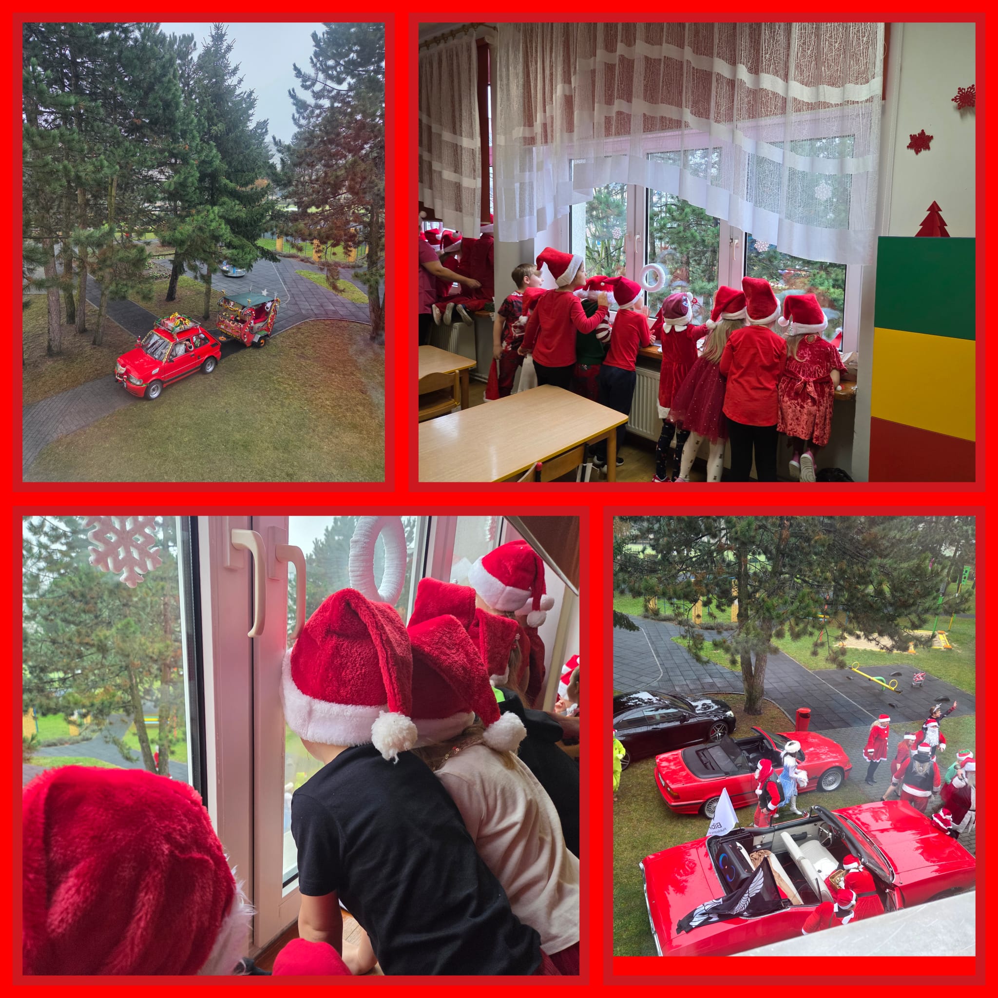 Od rana wszyscy z niecierpliwością spoglądaliśmy za okno i wypatrywaliśmy pojazdów Mikołaja. Nagle! Trąbienie klaksonów i pojawił się świąteczny zaprzęg Mikołaja. Z uśmiechem przywitaliśmy Mikołaja, jego pomocników, a nawet Grincha. Mikołaj zapytał, czy byliśmy grzeczni. Oczywiście, że tak! Każda z grup zaśpiewała piosenkę, a Mikołaj wręczył nam piękne prezenty.