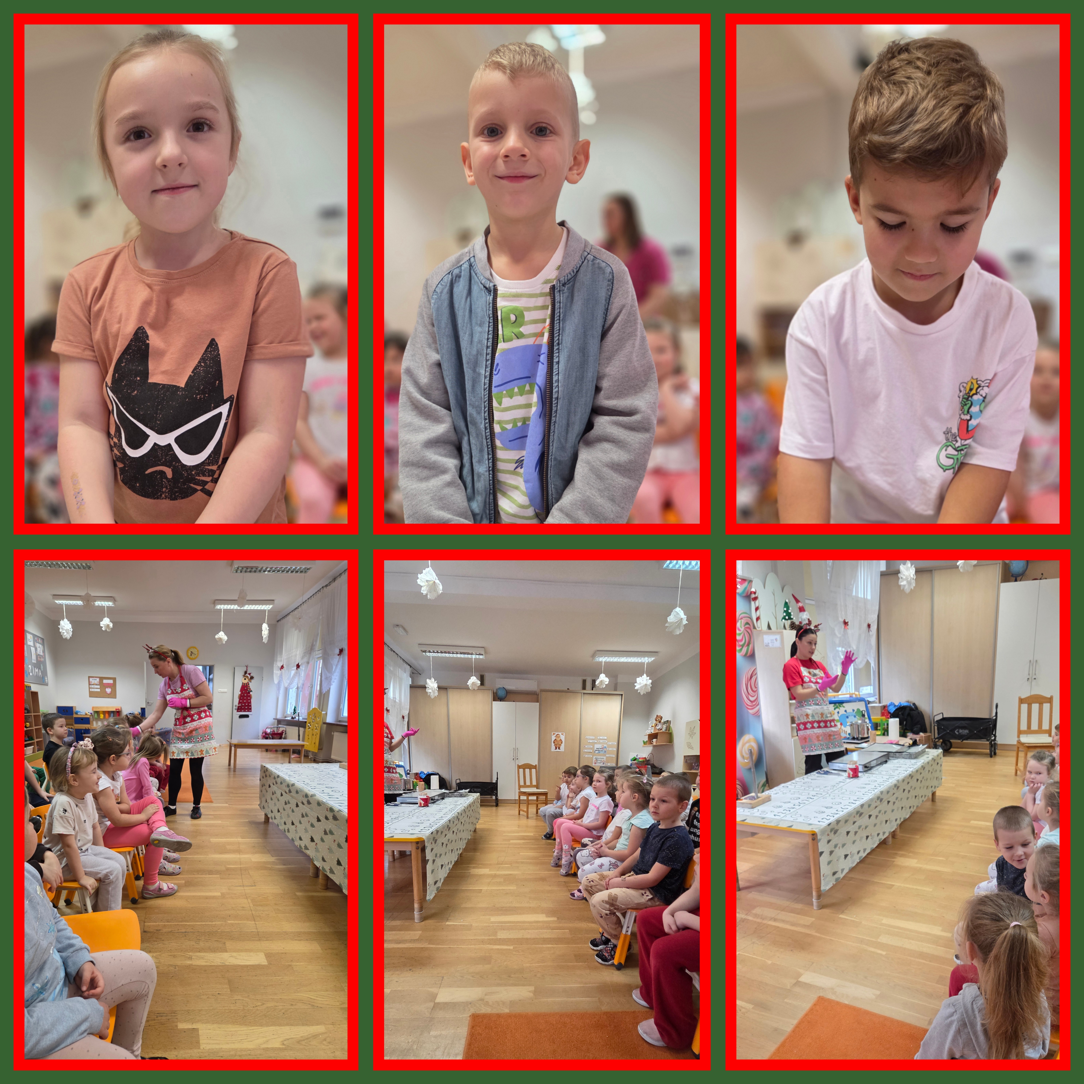 Dnia 08.12.2025 odbyły się warsztaty cukiernicze dla dzieci z grupy Wróbelki, podczas których uczestnicy mieli okazję samodzielnie wykonać własne, świąteczne lizaki oraz poznać cały proces ich powstawania. Zajęcia zostały przeprowadzone w formie zabawy połączonej z nauką, co pozwoliło dzieciom aktywnie i twórczo spędzić czas. Na początku prowadzący w przystępny i bezpieczny sposób omówił składniki potrzebne do wykonania lizaków. Dzieci dowiedziały się, że podstawą słodyczy jest cukier, woda oraz naturalne barwniki i aromaty. Każde dziecko mogło zobaczyć wszystkie składniki, a także powąchać różne zapachy, aby wybrać swój ulubiony smak lizaka.