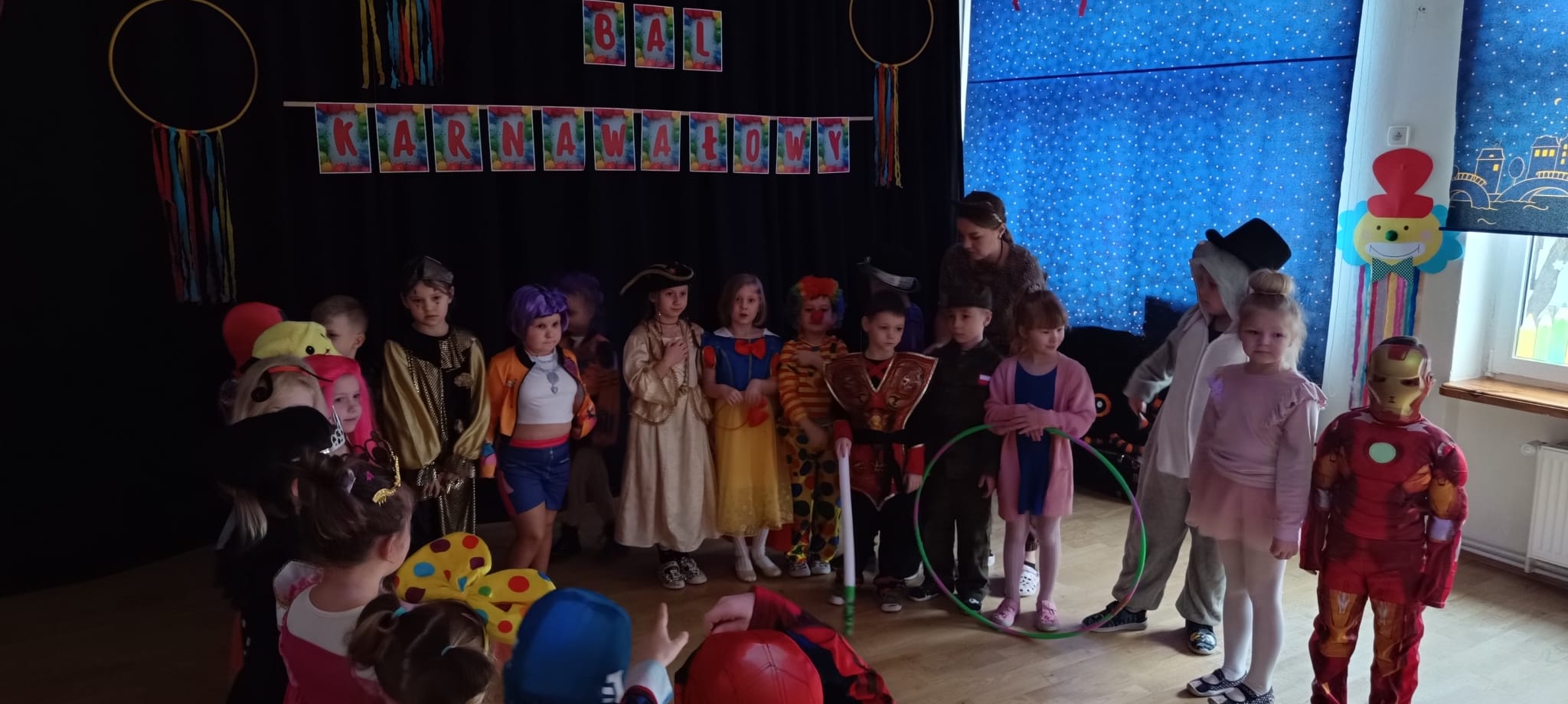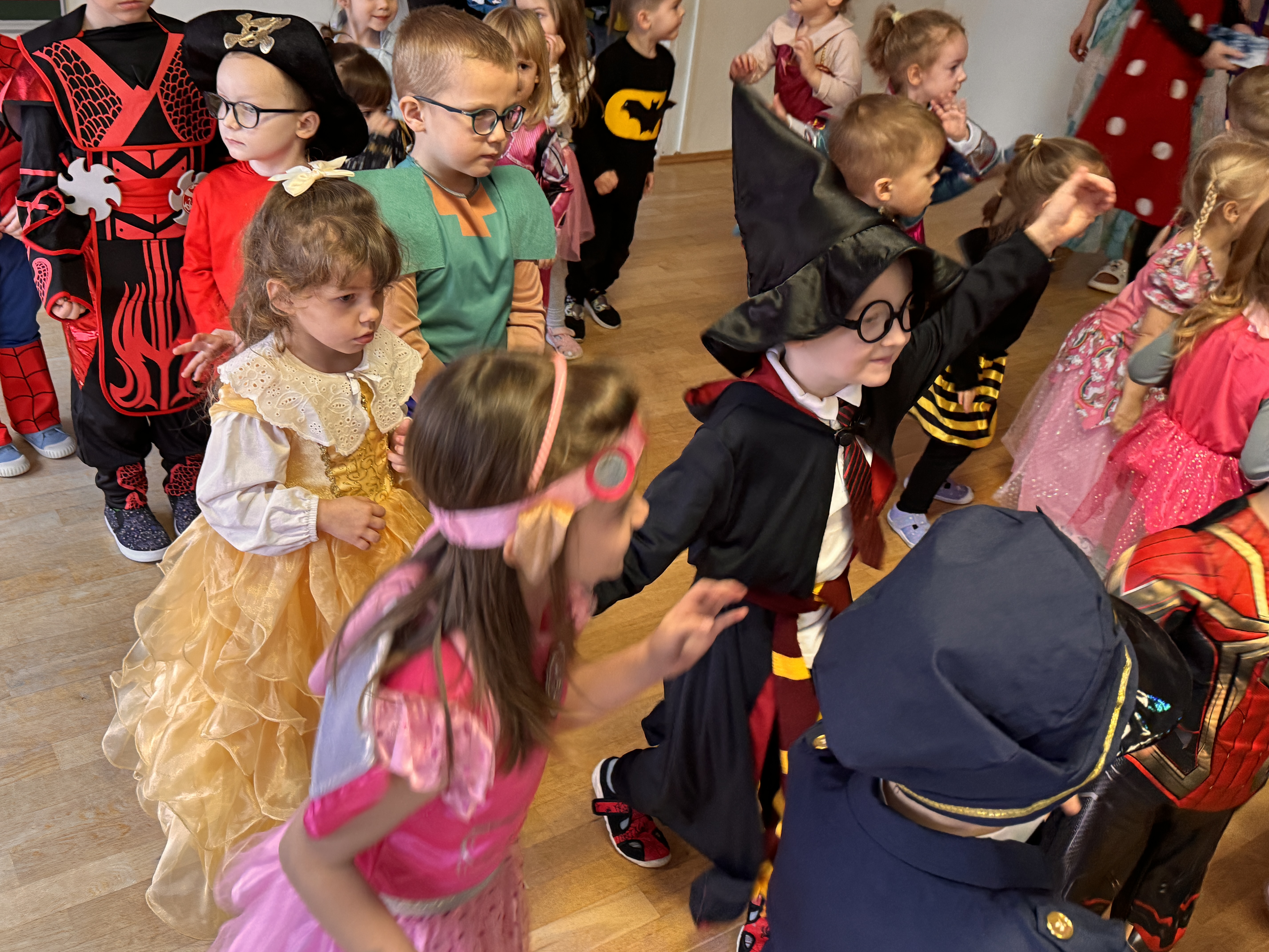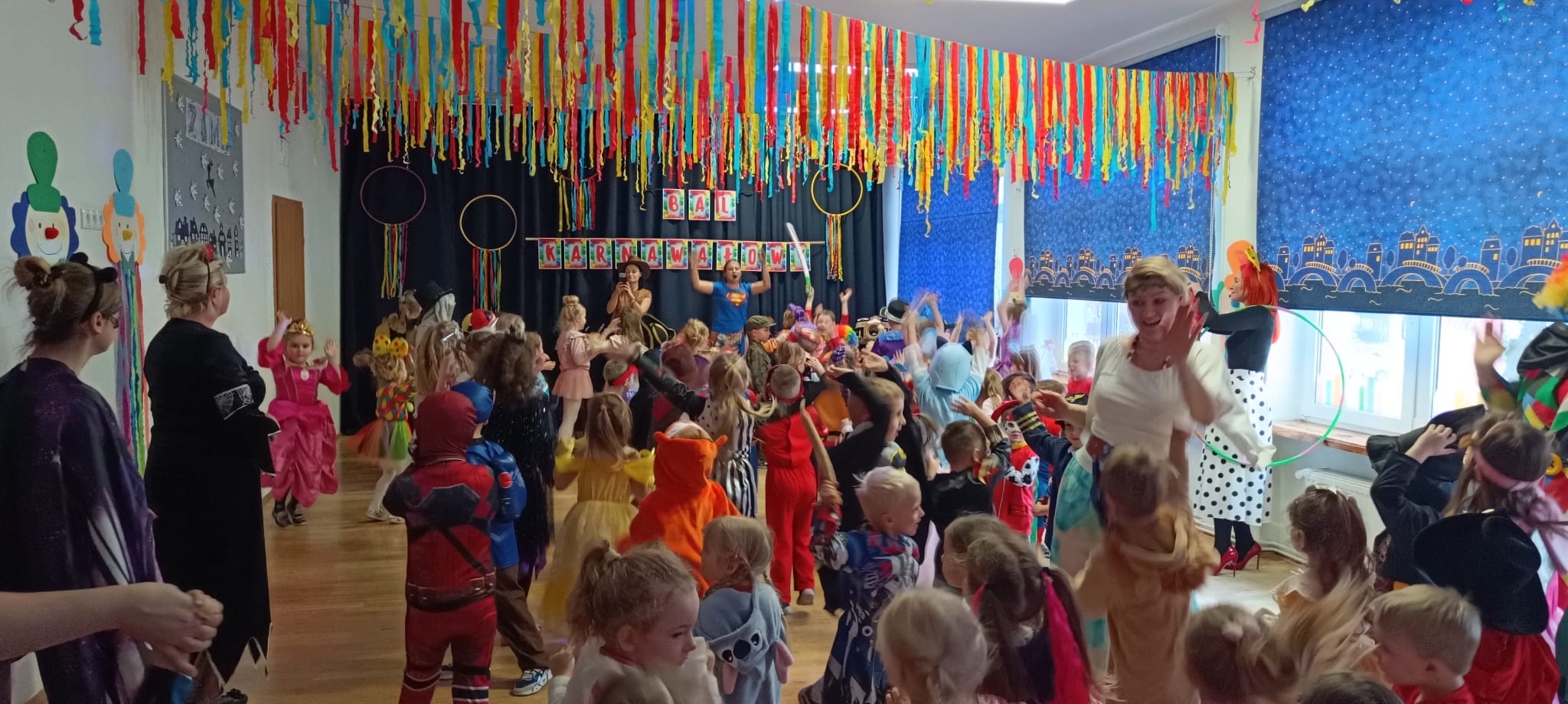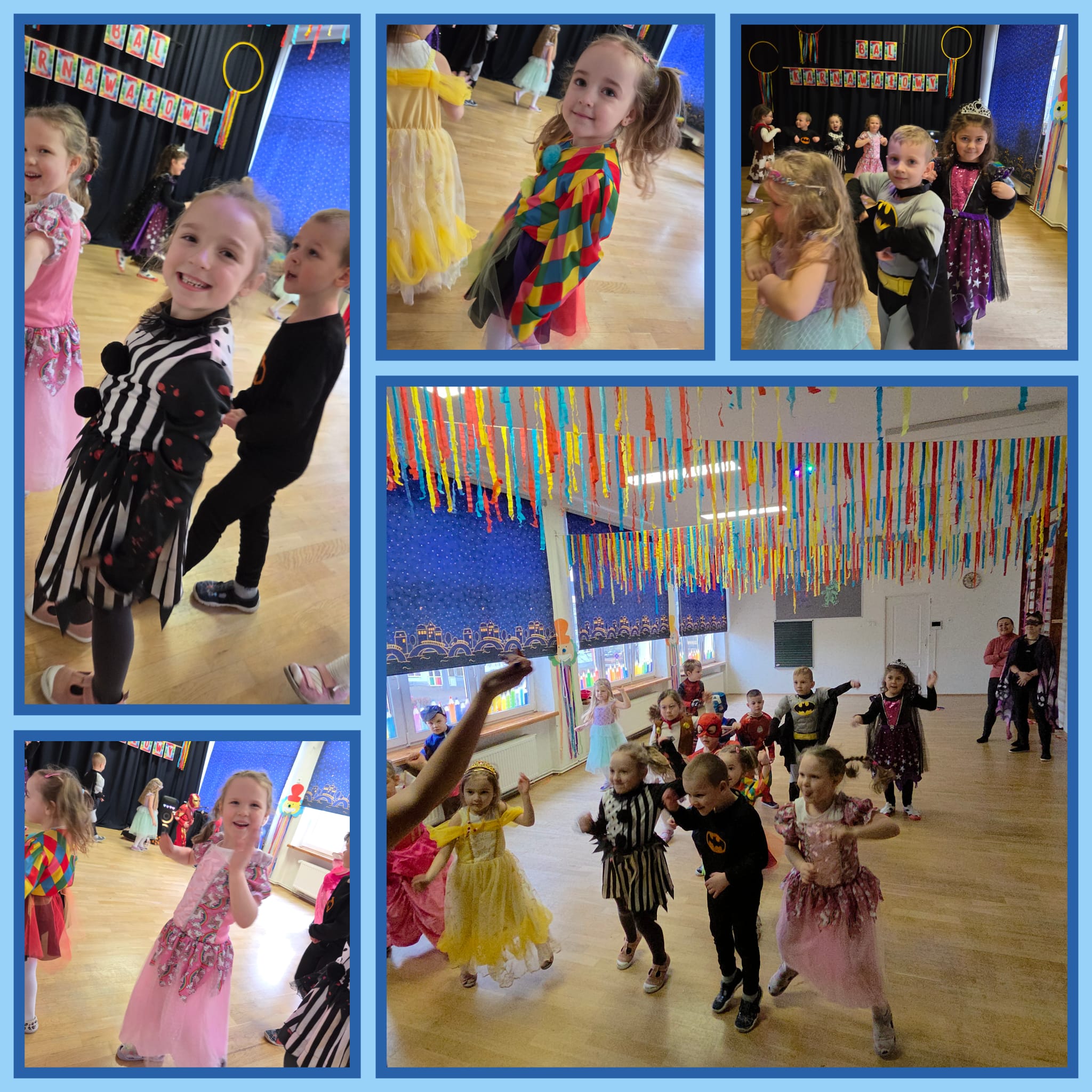 Przedszkolaki przybyły na bal w pięknych i pomysłowych strojach, wcielając się w postacie z bajek, zwierzęta, bohaterów filmowych oraz ulubione zawody. Kolorowe dekoracje i muzyka wprowadziły wszystkich w karnawałowy nastrój.