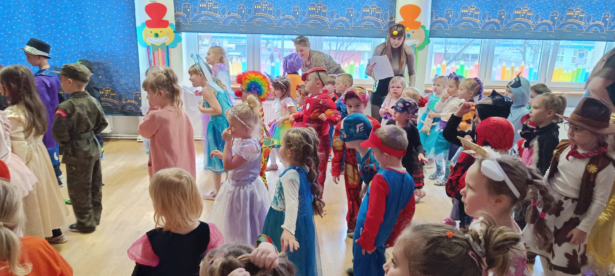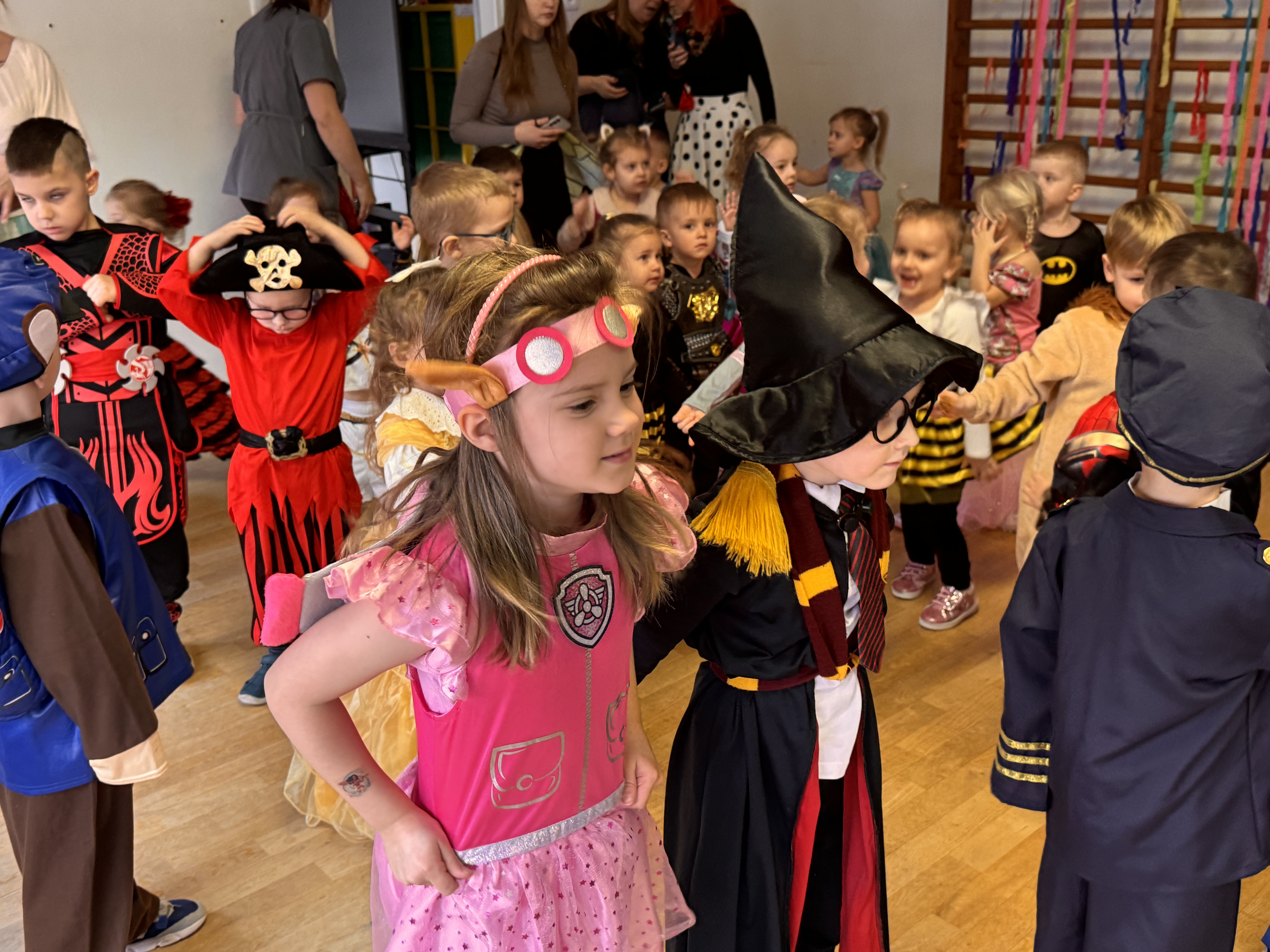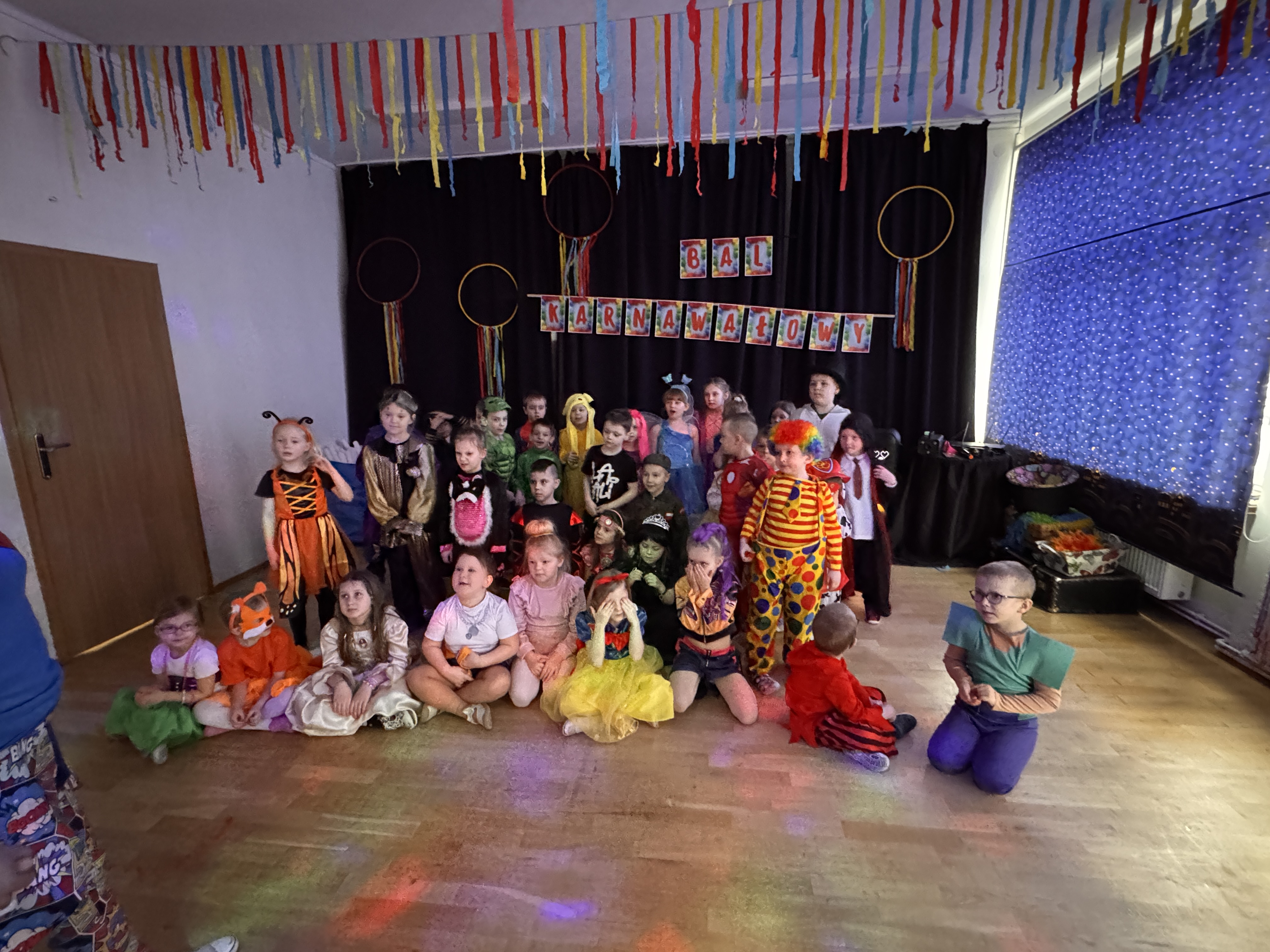Przedszkolaki przybyły na bal w pięknych i pomysłowych strojach, wcielając się w postacie z bajek, zwierzęta, bohaterów filmowych oraz ulubione zawody. Kolorowe dekoracje i muzyka wprowadziły wszystkich w karnawałowy nastrój.