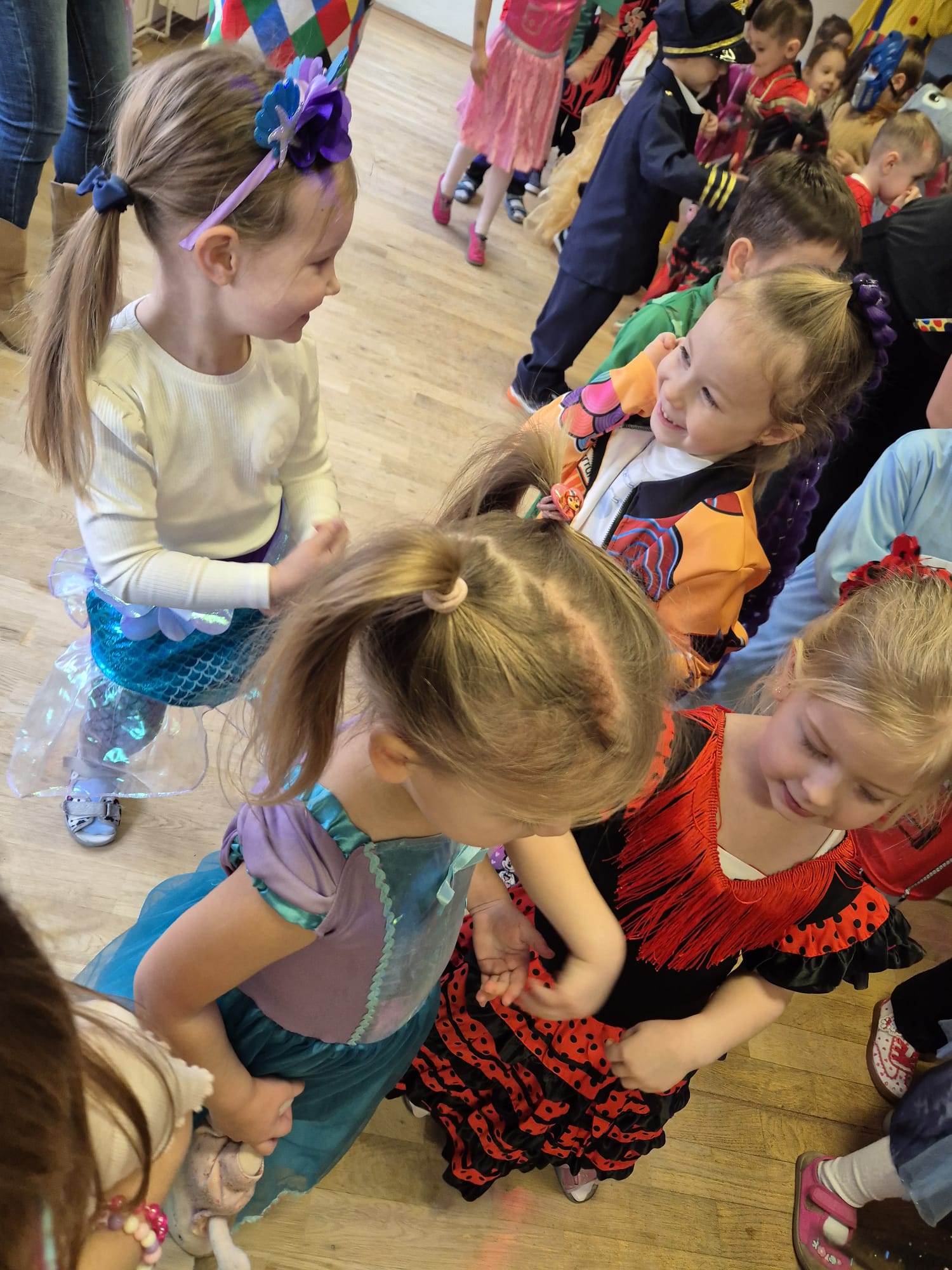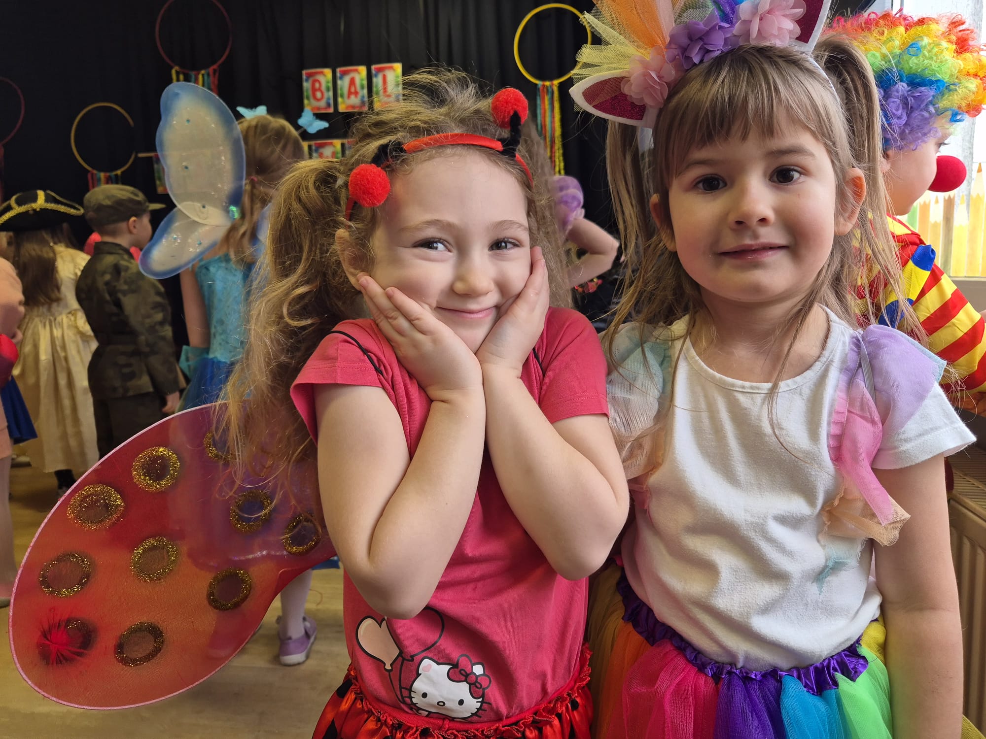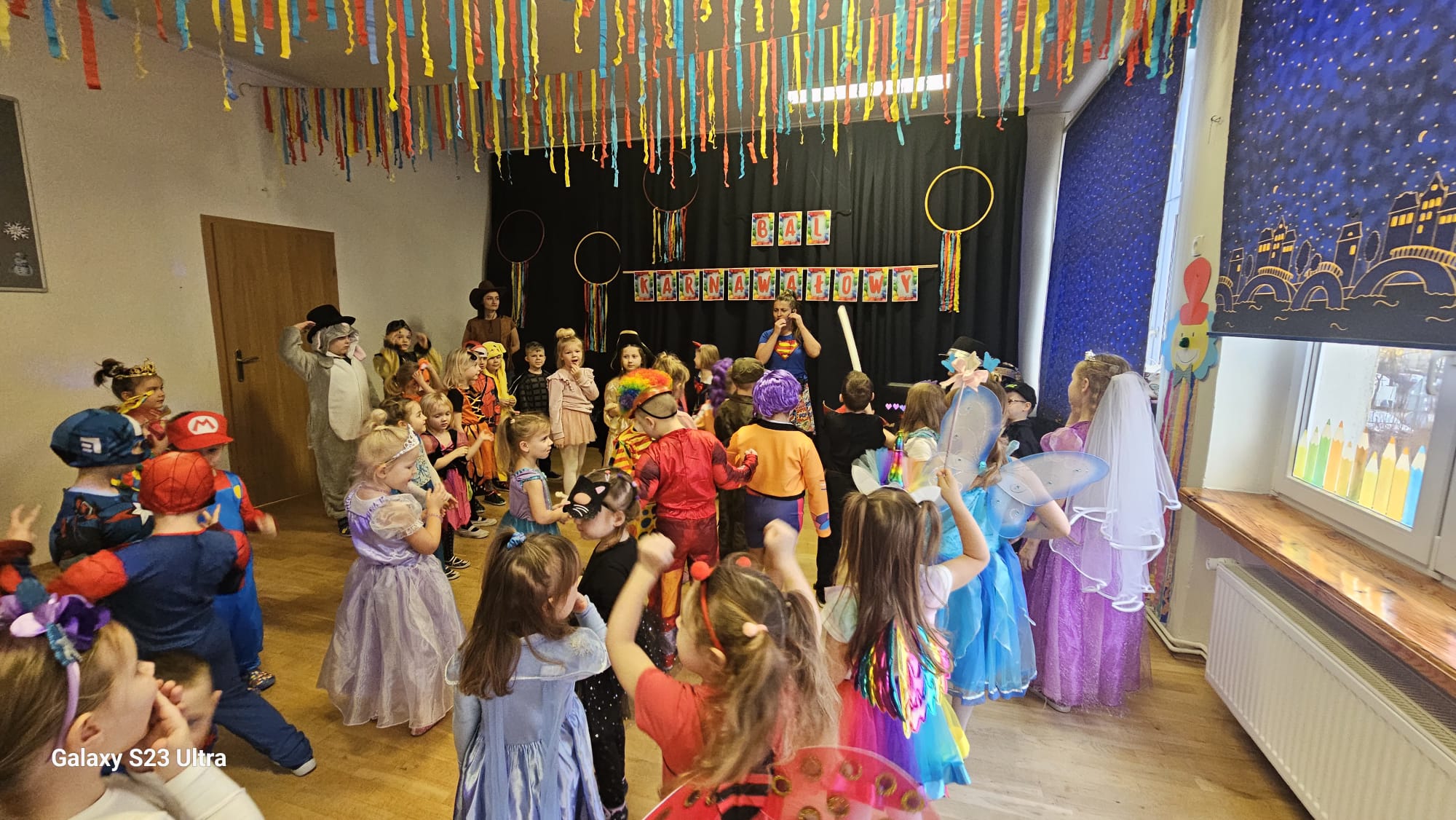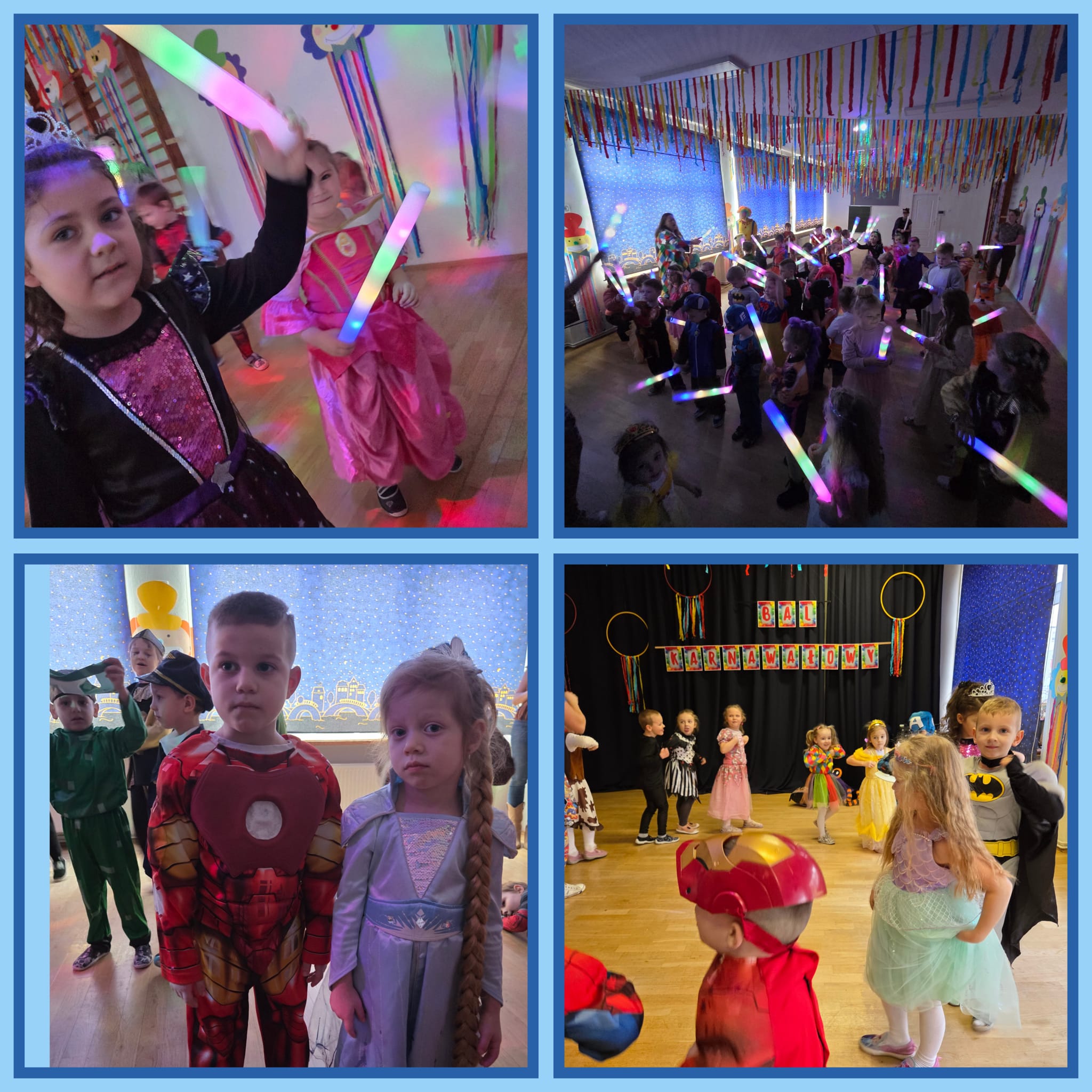 Przedszkolaki przybyły na bal w pięknych i pomysłowych strojach, wcielając się w postacie z bajek, zwierzęta, bohaterów filmowych oraz ulubione zawody. Kolorowe dekoracje i muzyka wprowadziły wszystkich w karnawałowy nastrój.