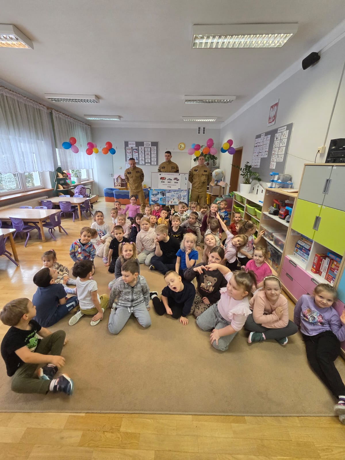W realizacji zadań pomogli nam goście – przedstawiciele służb mundurowych: Policji, Straży Pożarnej oraz Straży Miejskiej. Goście w przystępny i ciekawy sposób przybliżyli dzieciom zasady bezpiecznego zachowania, opowiedzieli o swojej pracy oraz zaprezentowali elementy umundurowania i sprzętu służbowego. Spotkania wzbudziły duże zainteresowanie i radość wśród przedszkolaków.