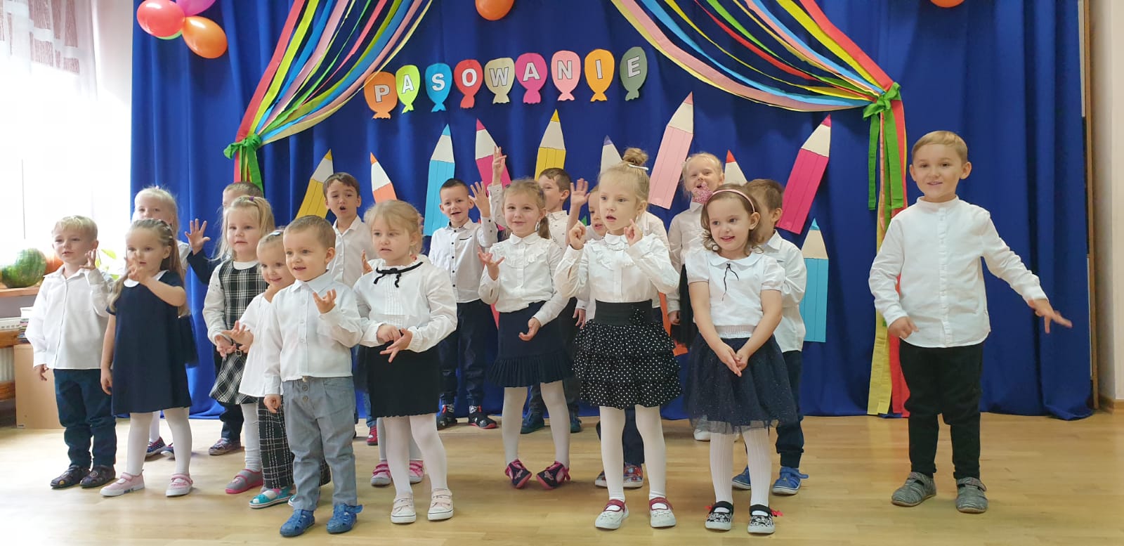 3 października w grupie Pieski odbyła się niezwykle ważna uroczystość – Pasowanie na Przedszkolaka i Starszaka. Dzieci w obecności rodziców oraz bliskich zaprezentowały program artystyczny, podczas którego recytowały wiersze, śpiewały piosenki oraz zatańczyły taniec. Następnie złożyły uroczyste ślubowanie, a Pani Dyrektor dokonała pasowania symbolicznym ołówkiem. Przedszkolaki otrzymały dyplomy, gratulacje i upominki w postaci książek. Przy wspólnym stole wszyscy zajadali się pysznym tortem oraz innymi słodkościami przygotowanymi przez mamy. Były to chwile pełne wrażeń, które na pewno dzieci i rodzice będą długo wspominać.