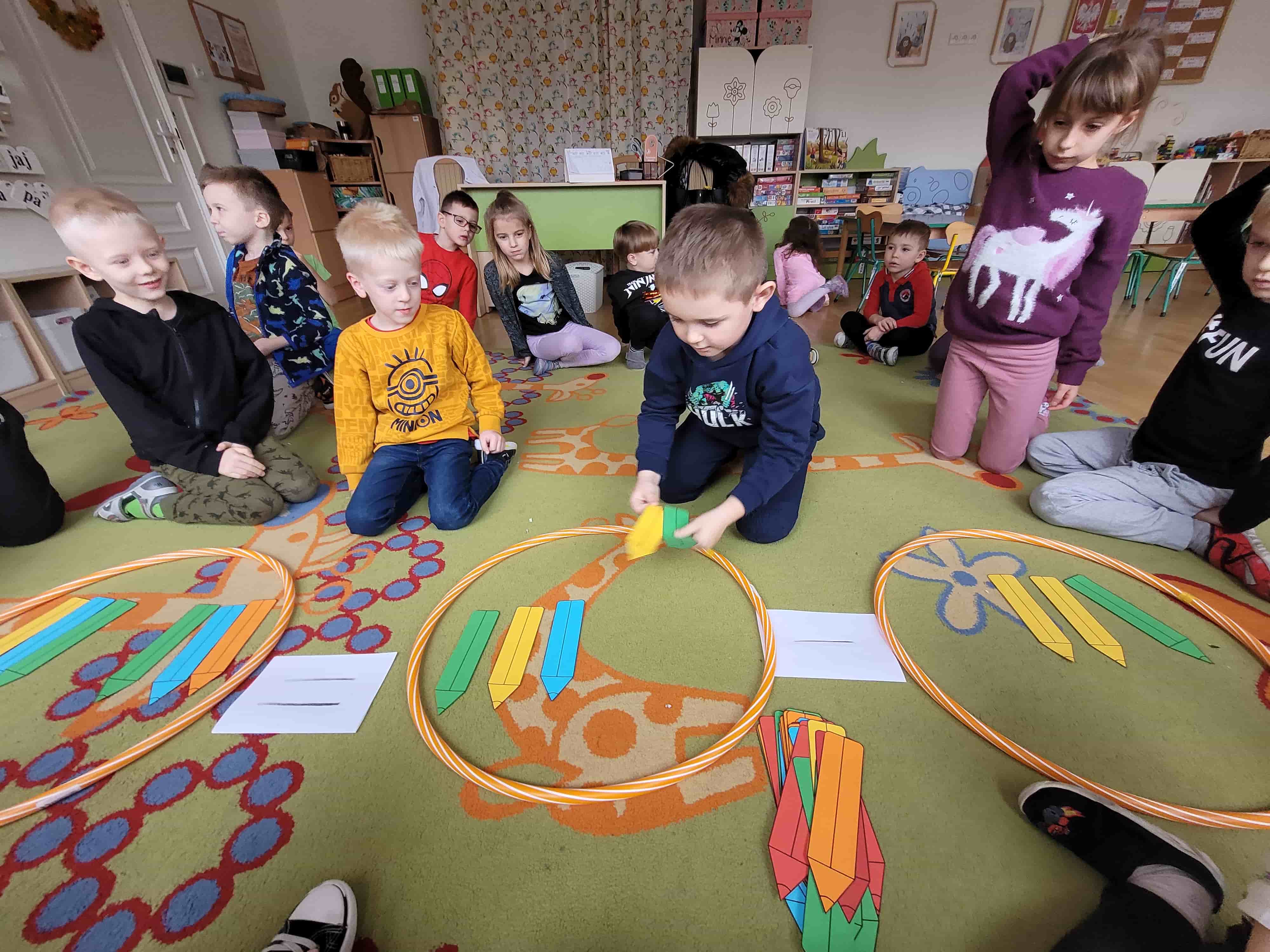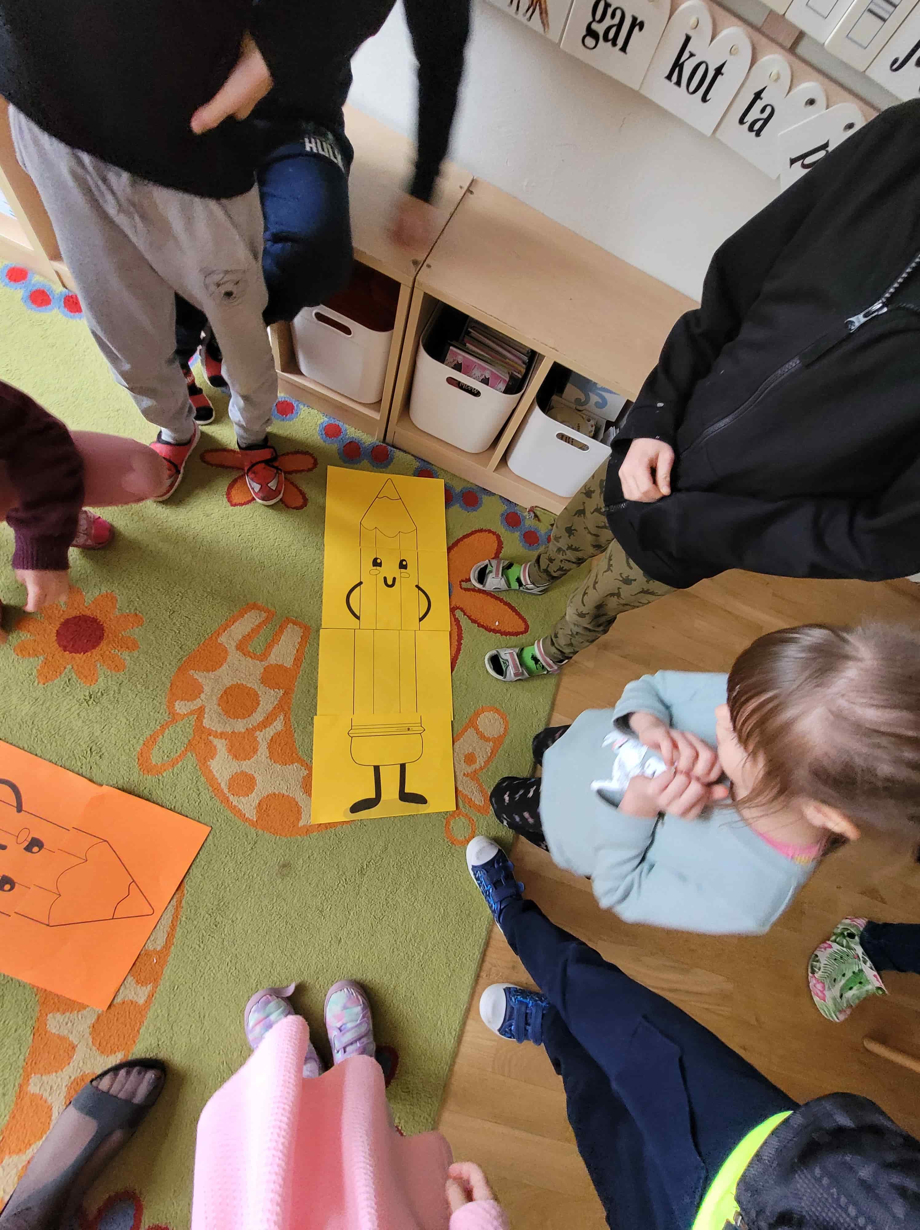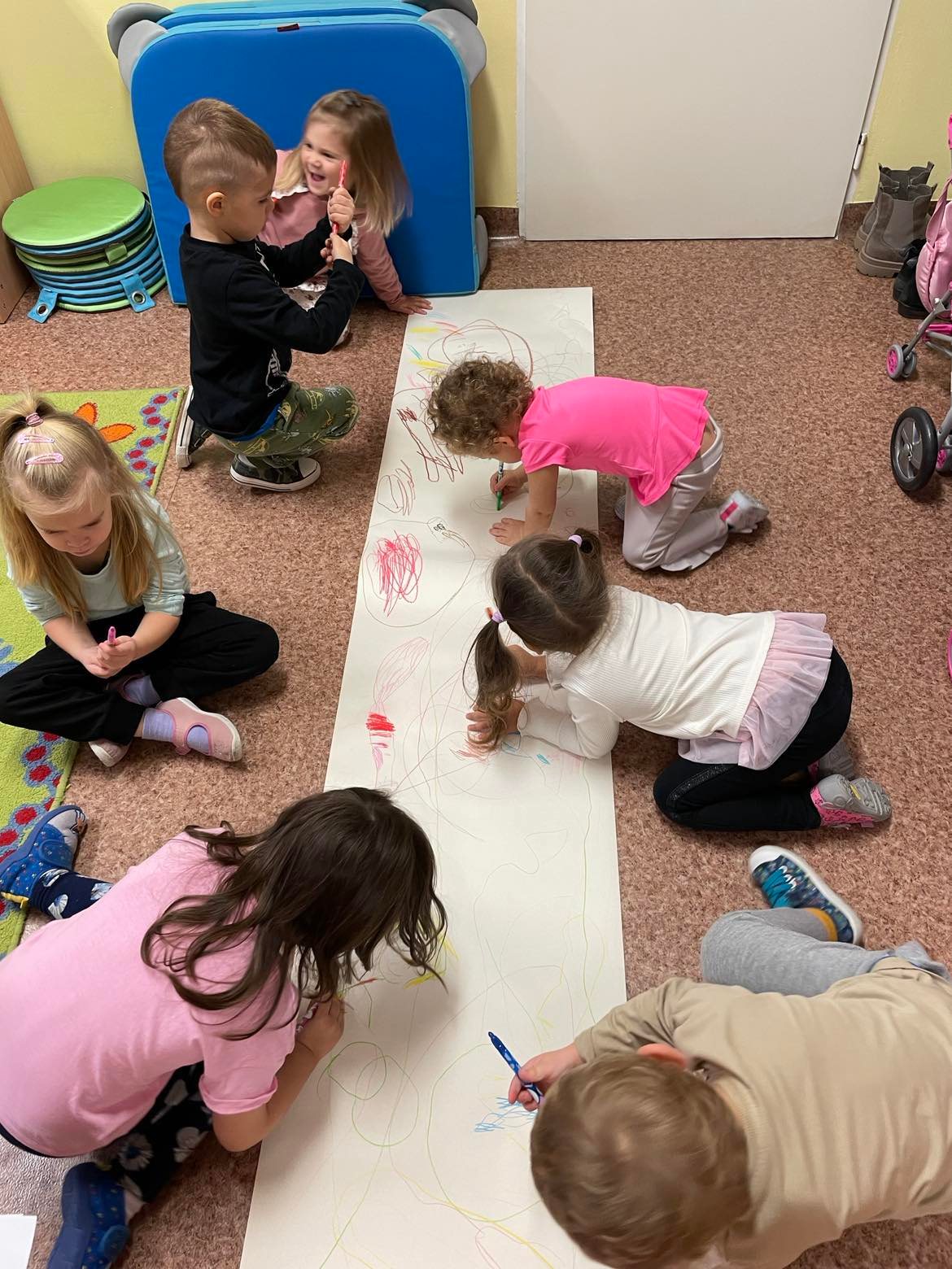 Z tej okazji w grupach Wróbelki i Wiewiórki odbywały się zabawy z kredkami w roli głównej. Przedszkolaki słuchały opowiadań, których bohaterami były kredki, poznały ich rodzaje oraz obejrzały krótki film o tym, jak są zrobione. Tworzyły zbiory kredek według kryterium koloru, kształtu, wielkości, rodzaju i porównywały ich liczebność.