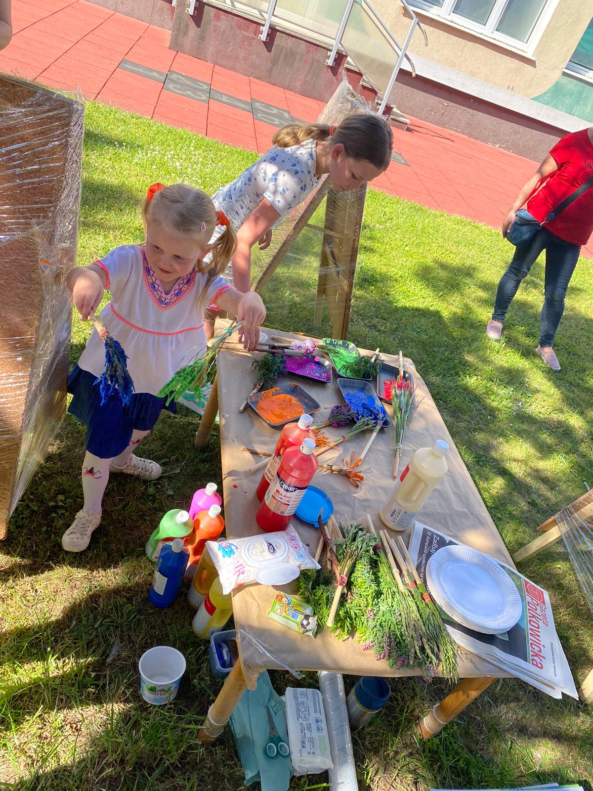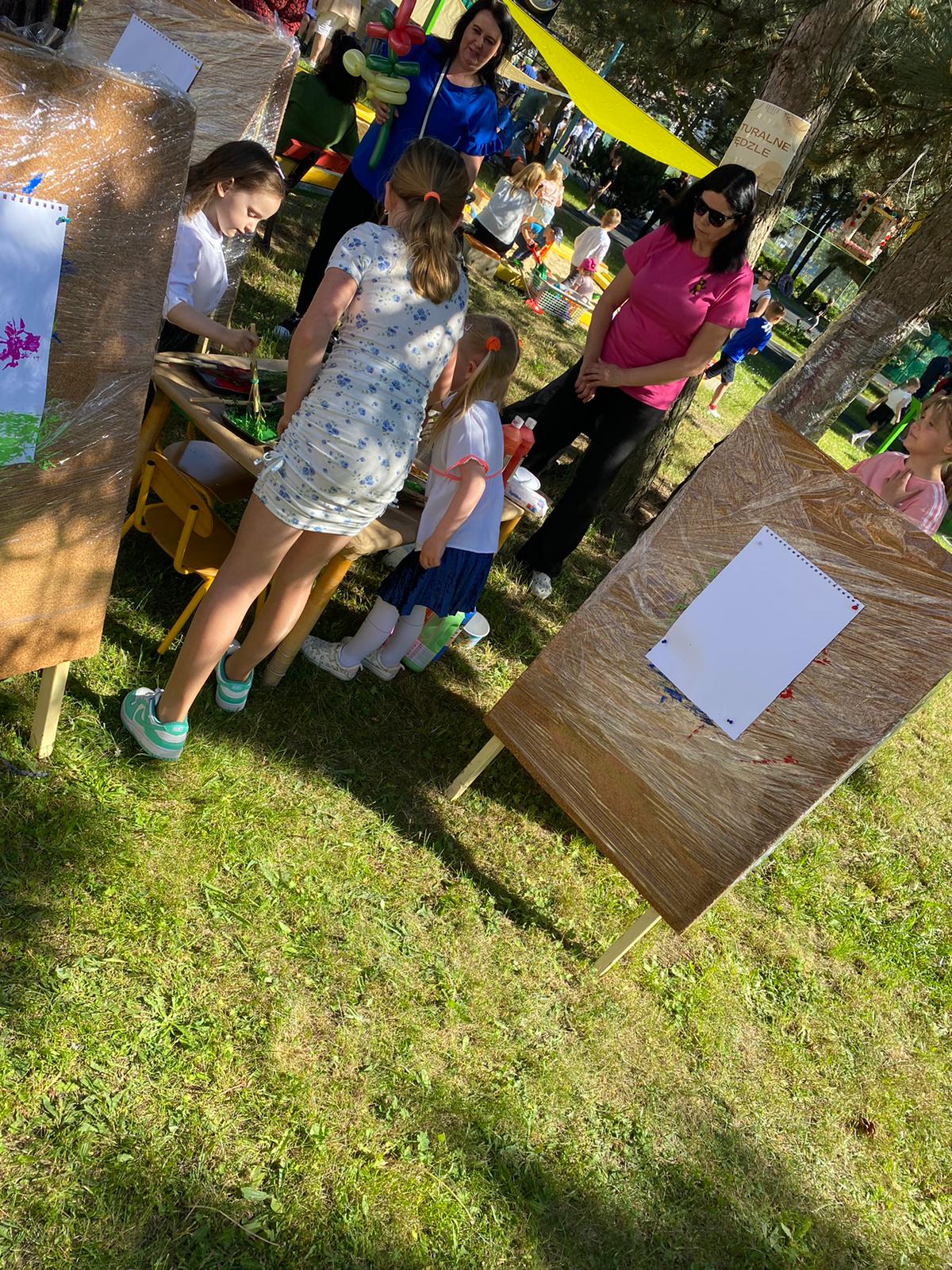 Nauczyciele przygotowali stoiska na których można było malować naturalnymi pędzlami, wykonać Eko – bransoletki, wazony na kartonie czy Eko – ludziki oraz zostać poszukiwaczami skarbów przyrody. Dodatkową atrakcją był Klaun Wesołek, który tworzył „cuda” z balonów a także stoisko z malowaniem twarzy i tatuażami.