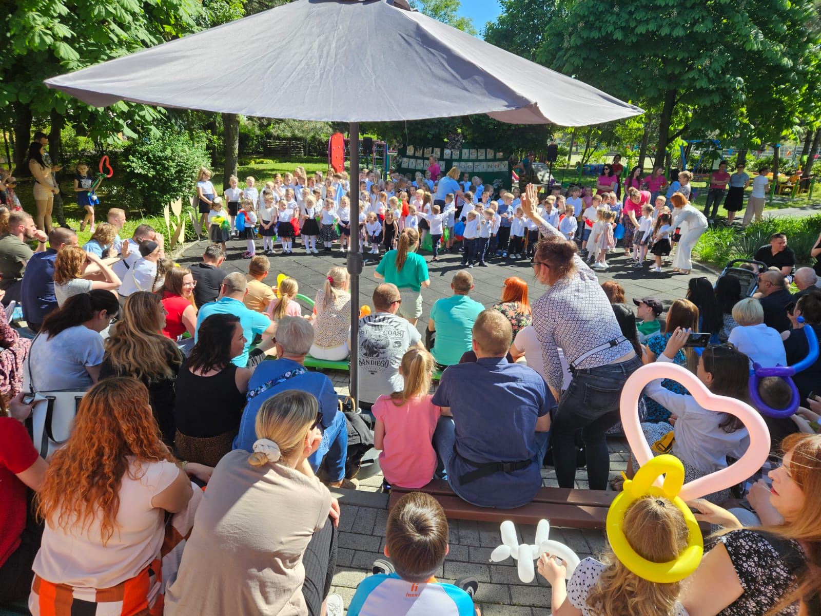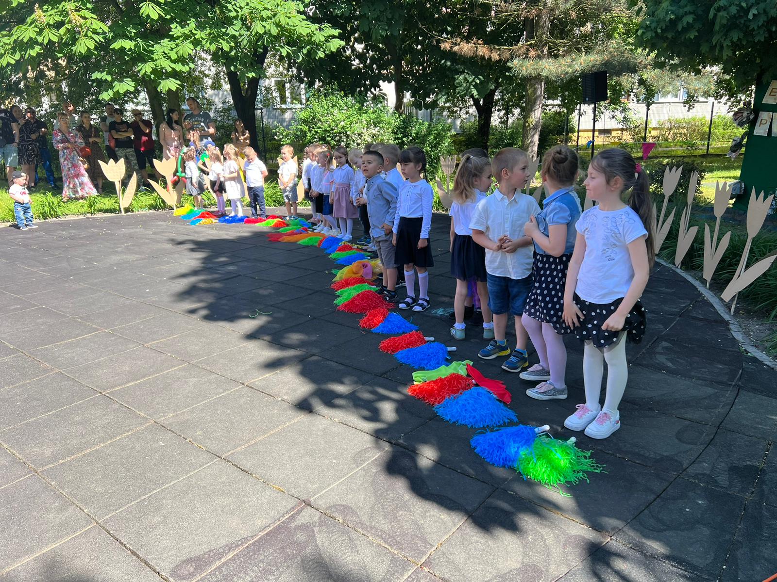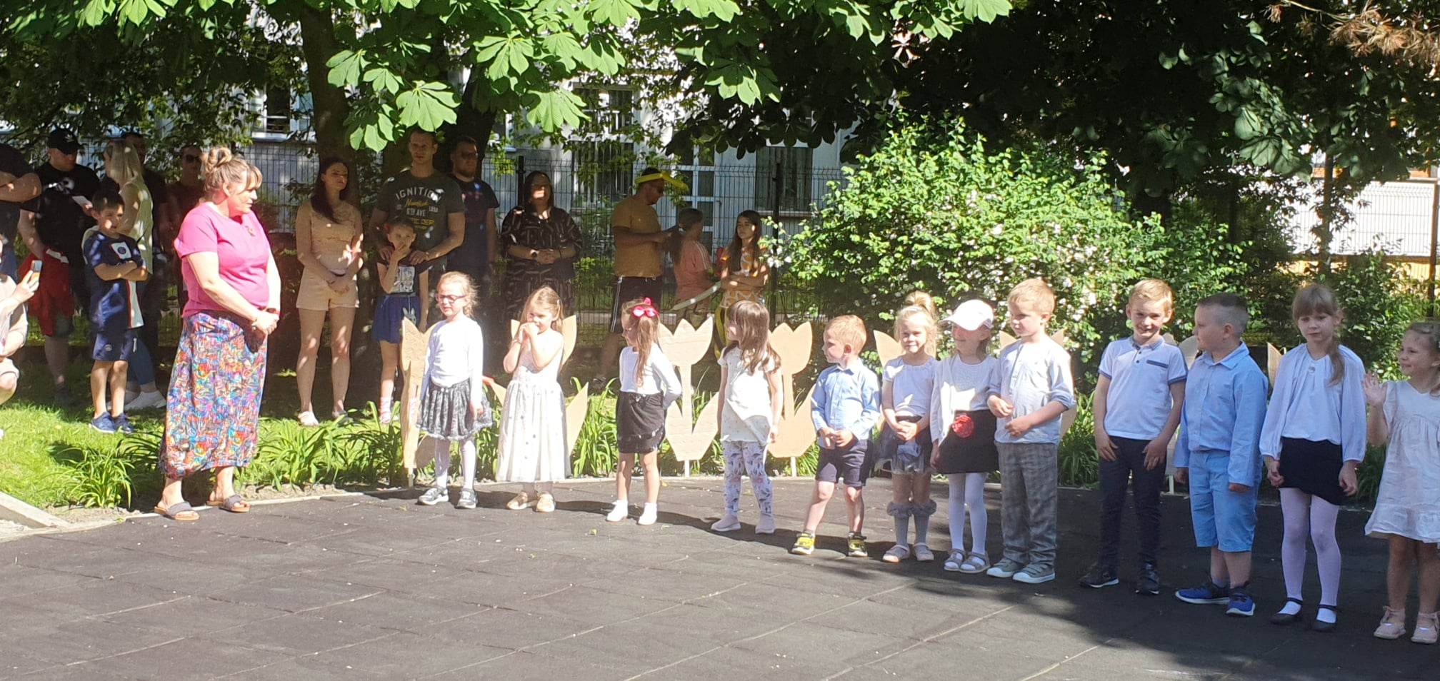 Pierwsza część imprezy odbyła się w amfiteatrze, gdzie wszystkie dzieci zaśpiewały piosenkę w języku angielskim „I love my mummy, i love my daddy”, następnie każda grupa zaprezentowała występ przygotowany pod okiem wychowawców.