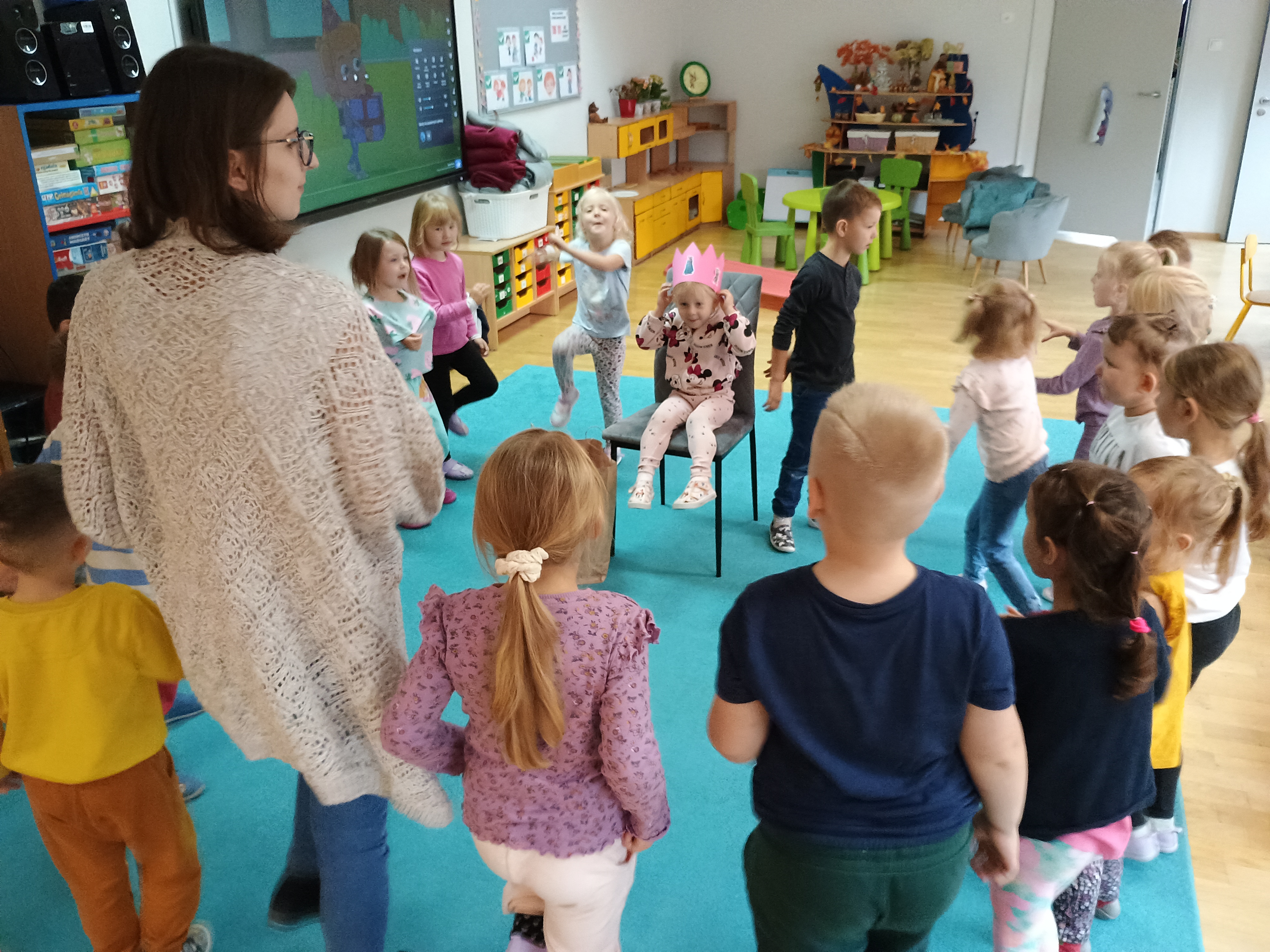- nabywanie umiejętności podążania za prowadzącym, rozwijanie kreatywności ruchowej, ćwiczenie orientacji w przestrzeni, rozwijanie poczucia rytmu, aktywizacja całego ciała, stosowanie ruchów o swobodnym przepływie i skrętnych kierunkach, zapoznanie z wpływem muzyki na nastrój człowieka, rozwijanie dziecięcej kreatywności