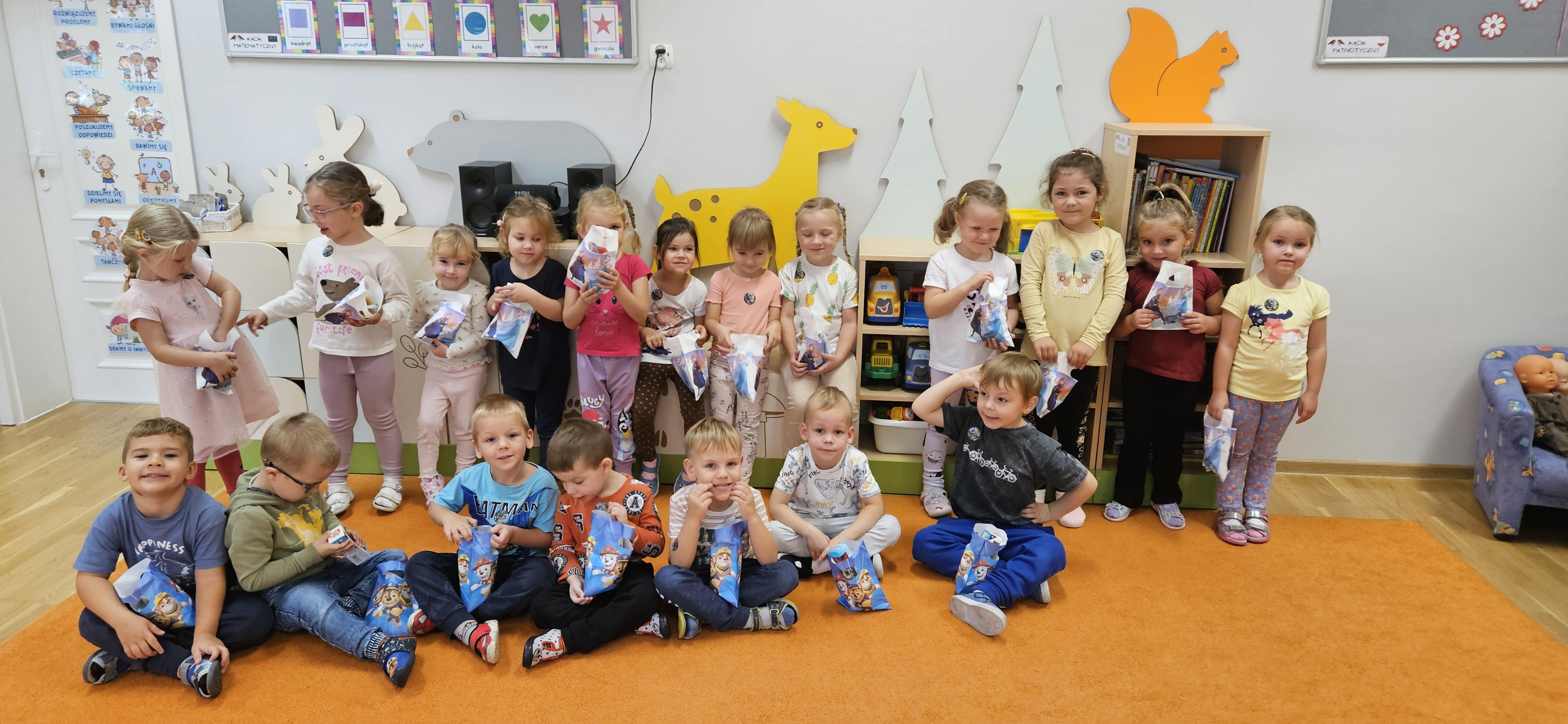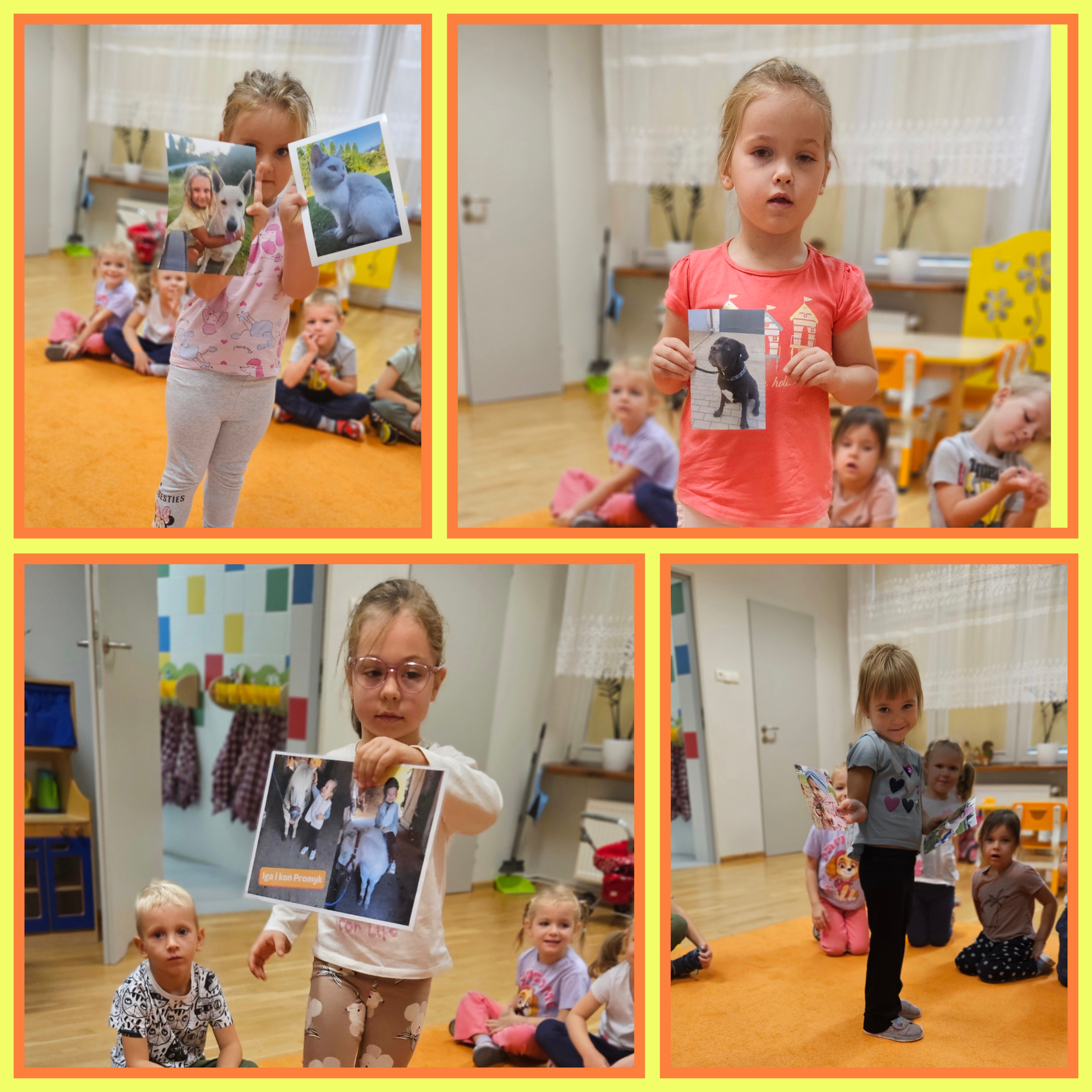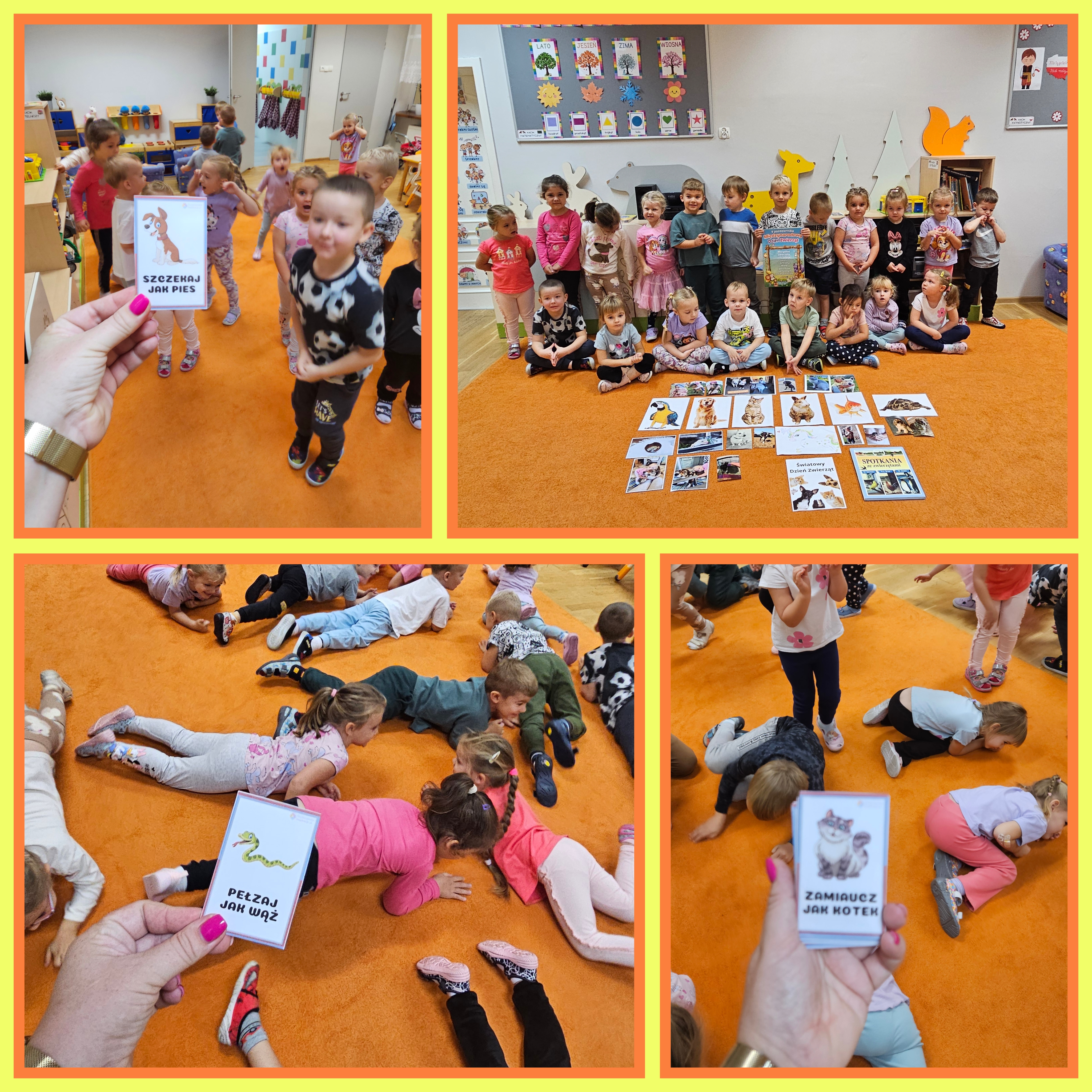4 października 2024 w grupie Wróbelki obchodziliśmy Światowy Dzień Zwierząt, który miał na celu uświadomienie dzieciom, że zwierzęta, które z nami mieszkają i które są obok nas, również mają swoje prawa. Dzieci przyniosły do przedszkola zdjęcia swoich pupili i wypowiadały się na temat swoich ulubieńców, poznały różne ciekawostki na temat zwierząt oraz wiadomości dotyczące opieki nad nimi. Dowiedziały się też, że zwierzęta czują jak ludzie i nie są zabawką, którą można wyrzucić. Odbywały się również rozmowy na temat przyjaźni między ludźmi i zwierzętami. Nie zabrakło również zabaw ruchowych.